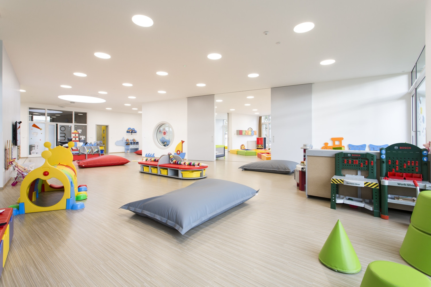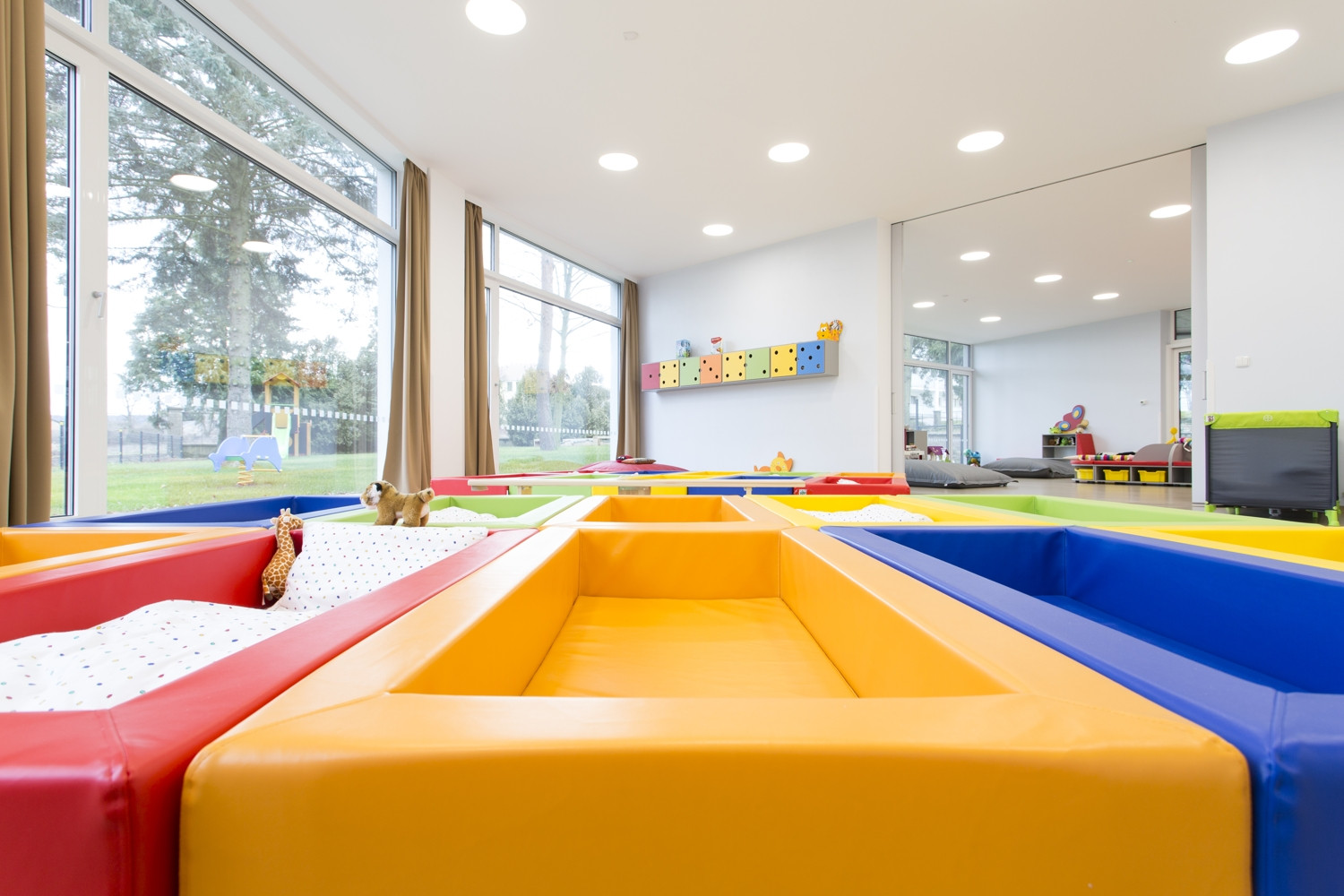 Na rozdíl od zmíněného letohrádku, jehož půdorys má spíše symbolický význam, vychází tvar mateřské školy z praktických požadavků. Cílem architekta bylo navrhnout interiér maximálně otevřený do exteriéru. Na přání investora však bylo nutné navrhnout oddělenou hernu, lůžkový prostor i jídelnu. Průnikem obou vizí tak vznikl půdorys nepravidelné hvězdy, kde je každému ramenu určena konkrétní funkce. Všechny prostory určené pobytu dětí jsou průchozí, čímž celek získává na vzdušnosti i prostornosti. Ke kvalitě vnitřního prostředí přispívá také velkorysé prosklení stavby v podobě velkoformátových oken a středového světlíku – díky tomu proudí do interiéru dostatek slunečního světla.