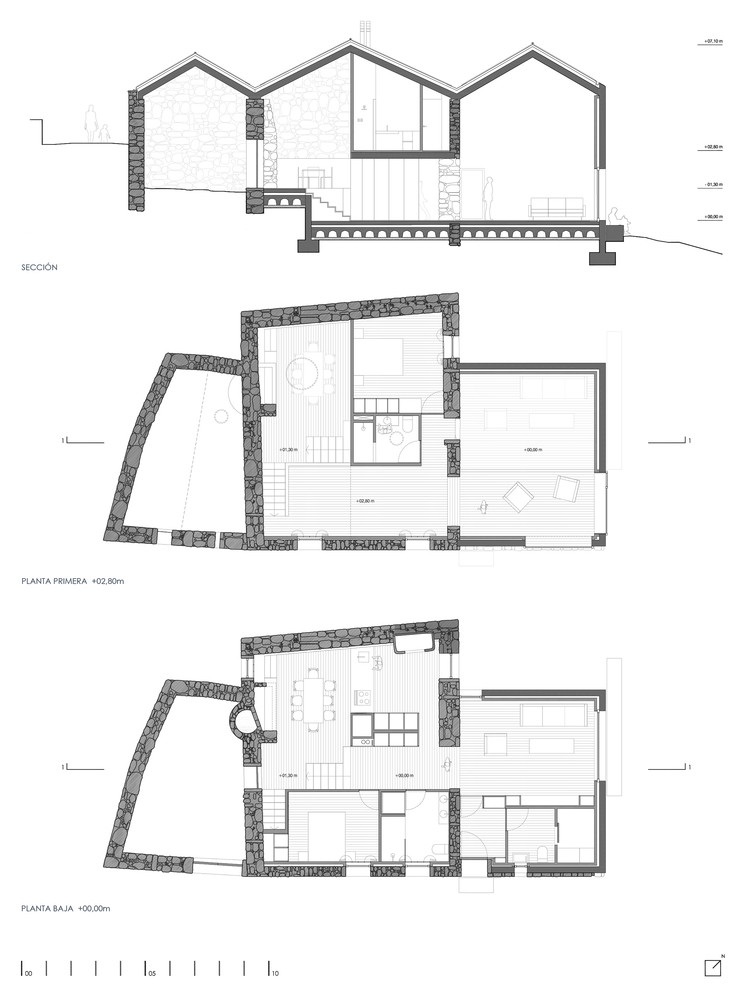 V původně rybářské vesnici Muros na severozápadě Španělska, které dnes čítá lehce přes 10 tisíc obyvatel, najdeme pozoruhodnou rekonstrukci a dostavbu starých domů, pod níž je podepsáno lokální studio fuertes-penedo. Pod jejich vedením se nepříliš udržovaná kompozice tří hmot proměnila v jednotný celek kombinující současnou architekturu s tradicemi místního stavitelství.