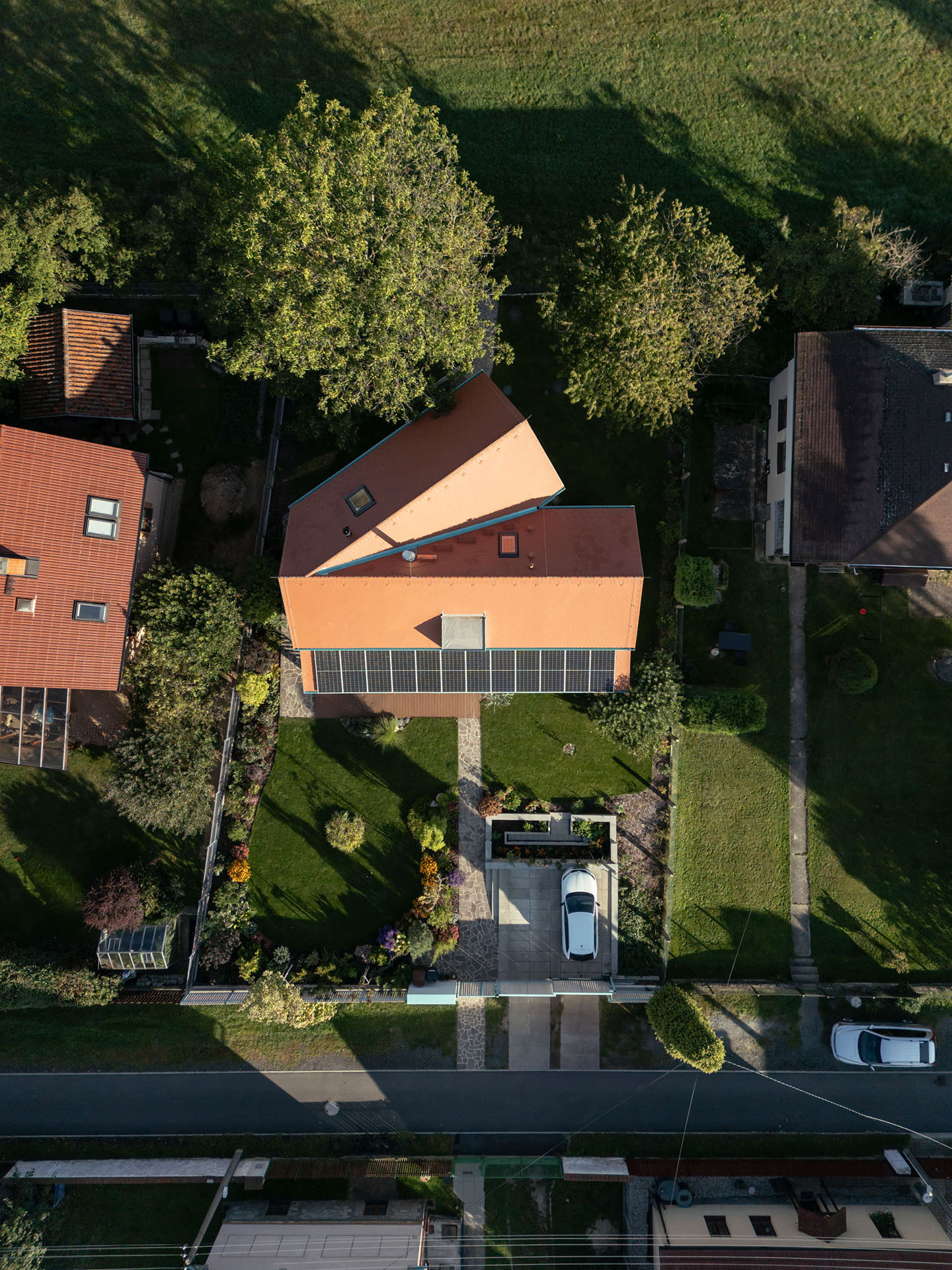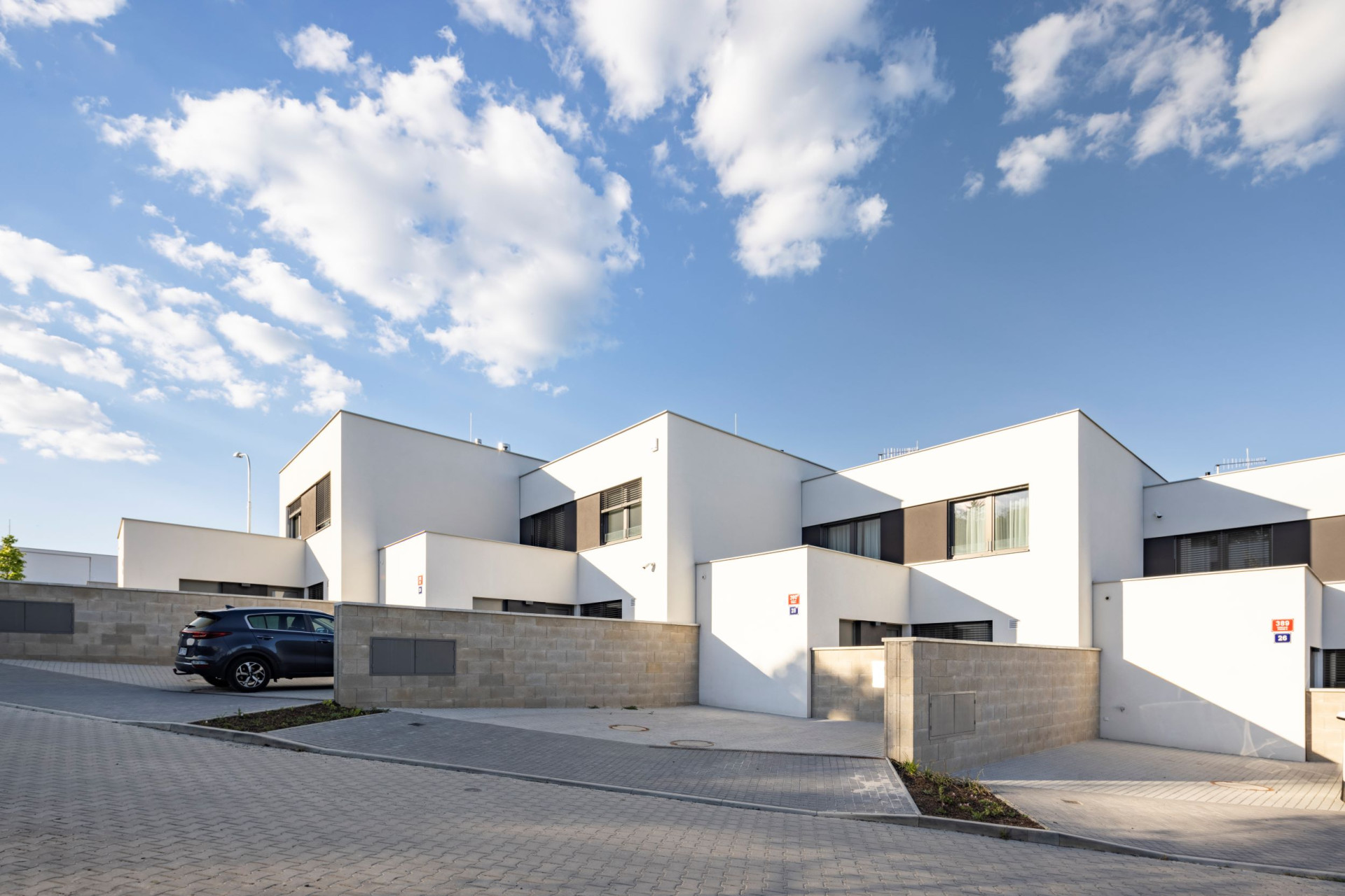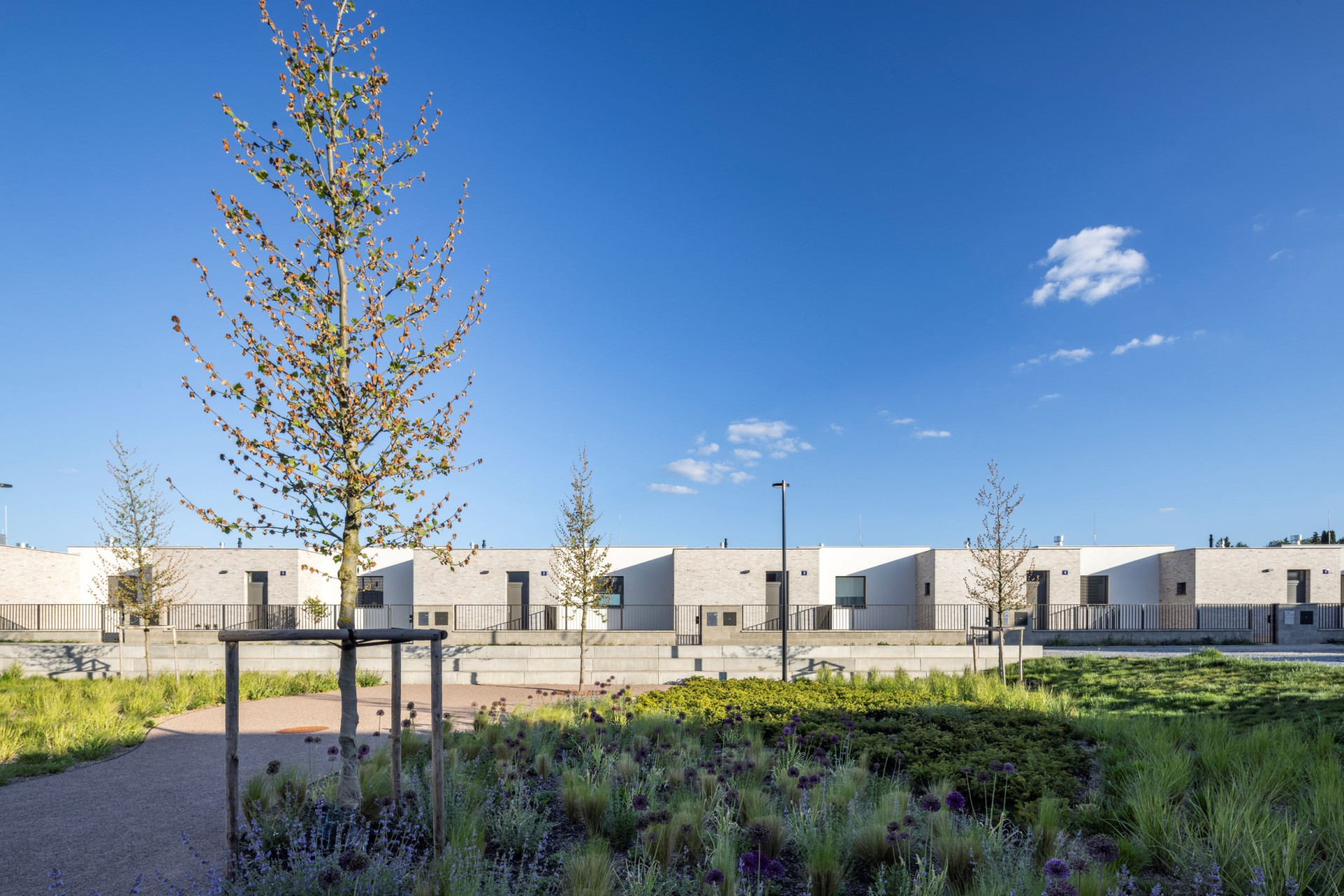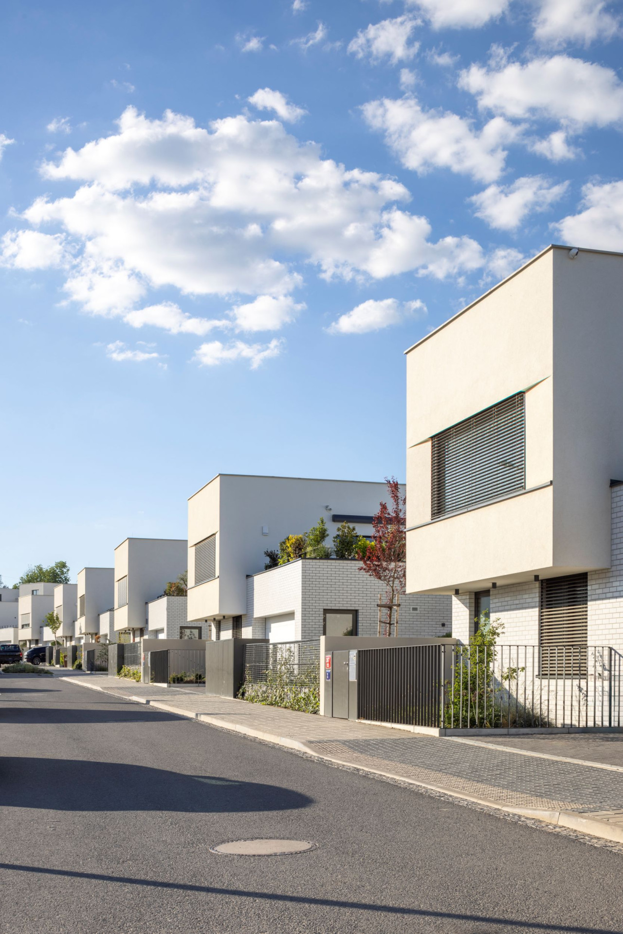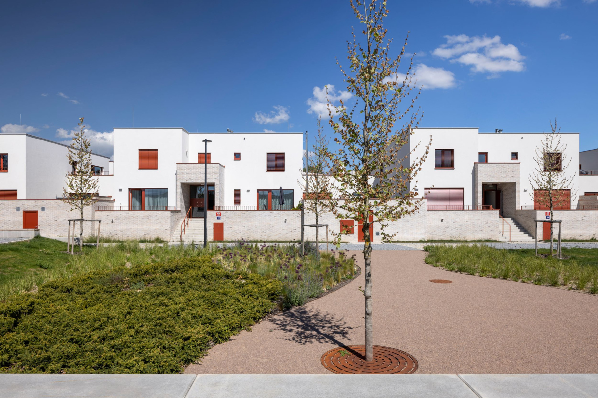 Okolo veřejného „srdce“ čtvrti se rozvíjí celkem padesát sedm řadových rodinných domů různých typů. Jejich uspořádání sleduje morfologii terénu, čímž vzniká přirozeně působící obytný soubor – kompaktní a zároveň vzdušný.