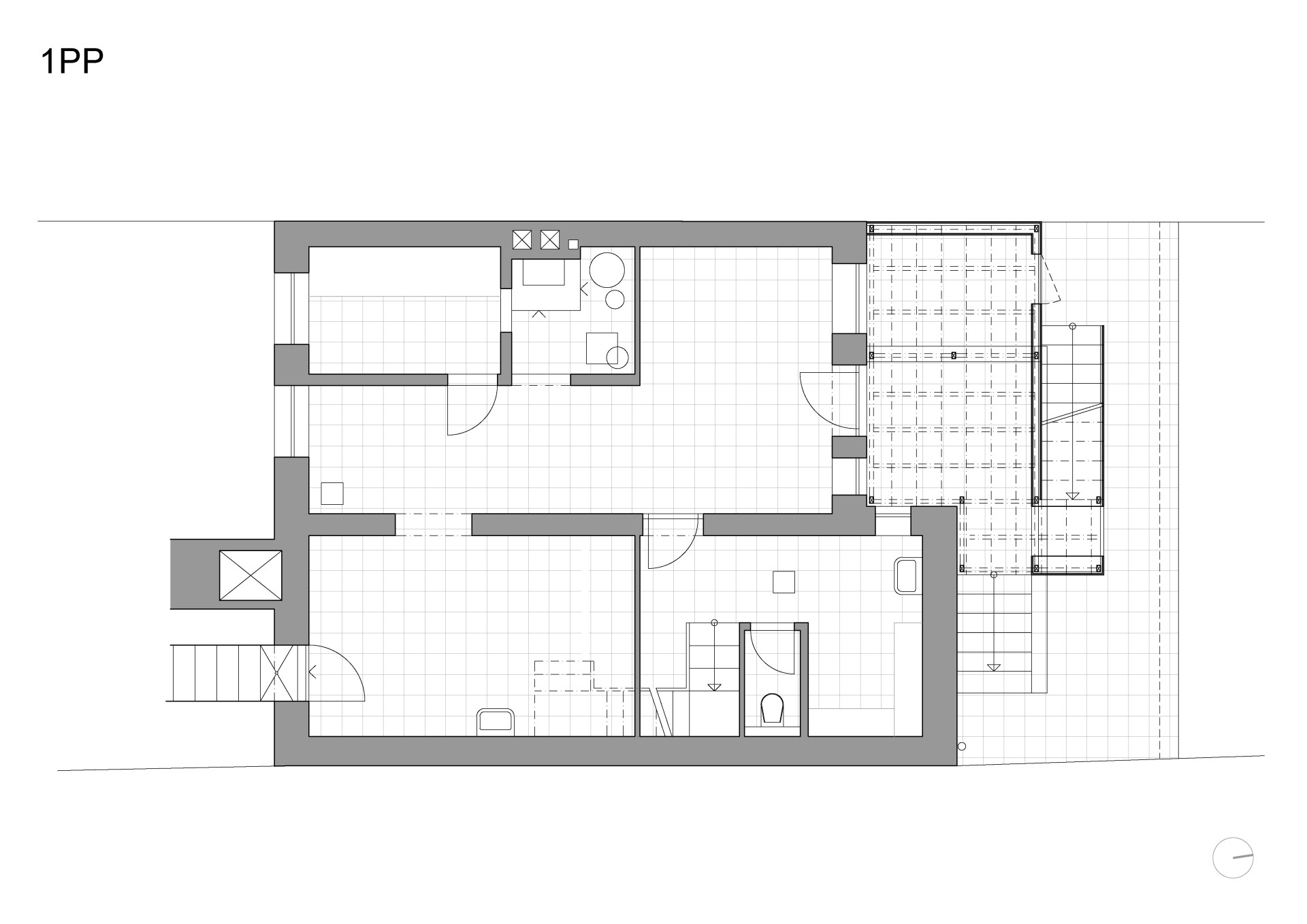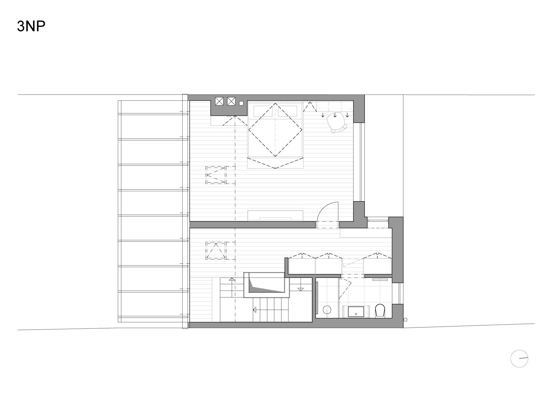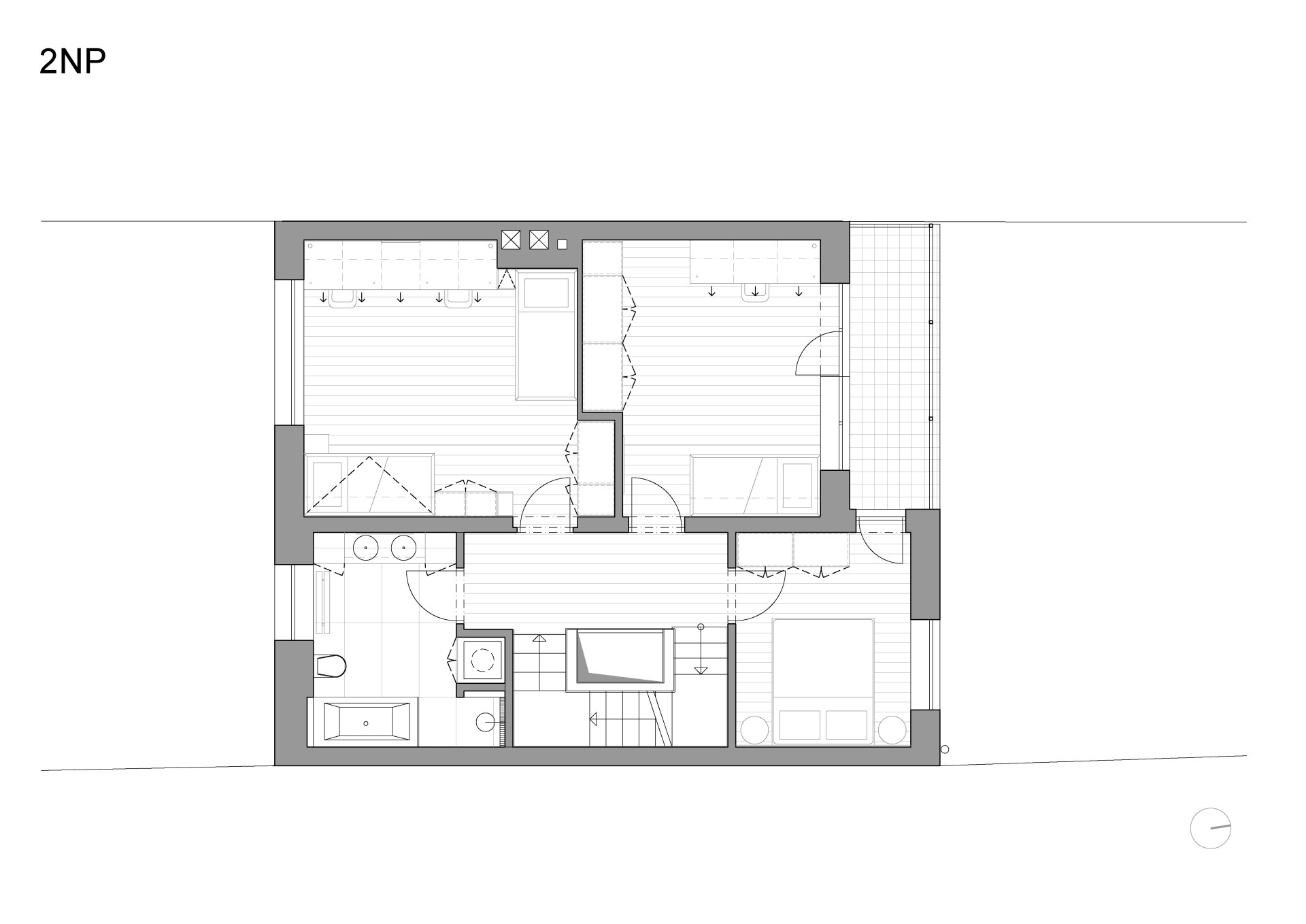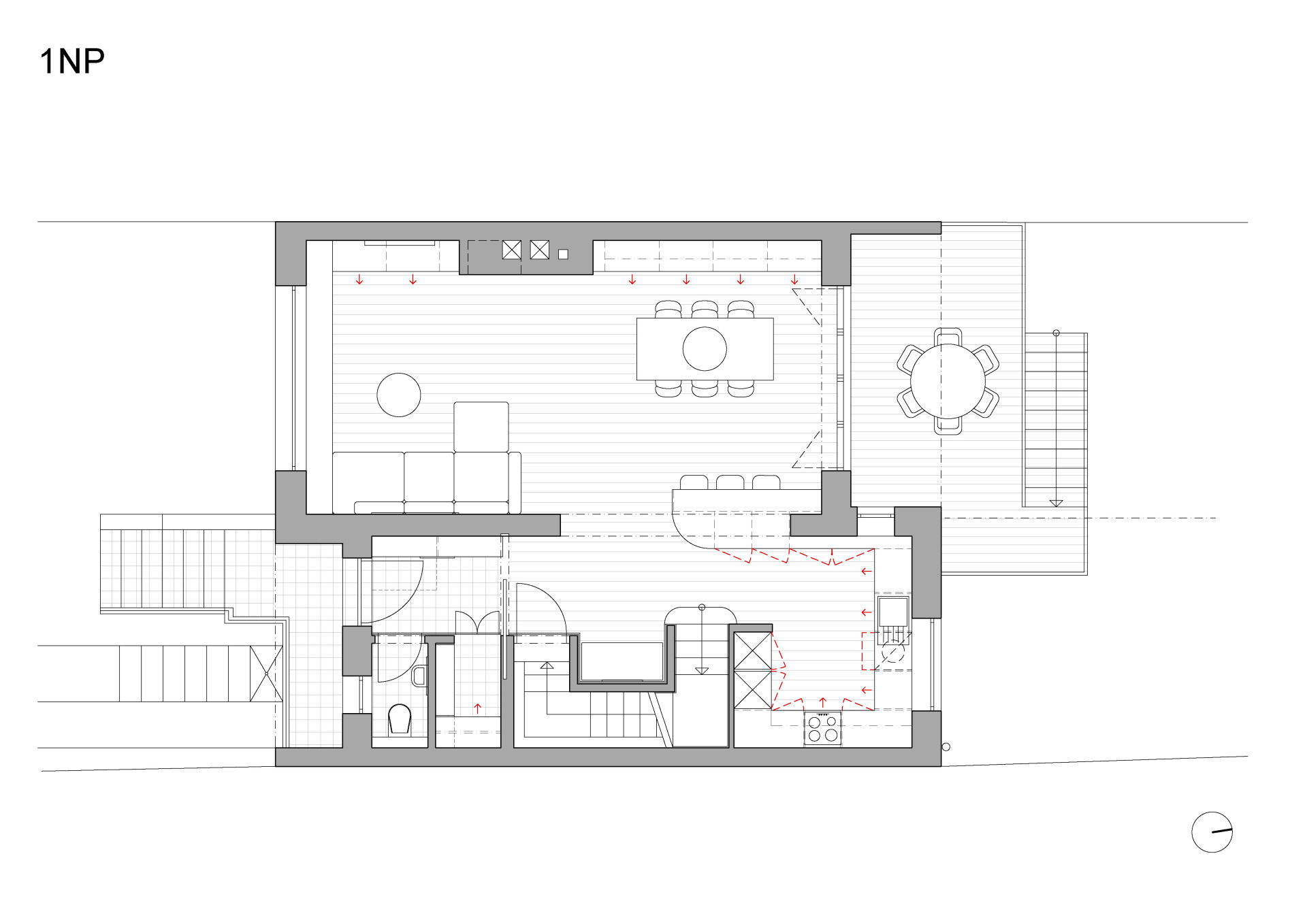„Klient, kterého jeho specializace „honí“ několikrát měsíčně doslova po celém světě, se rozhodl zakotvit s rodinnou v jednom ze starších řadových domů, snad shodou náhod „na dohled“ od letiště. V třípodlažním domku s polozapuštěným suterénem, s předzahrádkou i zahradou, s výhledem z vyšších podlaží daleko do bitevní bělohorské krajiny,“ uvádí počátek projektu architekti ze studia No Architects.