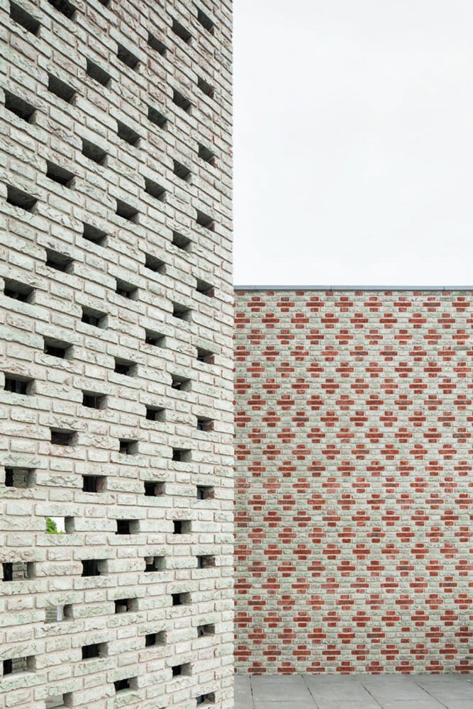 Stavba je pokryta červenými a zelenými cihlami s malými průzory, které osvětlují i vnitřek věže. Design se má záměrně nést v optimistickém duchu, vyzývá k návštěvě budovy i k osahání fasády. Budova je navržena jako malá stavba: zdáli abstraktní, intimní zblízka.