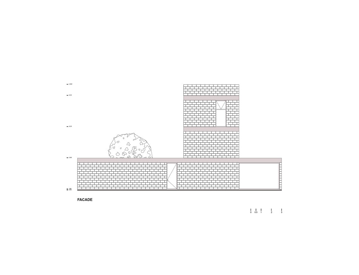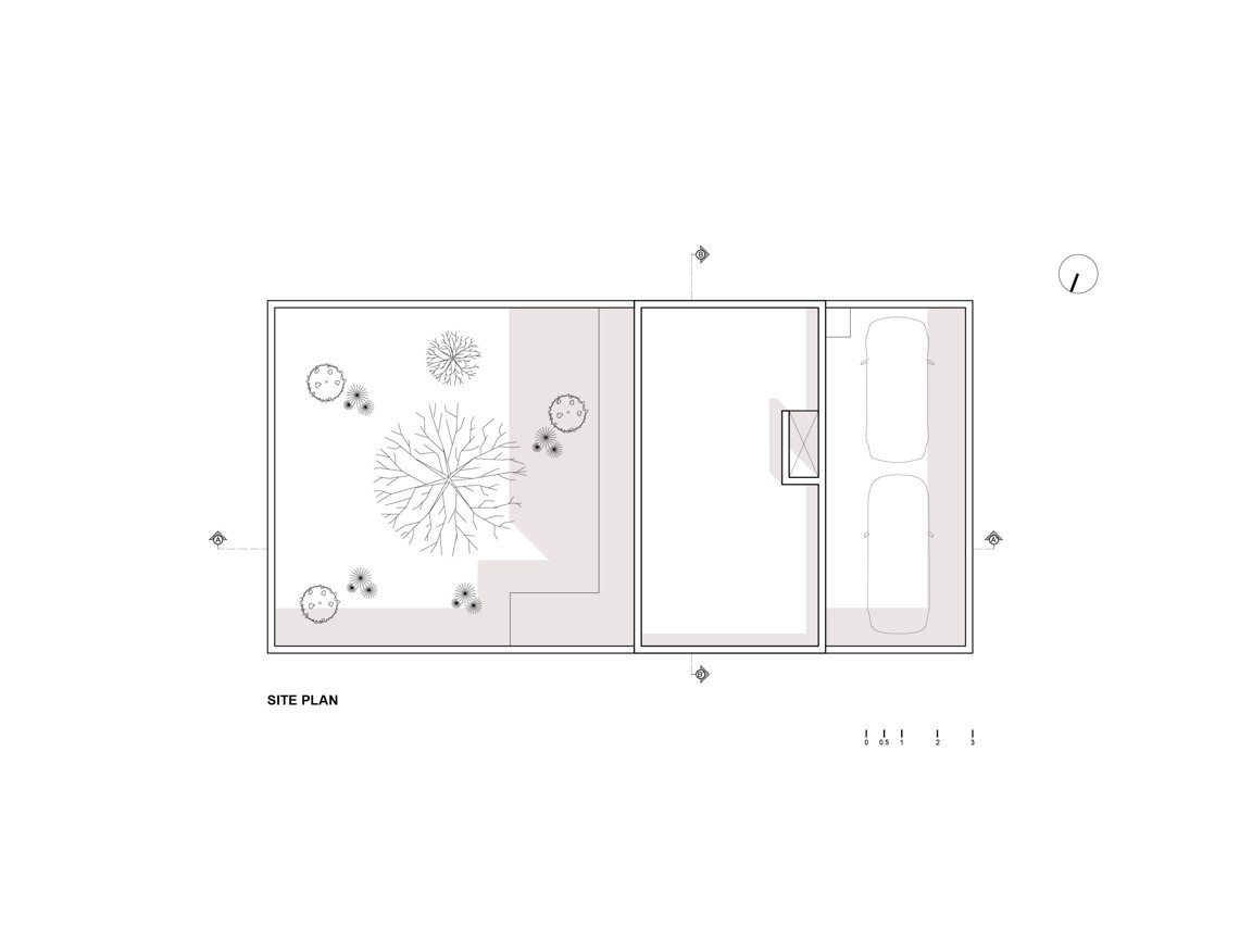 Jedním z hlavních požadavků klienta bylo vytvořit velkorysý prostor pro odpočinek, kde by člověk necítil tlak a ruch okolního města. Směrem do ulice se proto betonový objekt otevírá pouze jedním oknem a plechovými vstupními dveřmi. Stejný odstup vůči okolí si objekt zachovává po celém obvodu druhého a třetího nadzemního podlaží. Okenních otvorů sice na jiných fasádách přibývá, stále však slouží převážně jako větrací otvory. V kontrastu s tím architekt téměř po celé ploše přízemní stěny otevřel dům do soukromé zahrady, které věnoval bezmála polovinu podlouhlého pozemku.