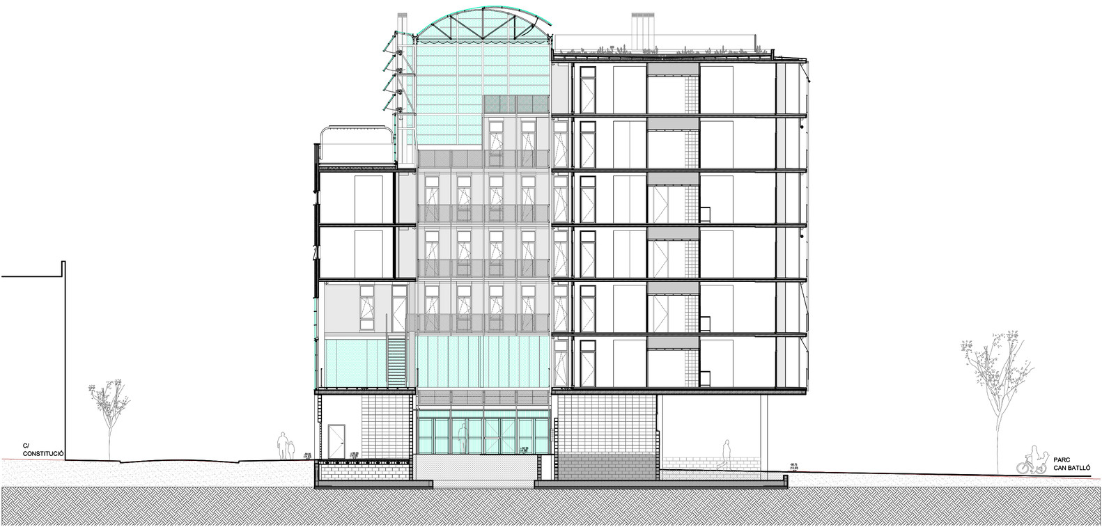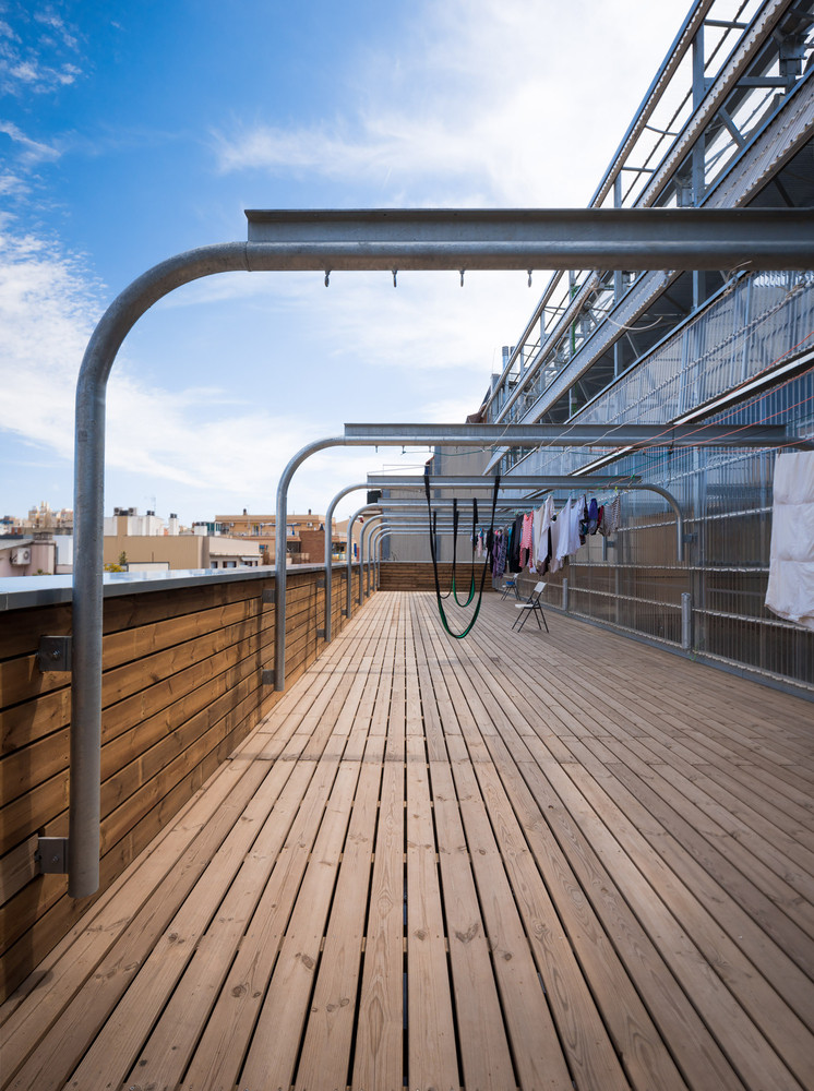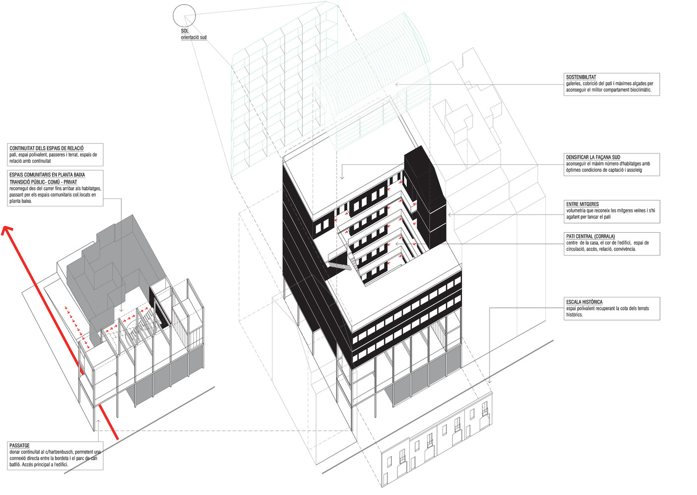 Mladí architekti z Barcelony si při navrhování domu položili cíl funkčně zaktualizovat program sociálního bydlení. V šestipodlažním domě se tak vedle 28 bytových jednotek nachází velkorysé společné prostory, které podporují trávení volného času ve vetší komunitě. Jde o množství víceúčelových prostorů, velké jídelny nebo otevřené terasy.