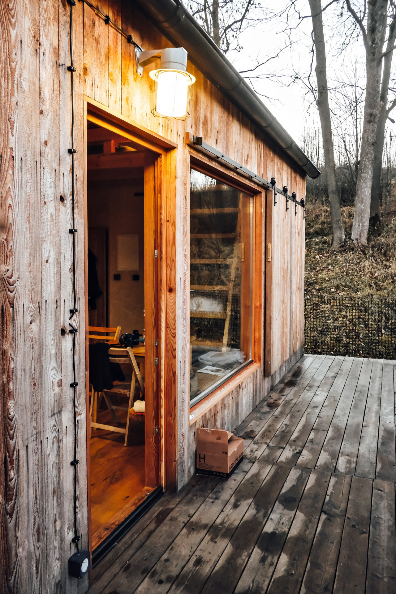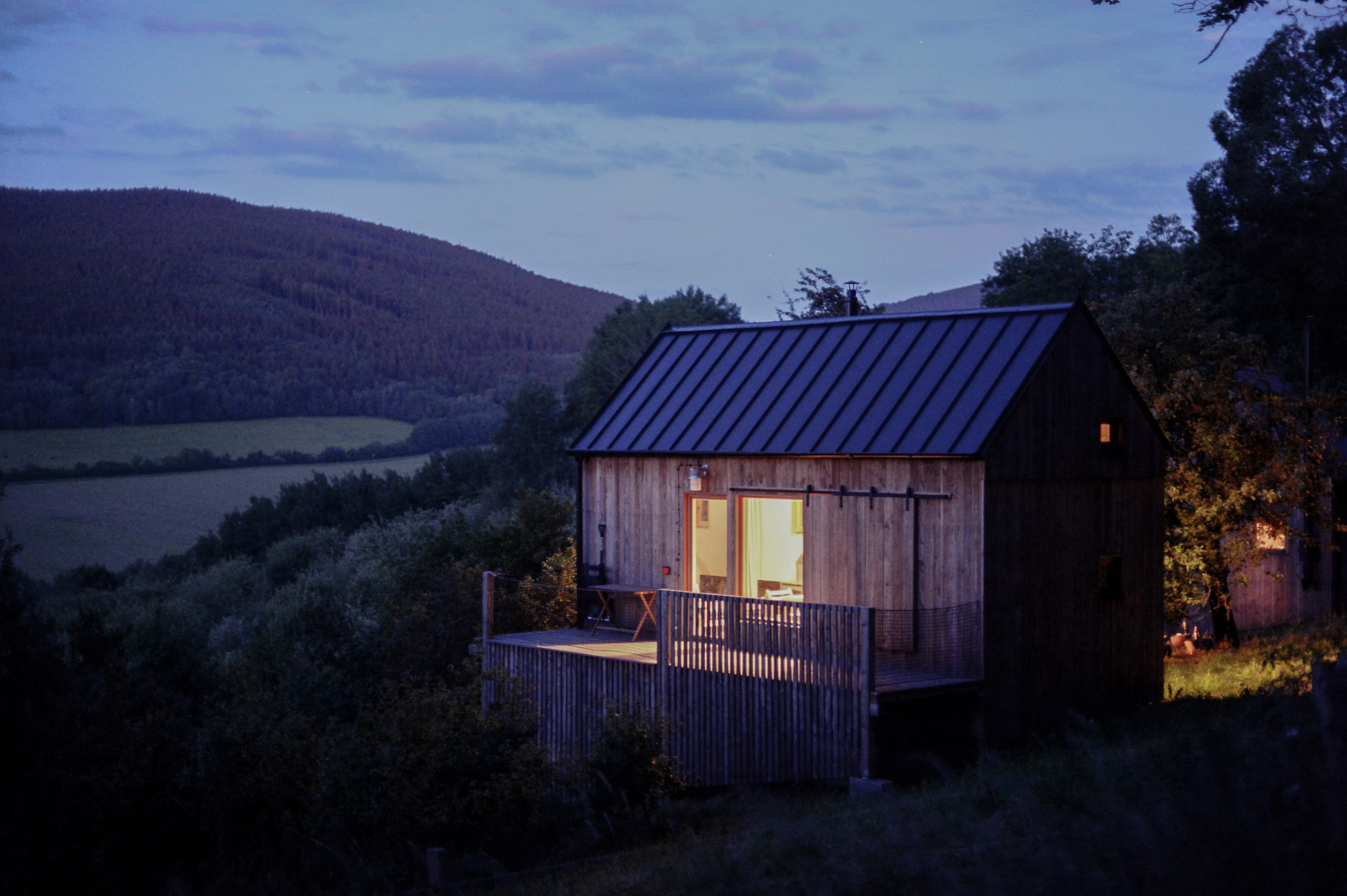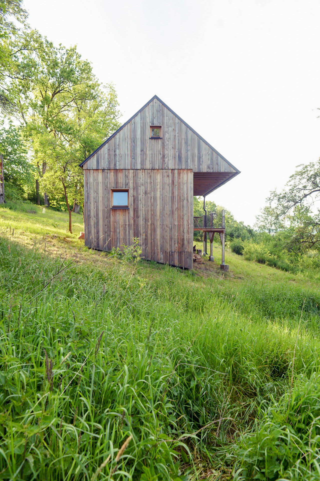 Ve stráni na západním okraji CHKO Šumavy se zabydlela trojice malých dřevěných chat, které byly postavené z velké části svépomocí. Za fasádou z modřínových prken nabízí vzdušné interiéry s velikými okny.