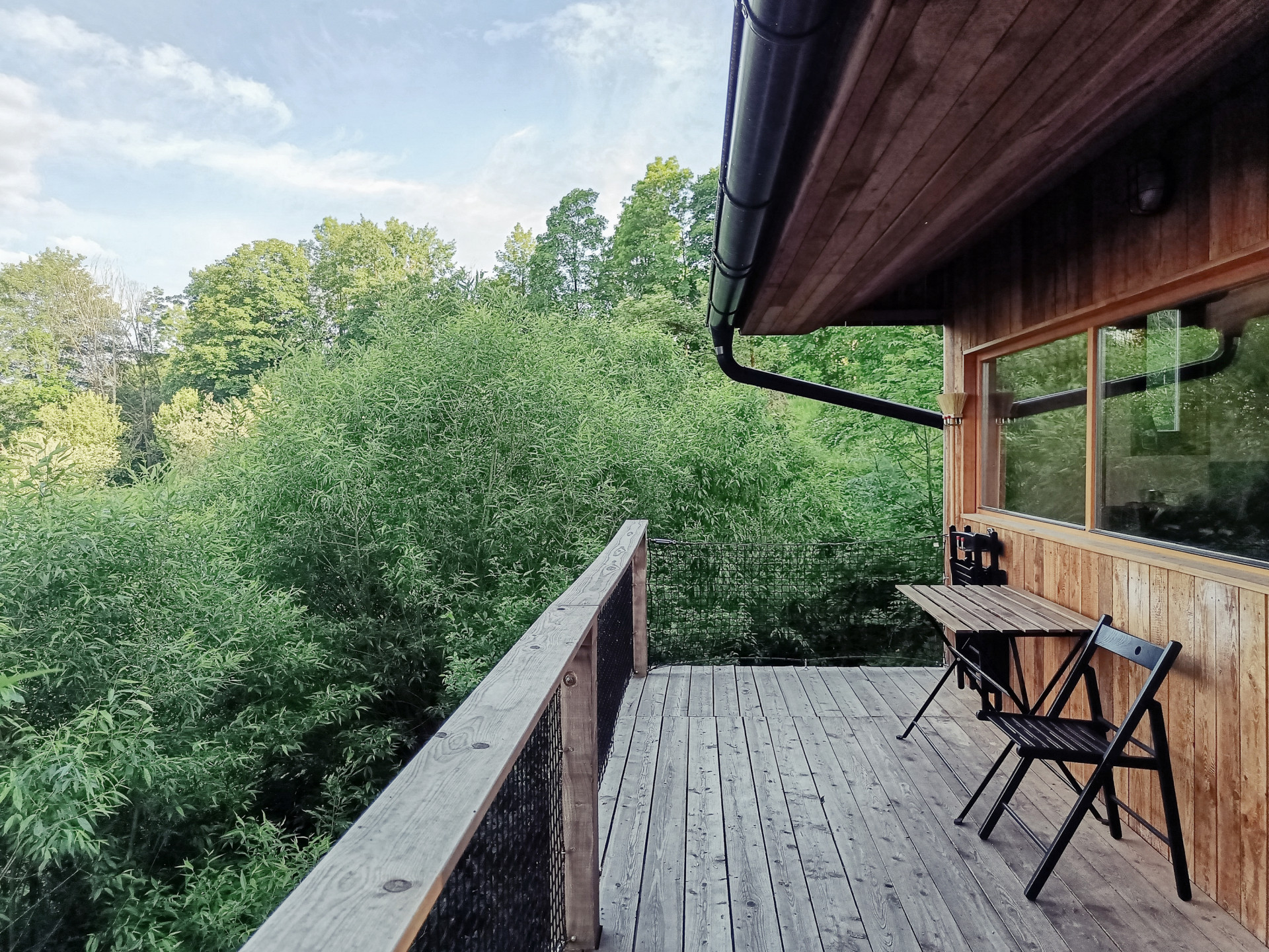 Každý domek má jiný tvar i velikost, přesto je sjednocuje podobný architektonický výraz. Stavebně jednoduché stavby s rámovou konstrukcí z KVH hranolů jsou na betonových pilířích rozmístěny ve svahu tak, aby hostům i navzdory velkoplošným oknům poskytovaly dostatek soukromí. Domky Vyhlídka a Hruška disponují sedlovou střechou, Ateliér má jako jediný střechu pultovou – všechny jsou přitom kryty černými plechy.