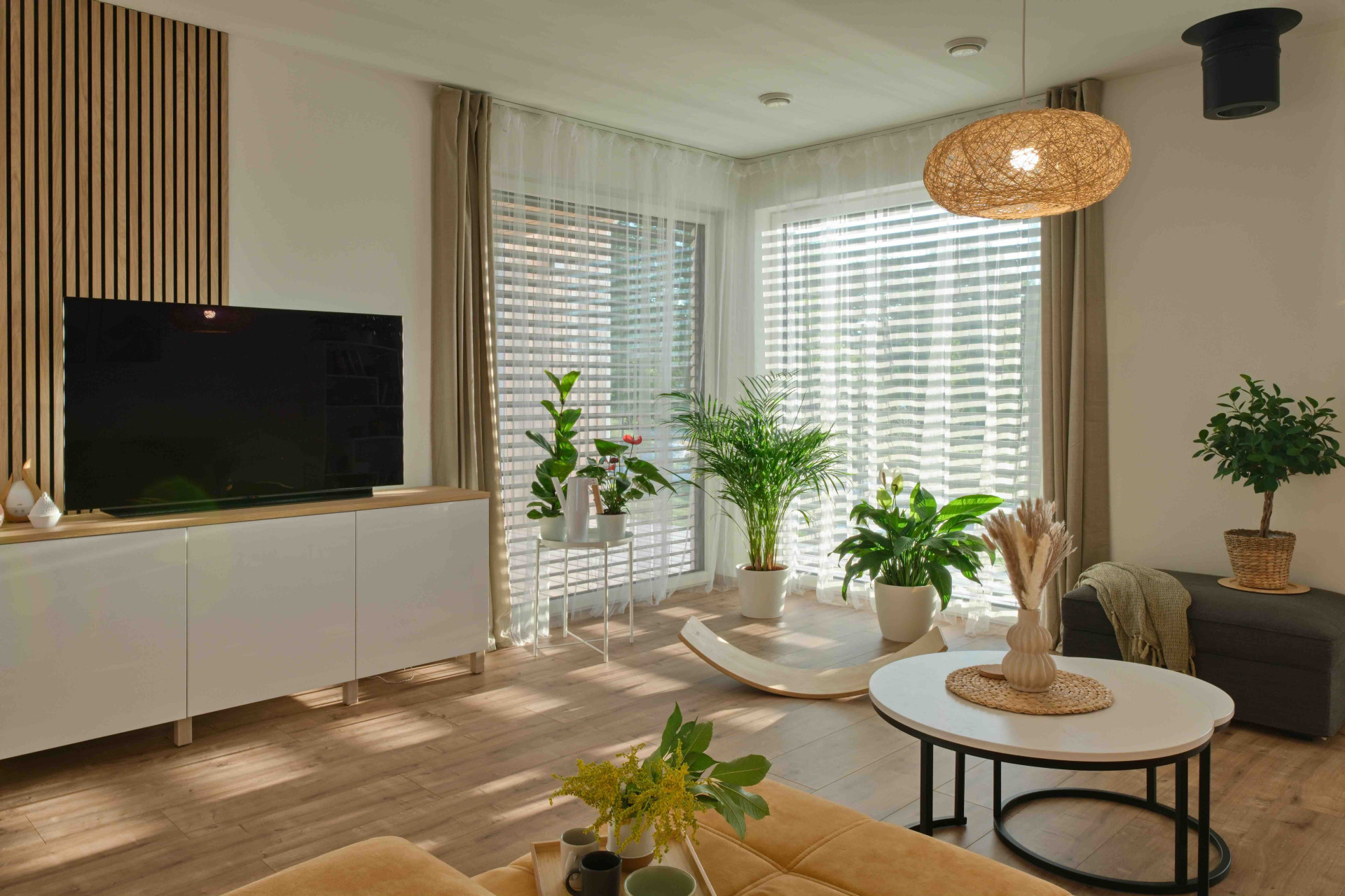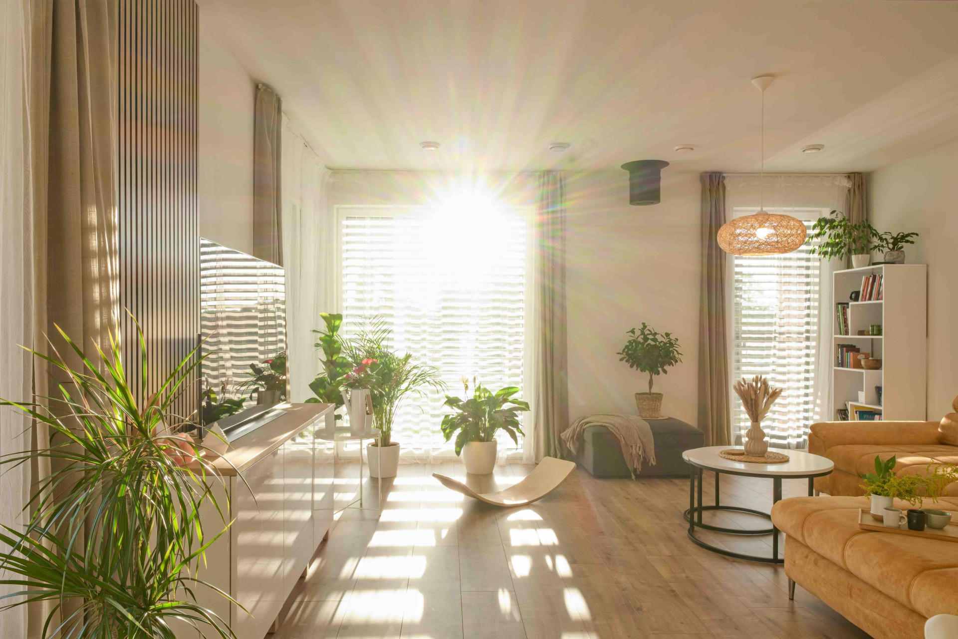 Žaluzie, osvětlení i vytápění se dají regulovat jedním dotykem. Technologie jsou v tomhle domě celkově důležité. Je vybaven také fotovoltaickou elektrárnou se sběrnými bateriemi, elektrickým vytápěním a rekuperační jednotkou, která zajišťuje neustálý přísun čerstvého a zdravého vzduchu. Díky senzoru oxidu uhličitého se automaticky reguluje přívod vzduchu podle aktuální potřeby. Zároveň se optimalizuje vlhkost, což přispívá k příjemnému a zdravému vnitřnímu prostředí. Automatické řízení žaluzií reaguje na denní dobu – při soumraku se žaluzie naklopí pod úhlem, který umožňuje průchod posledních paprsků slunce, ale zároveň chrání soukromí. Jakmile se setmí, zcela se zaklopí.