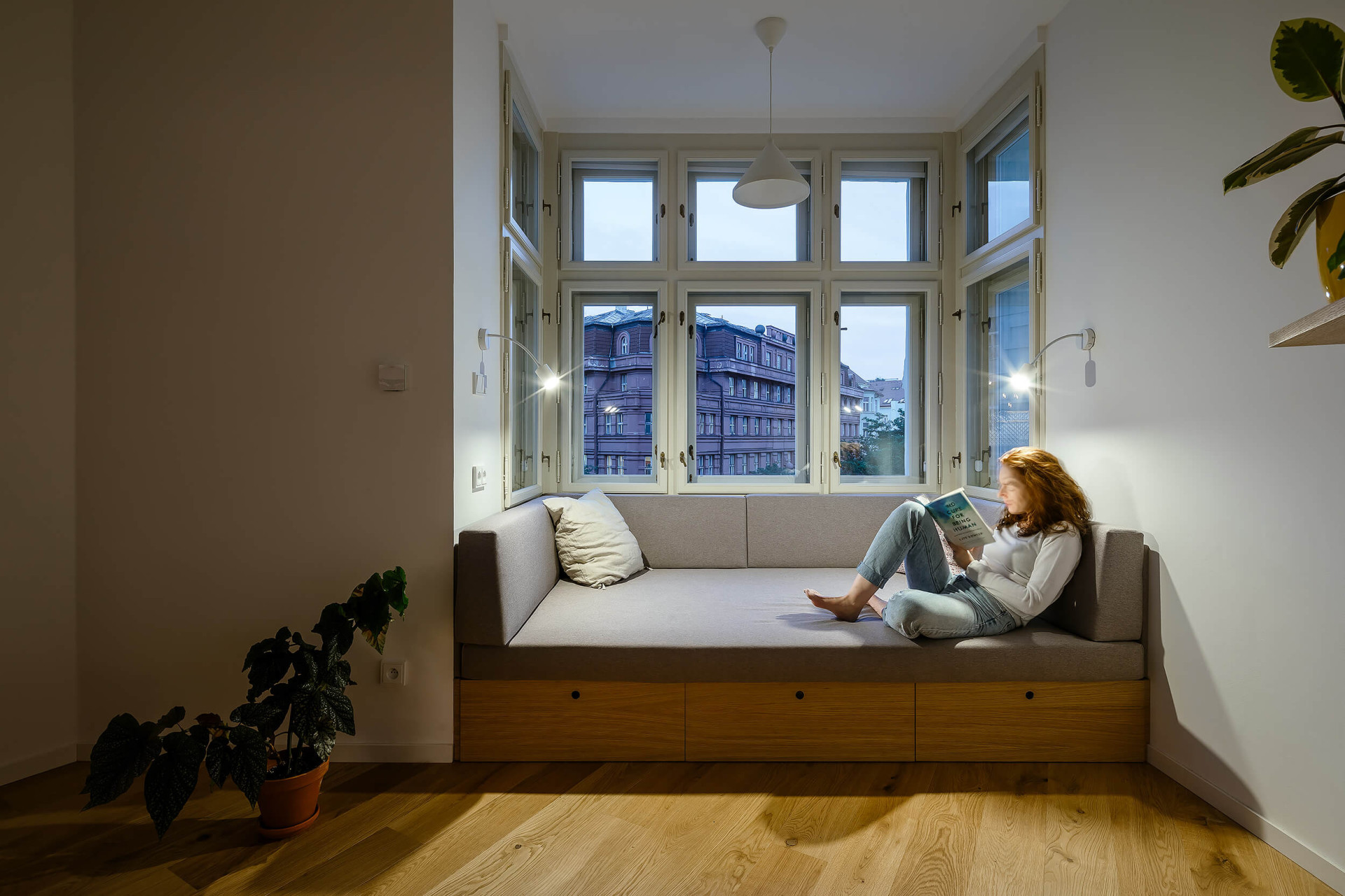 Cílem architektů z ateliéru Archistroj bylo navrhnout byt, který bude jeho obyvatelům vyhovovat dlouhodobě, bude tedy obsahovat adaptabilní prvky a místnosti. Výsledek, na kterém spolupracovali s Atelier HORIZONT v sobě však kromě praktičnosti kombinuje také několik inspiračních vlivů – japonskou estetiku, parametrický design a české výrobky.