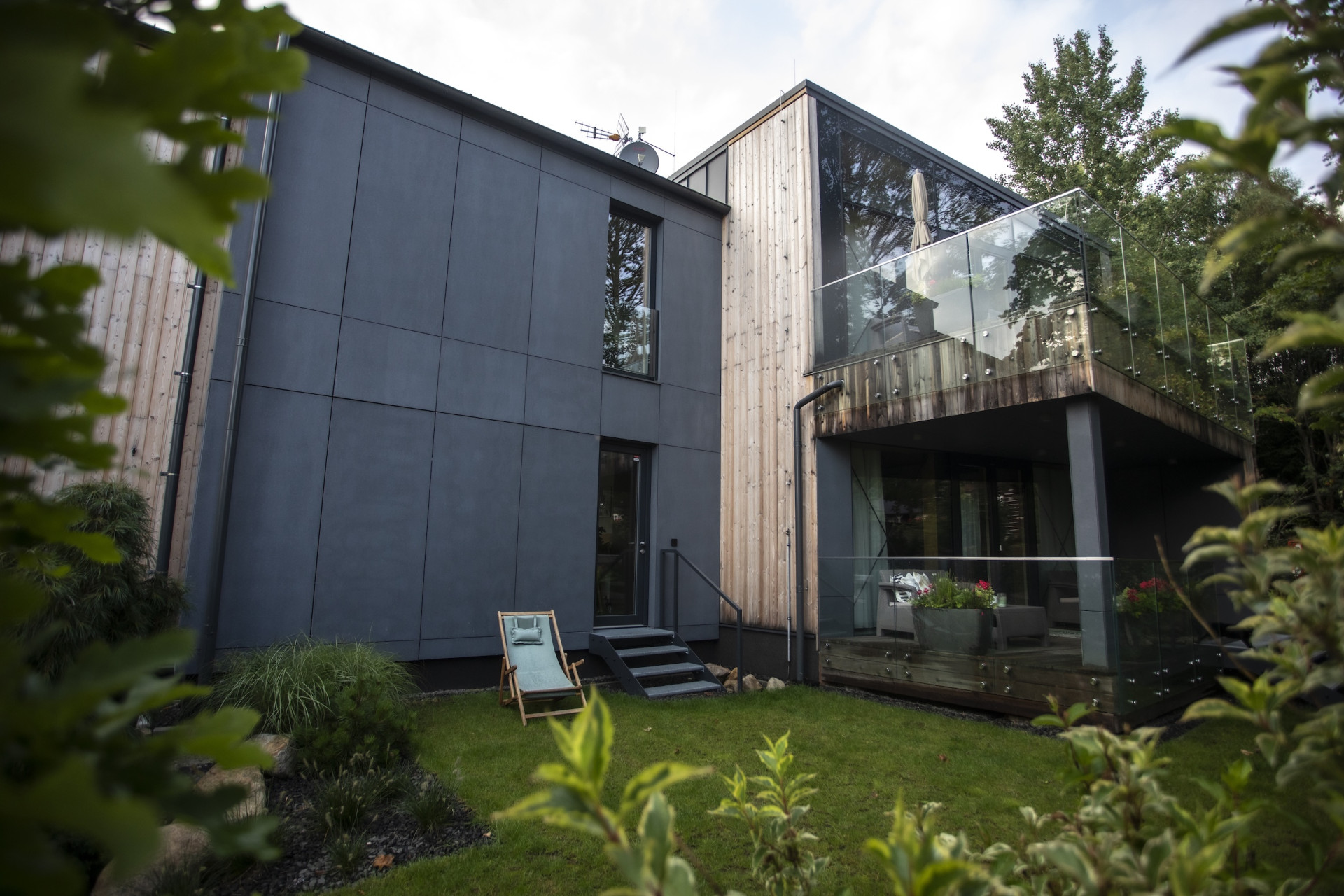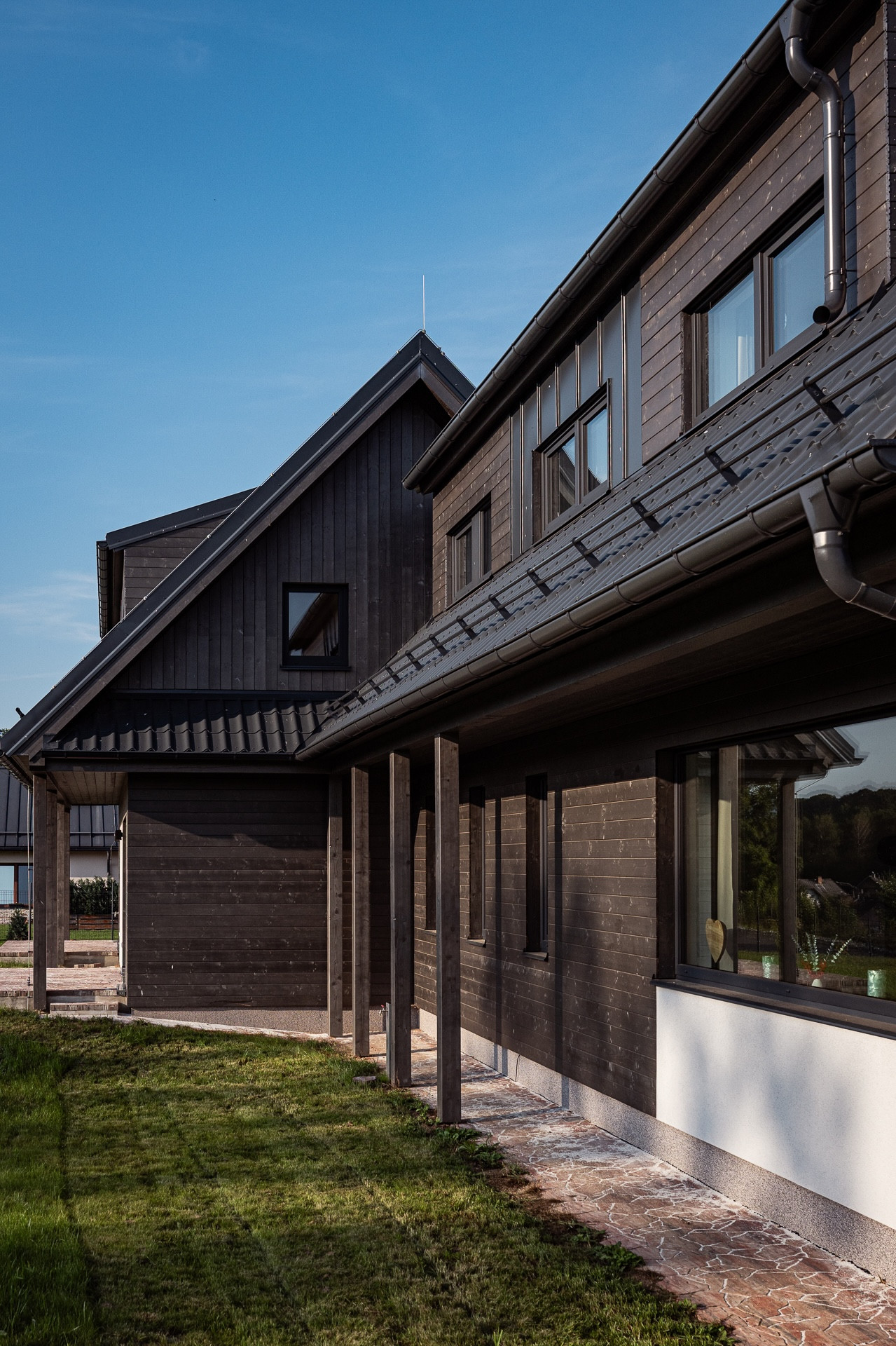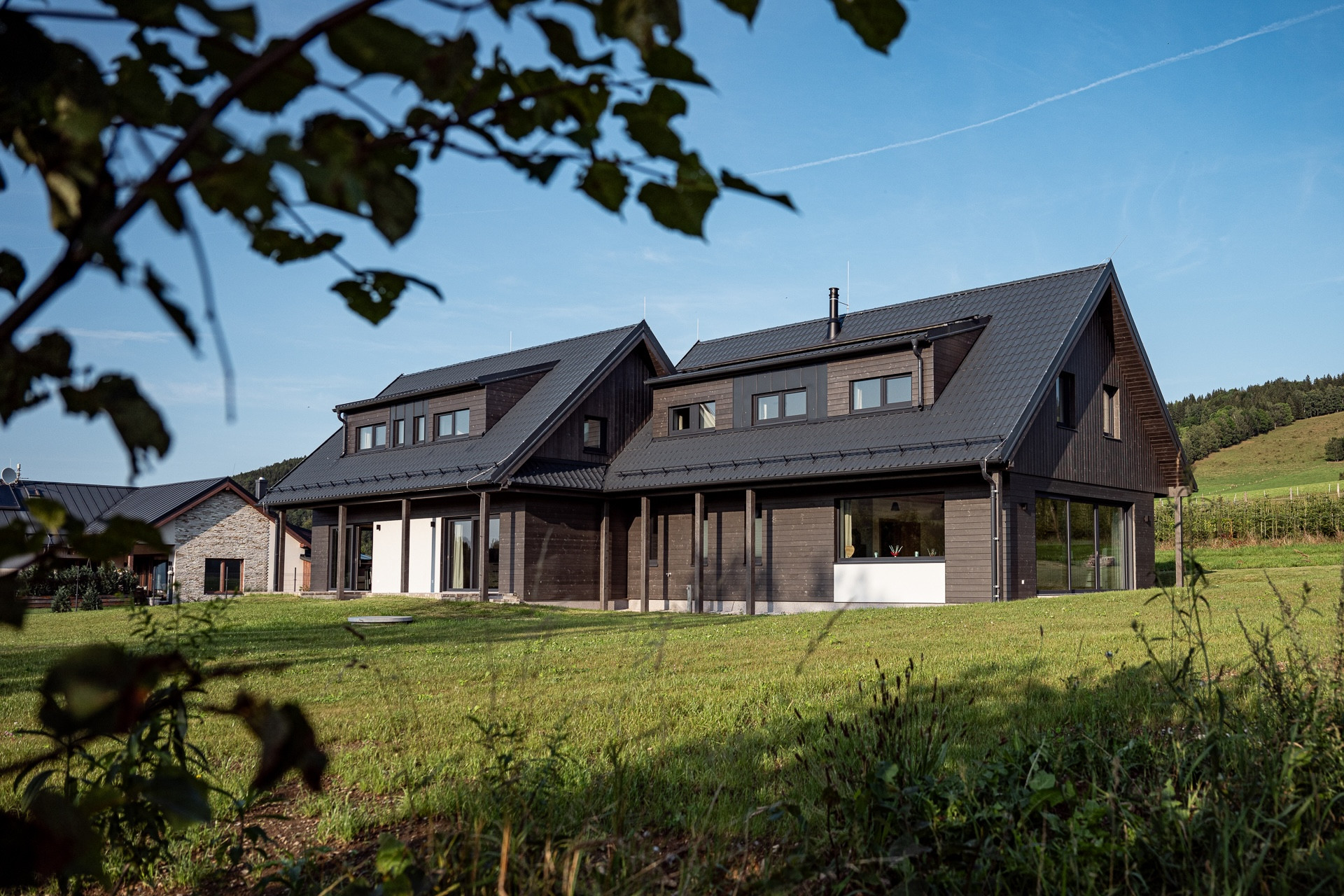 Výsledkem spolupráce s architektonickým studiem Archzone Architects a realizační firmou Vesper Homes je stavba, která na první pohled zaujme svým moderním vzhledem. Konstrukčně jde o hybridní systém kombinující dřevo, sklo a ocel.