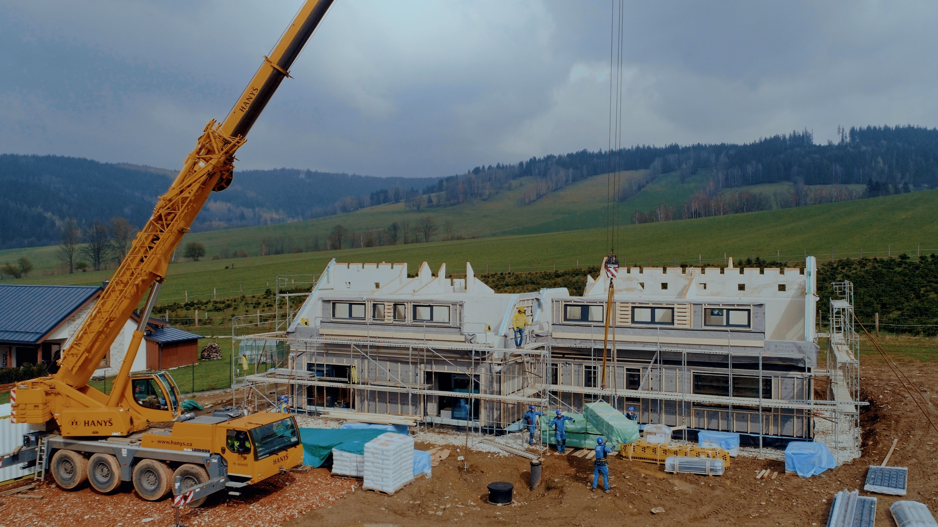 Projekční práce na tomto projektu trvaly 3 měsíce, 7 týdnů kompletní výroba mimo staveniště a 8 týdnů pak stavba na klíč. Nutno podotknout, že hrubá stavba byla pod střechou za 5 dní vč. oken a dveří.