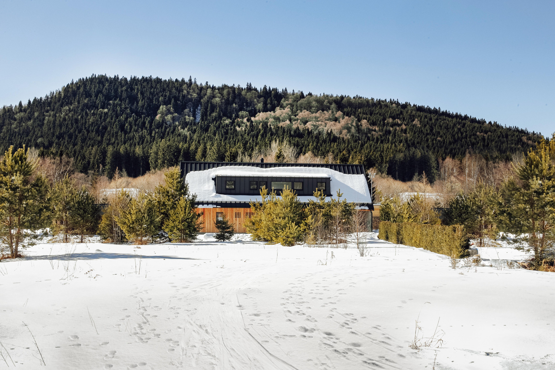 Jihočeskou obec Borová Lada nedávno doplnil nový rodinný dům, který pracuje s motivy tradiční šumavské architektury, zároveň však působí zcela soudobě. Dřevostavbu s betonovým jádrem pokrývá fasáda z modřínových prken, která jsou ve štítech opalovaná.
