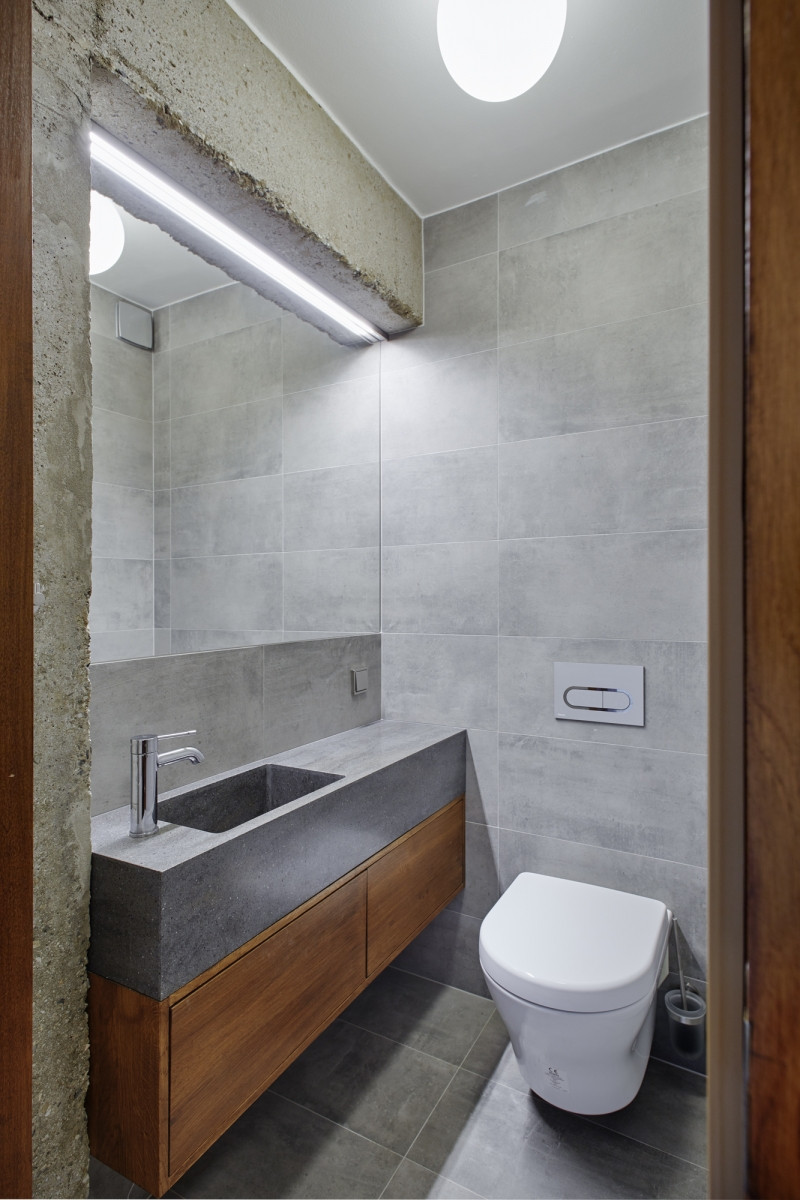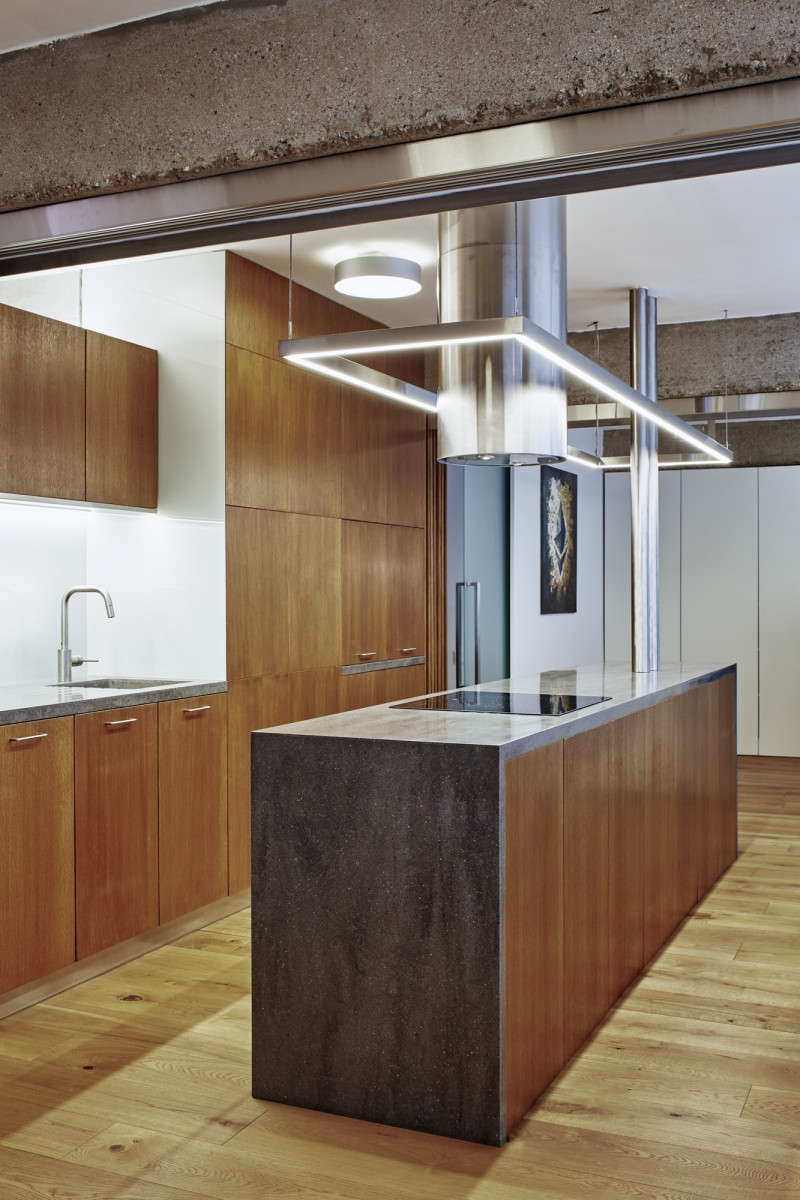 Klíčem k úspěchu bylo poradit si s technickými komplikacemi, které se radikální změnou dispozice v bytě objevily. Odhaleny byly například stoupačky, která architektka nechala obalit nerezovým pláštěm a vytvořila z nich vizuálně atraktivní detail nořící se do kuchyňského ostrůvku.