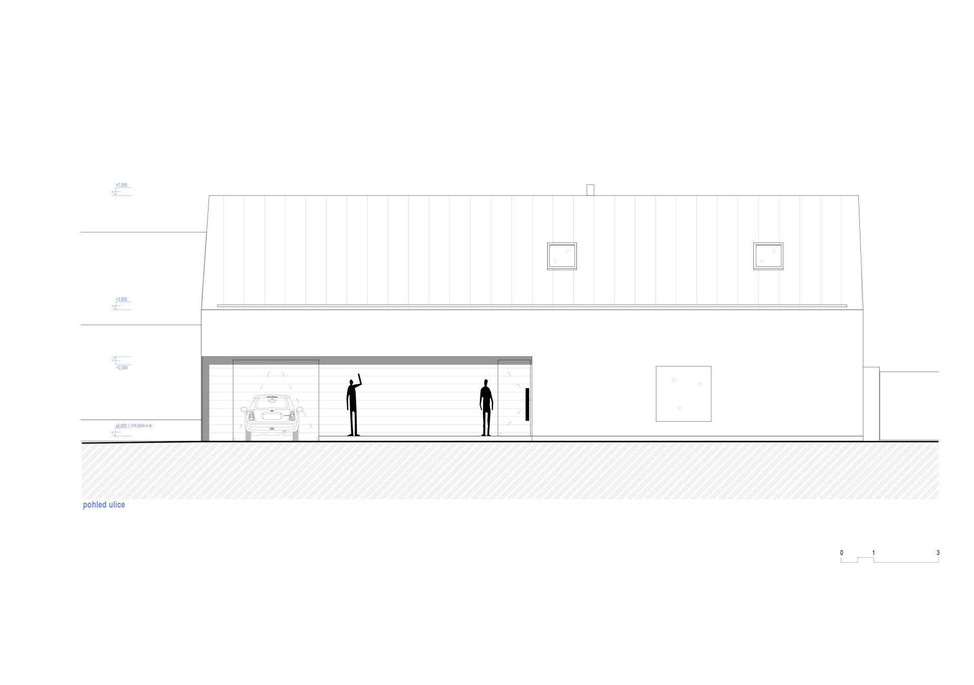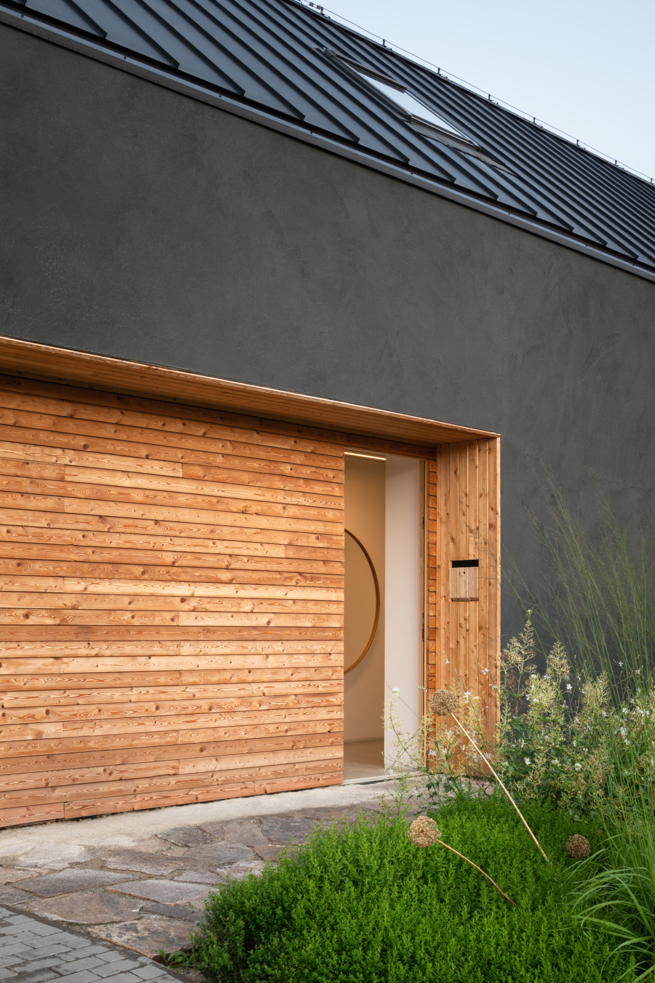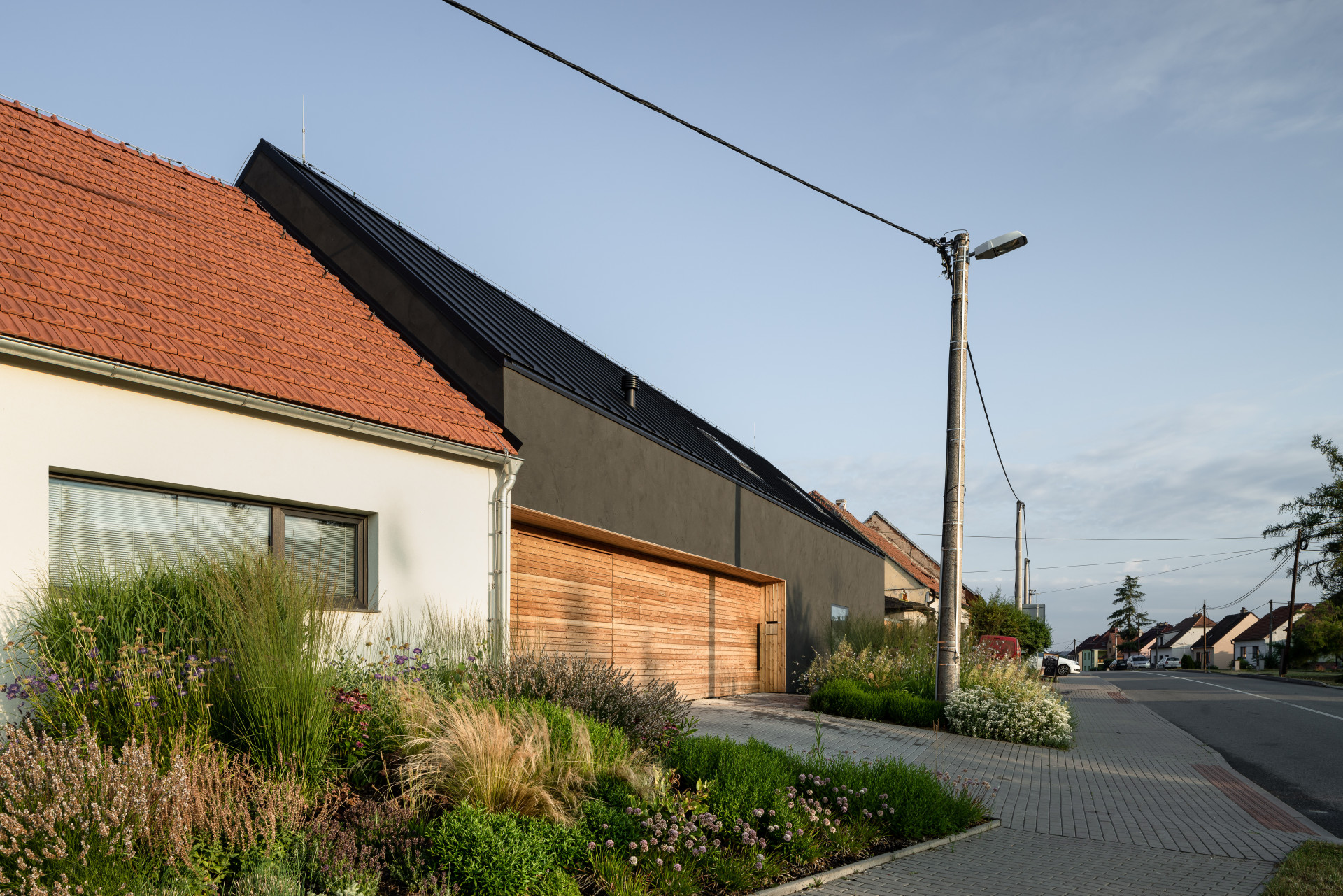 Dům svým obyvatelům nabízí dostatek soukromí. Do ulice se otevírá pouze jedním oknem, anonymně ale nepůsobí. Správně zvoleným měřítkem a členěním fasád souzní s okolní zástavbou. Navazování na charakter místa patří mezi vlastnosti, které Radek Pasterný s ateliérem CL3 svým realizacím dává. Podobně tomu bylo i u rodinného domu v Dolních Dubňanech, který stojí přímo na návsi jihomoravské obce.