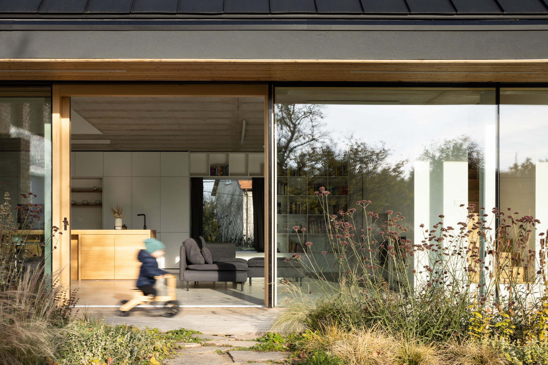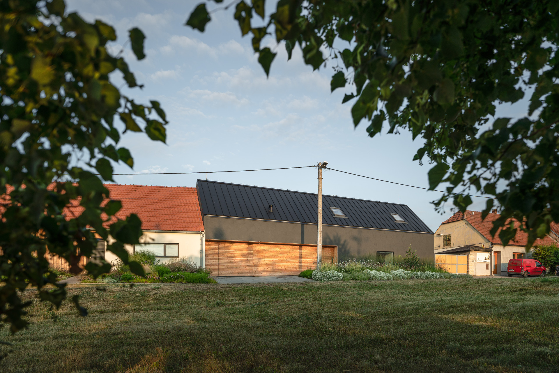 V malé moravské vesnici Polánka si architekt Radek Pasterný postavil vlastní rodinný dům. Je nízkoenergetický a černý. Tvarem a měřítkem ale respektuje okolní zástavbu.