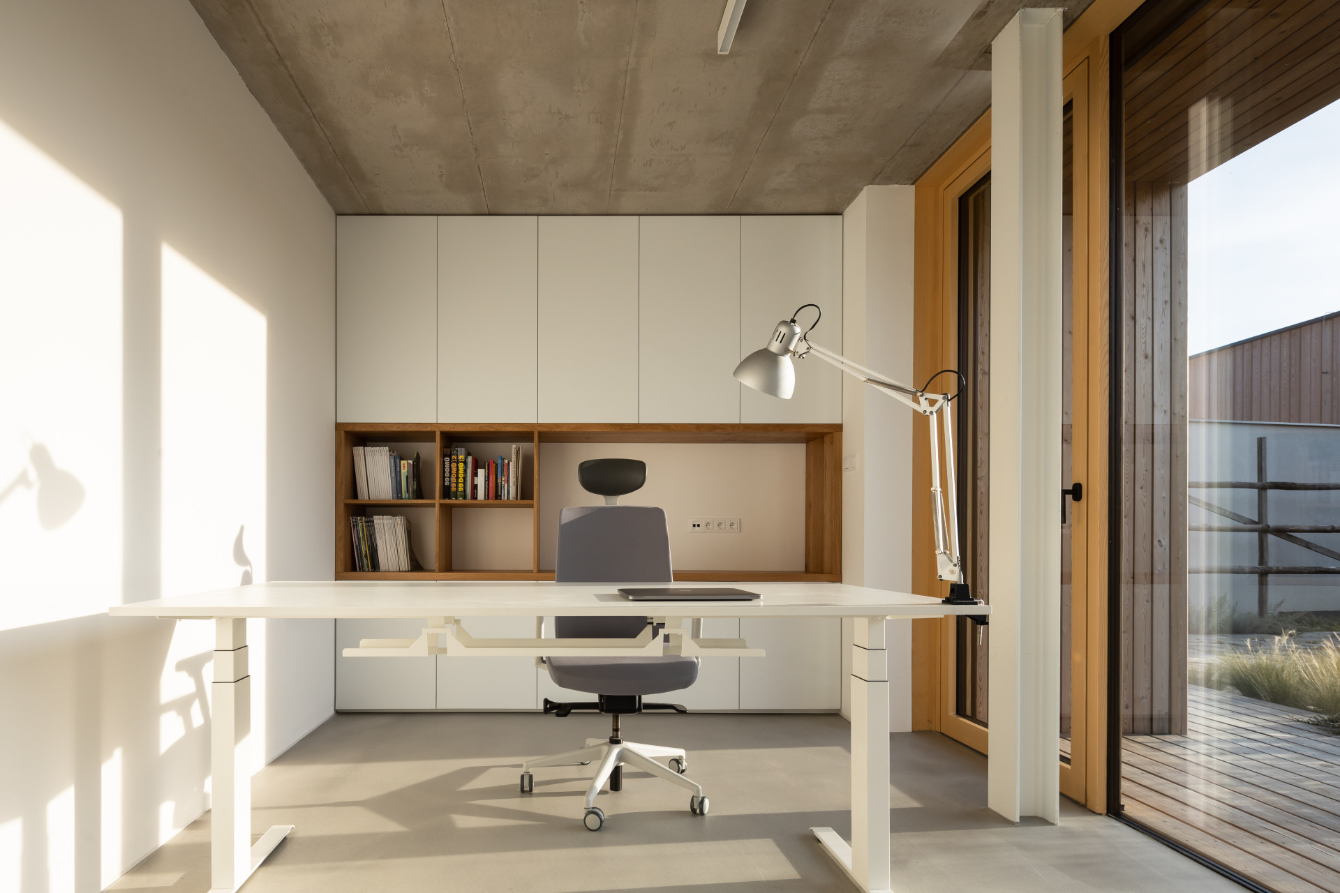 - Střešní okna: kyvné střešní okno VELUX Premium – GGL 3066 v celodřevěném provedení, doplněné o venkovní stínění