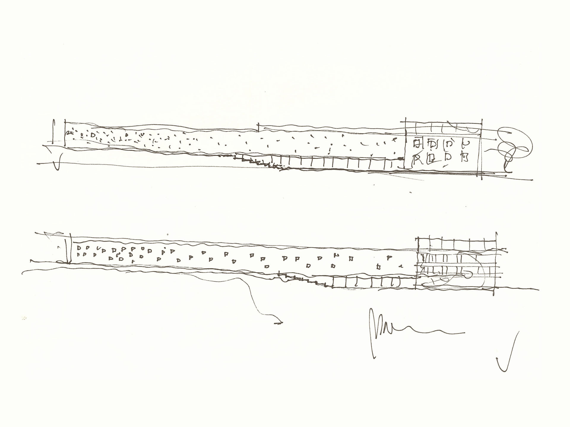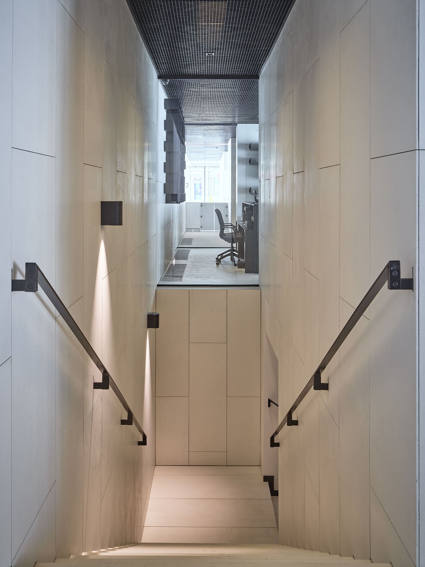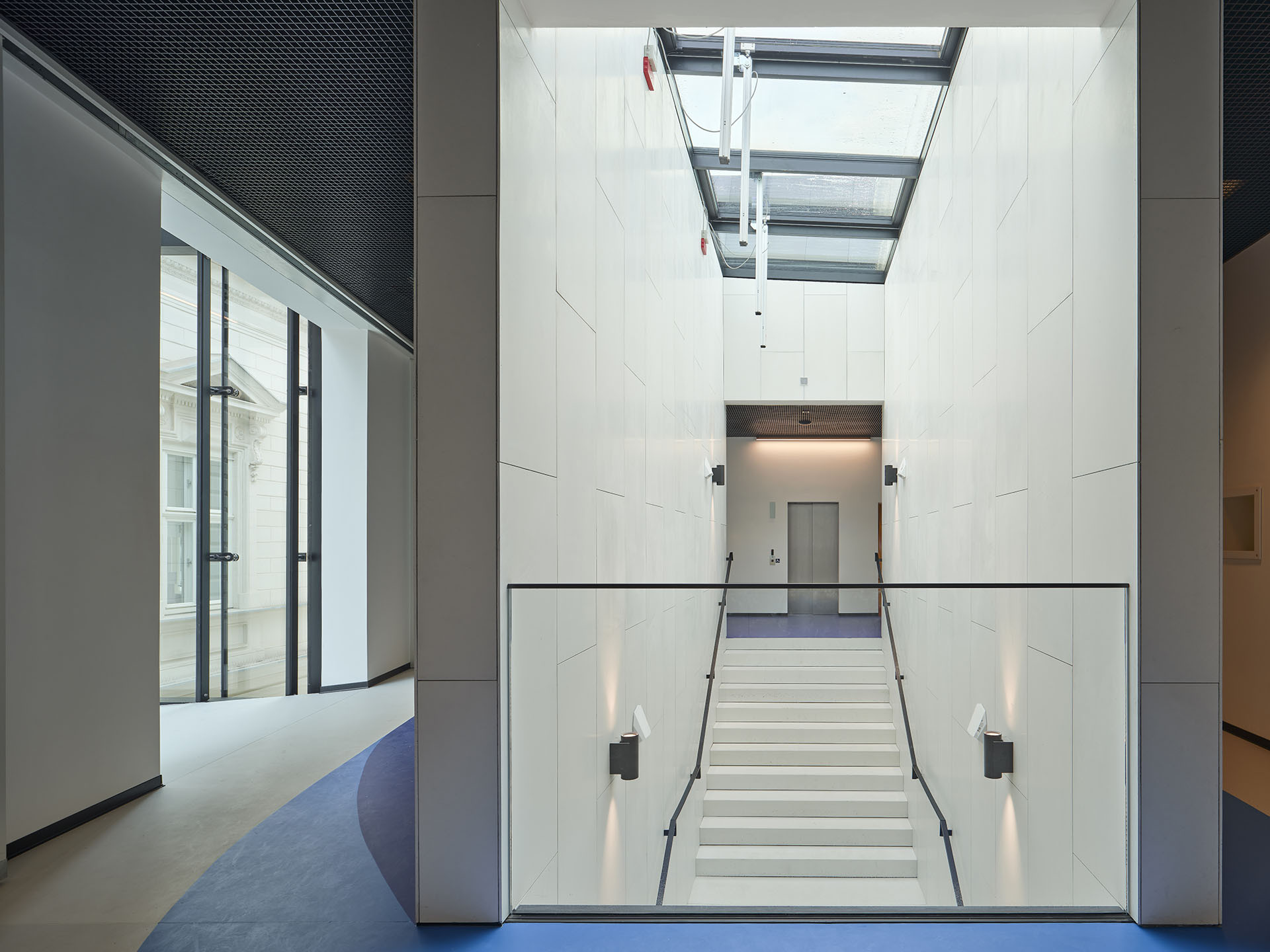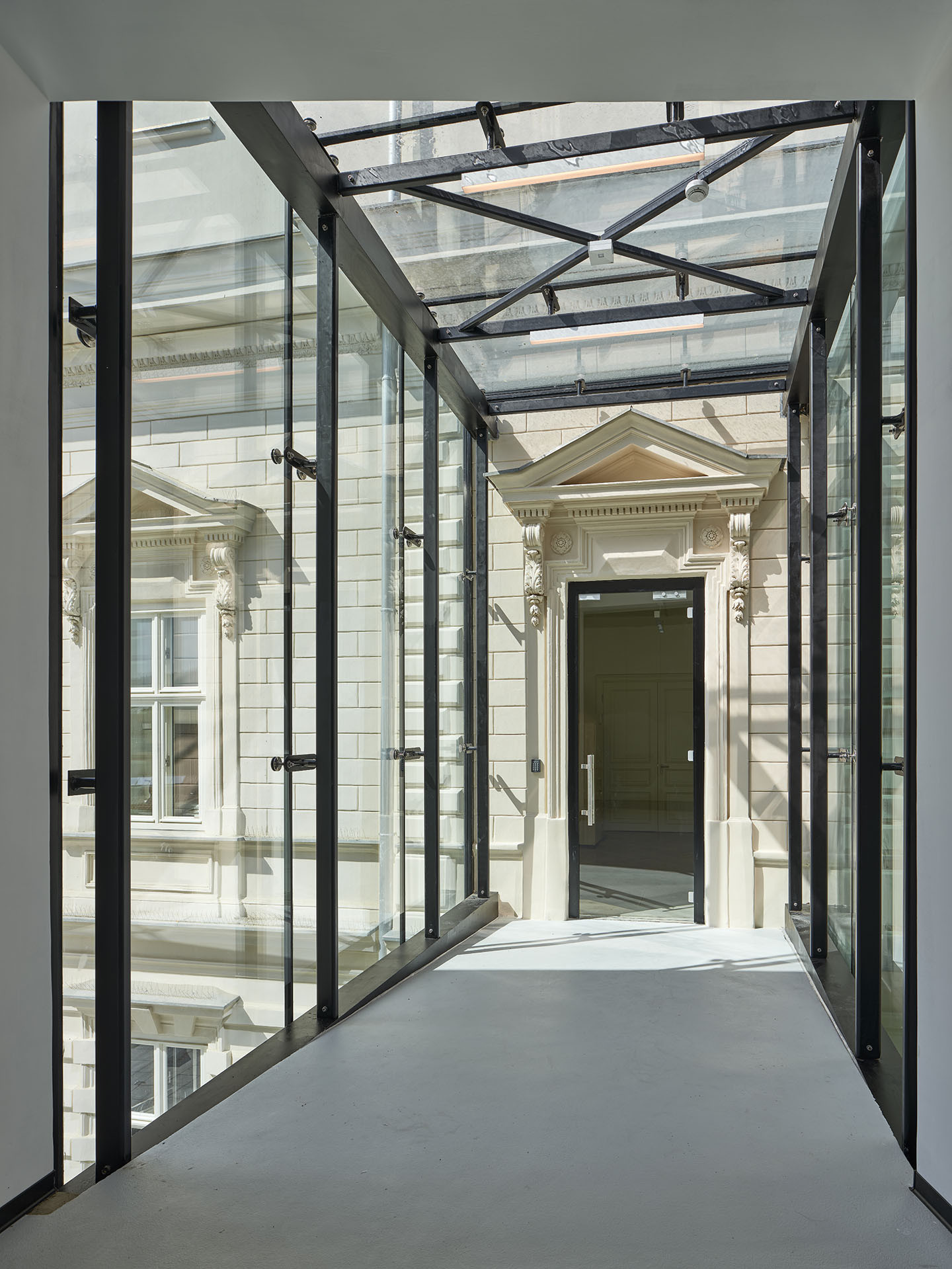 Novostavba je s rekonstruovanou vilou Roth propojena proskleným můstkem v úrovni druhého patra. Ten funguje nejen jako spojnice mezi objekty, ale i jako vyhlídka do přilehlých ulic a veřejného prostoru, který architekti nově definovali v zadní části pozemku.