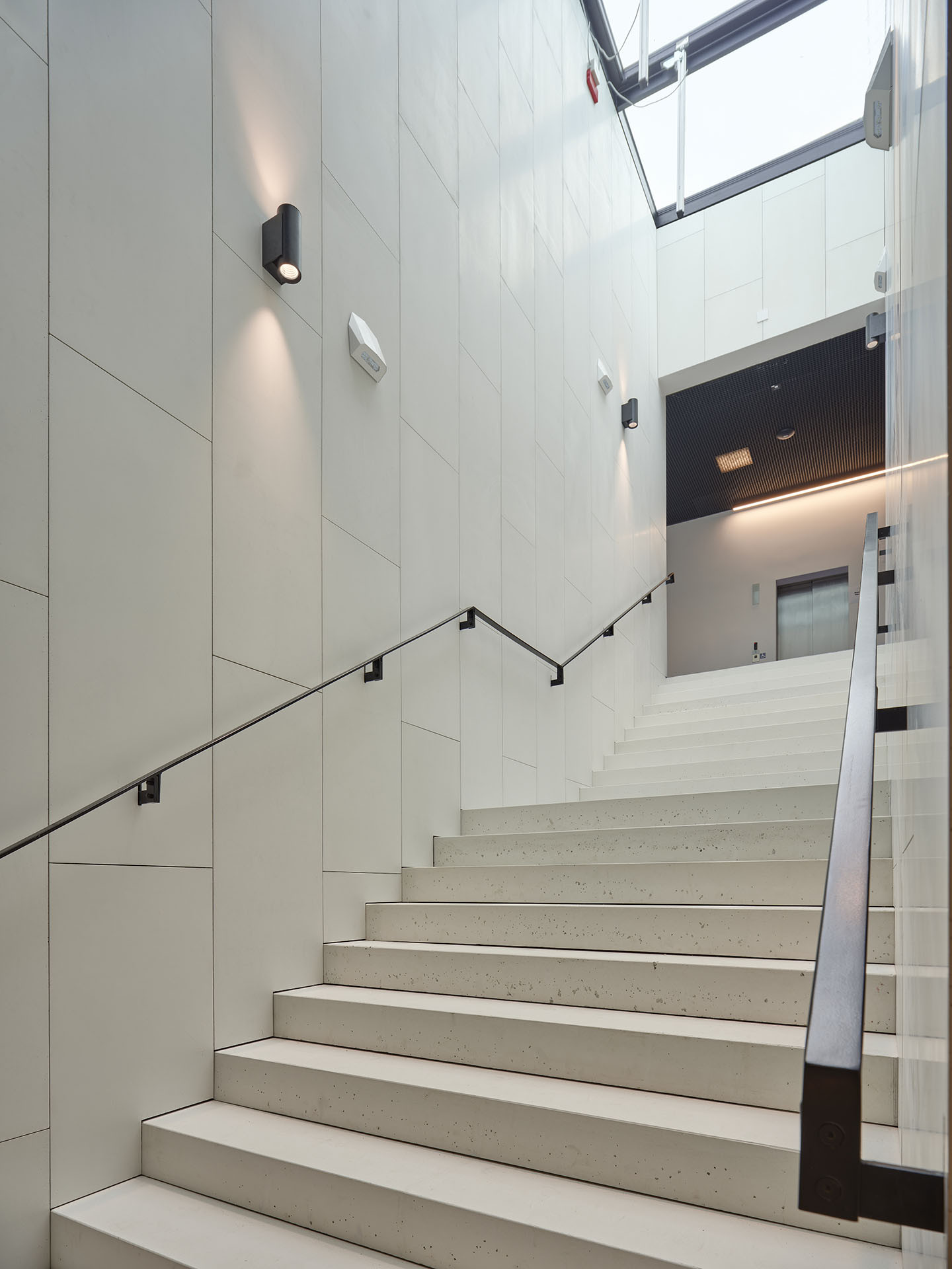 „Konstrukce nové části budovy se jeví jako ‚zavěšená‘ nad přízemím. U návštěvníků to vyvolává iluzi, že beton přímo podepírá sklo, a to bez jakýchkoli viditelných podpěr,“ popisují vzhled budovy architekti. Dosáhnout tohoto efektu umožnila kombinace několika systémů Aluprof. V exteriéru byly použity konkrétně sloupkopříčkové fasády MB-SR50N, MB-SR50N EI s požární odolností až EI60, a také rámový systém splňující standardy pasivní výstavby MB-104 Passive.