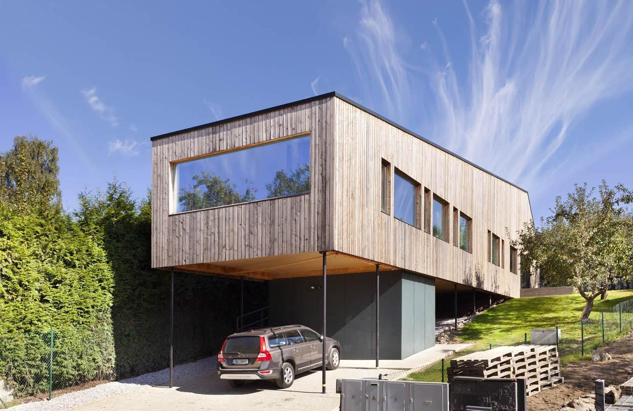 Dům ve svažitému terénu, který se jakoby vznáší, zdůrazňuje společný obytný prostor i v rovině střechy a to jejím nepravidelným zalomením. Nakoukněte s námi do dalšího z rodinných domů letošního Salonu dřevostaveb.
