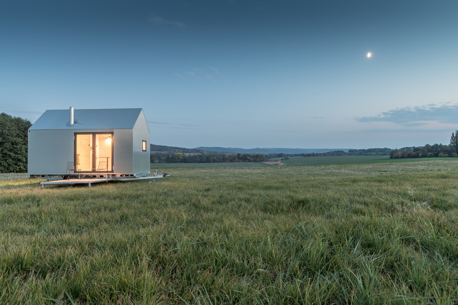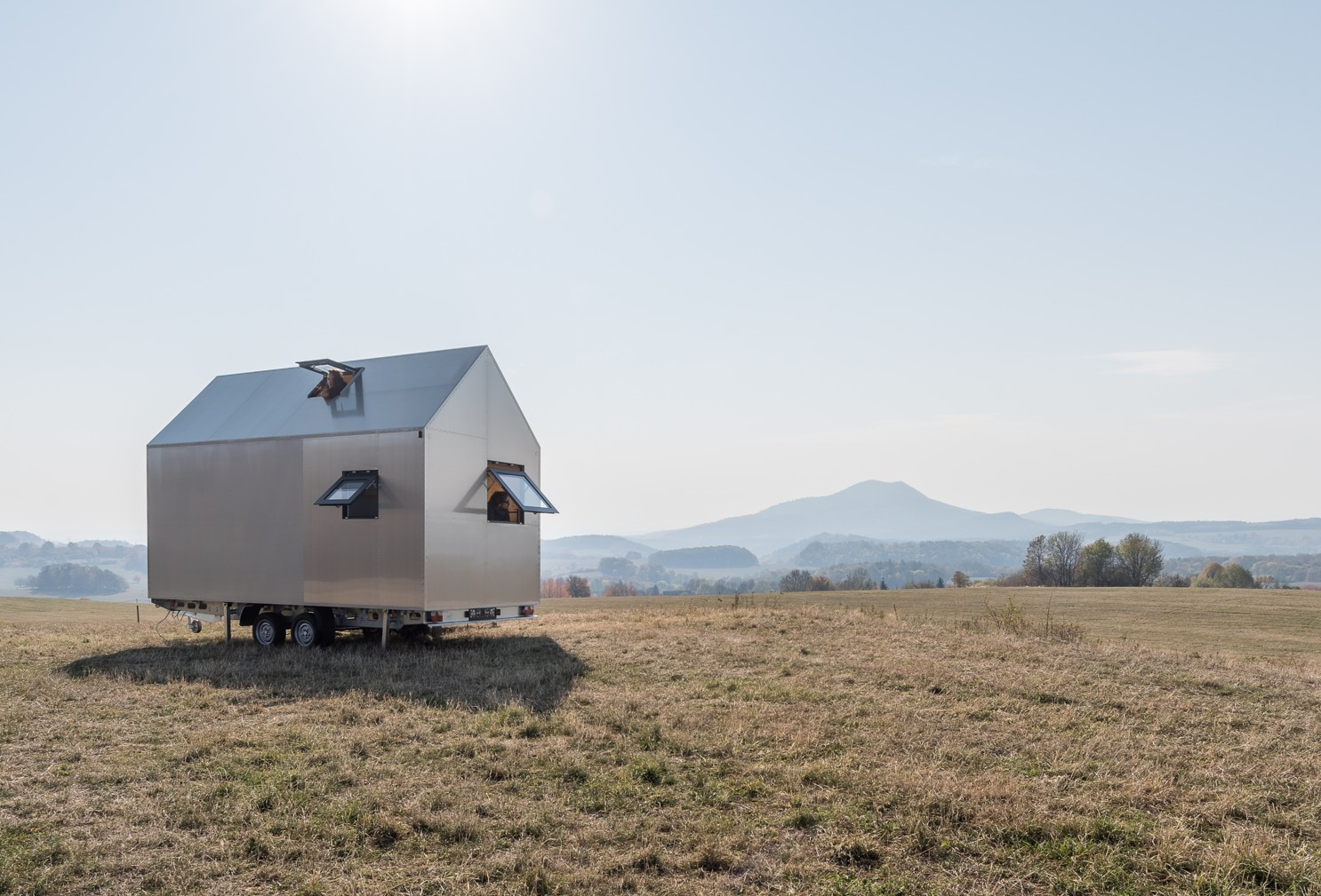 Architekti ateliéru Artikul se mohou pochlubit, že postavili dům přímo před Průmyslovým palácem na Výstavišti v pražských Holešovicích. Bez stavebního povolení. Příště ho postaví třeba na hřebenech hor. Ani tam nebudou potřebovat souhlas stavebního úřadu. Jejich Mobile Hut, domek v hliníkovém designu, který zároveň ctí základní archetypální tvar českého domu se sedlovou střechou, má totiž kola a byl homologován jako přípojné vozidlo - má svůj technický průkaz i SPZ a postavit ho, přesněji zaparkovat ho můžete se souhlasem majitele pozemku v podstatě kdekoli, kam s ním dojedete. Je totiž nezávislý a energeticky soběstačný. Pro čtyři lidi až na dva týdny.
