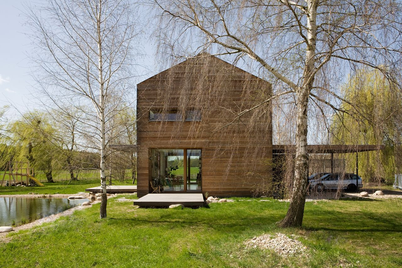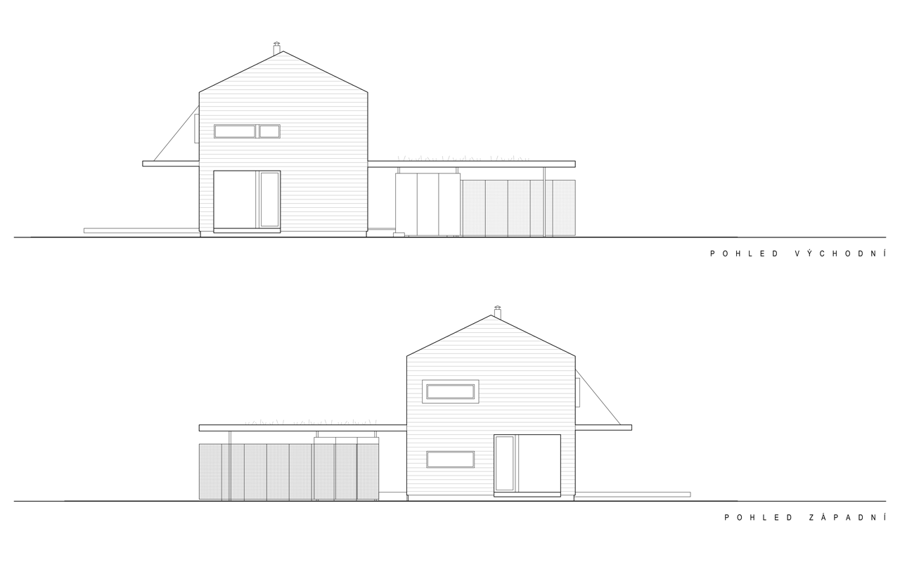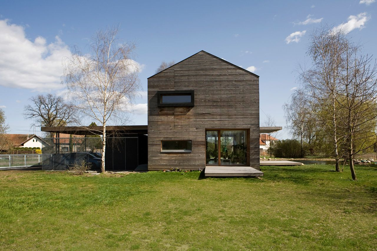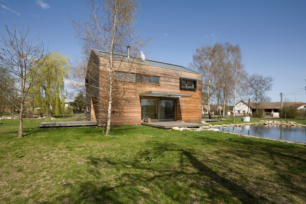 Dům pro rodinu se dvěma dětmi je posazen na pozemek na okraji obce Bohumileč. Pozemek na konci obce z jedné strany sousedí s okolními chalupami, z druhé se otevírá do kraje. Vzrostlá zeleň vytváří domu vlastní svět, do něhož je většinu roku zcela ponořen.