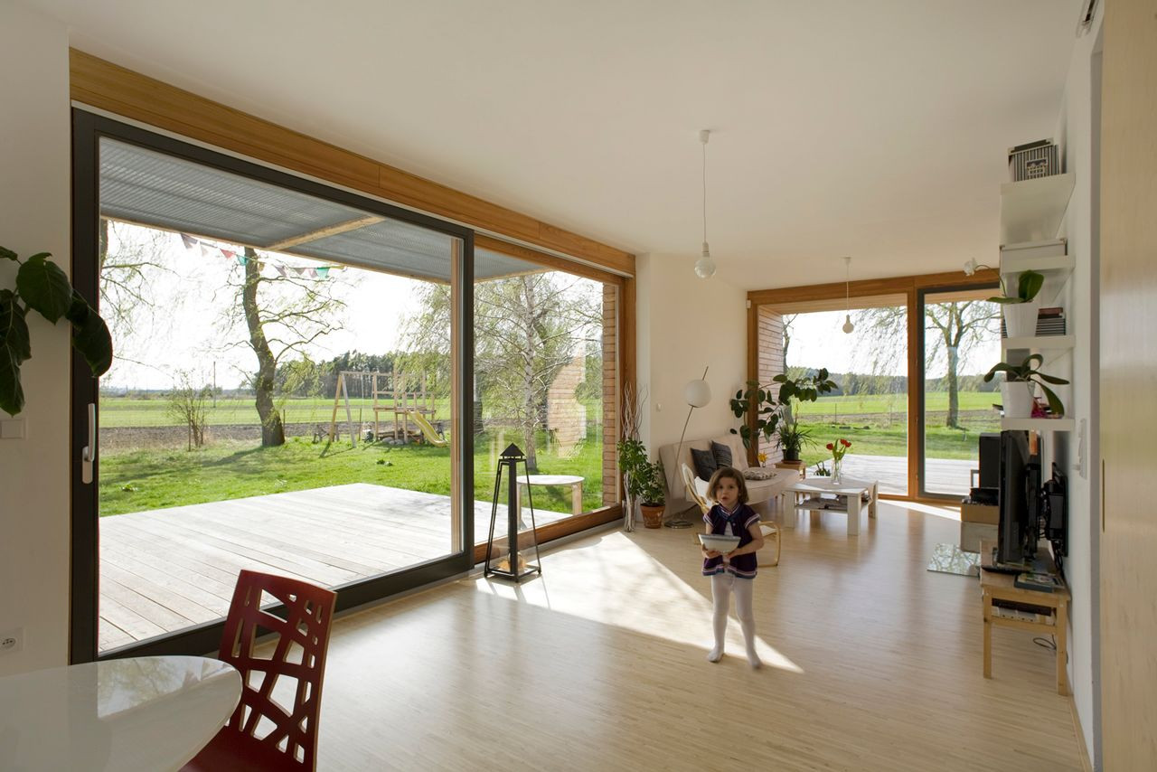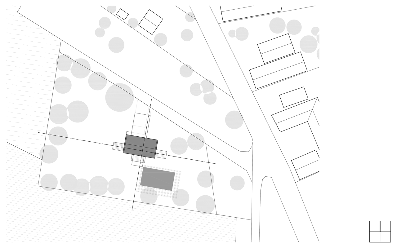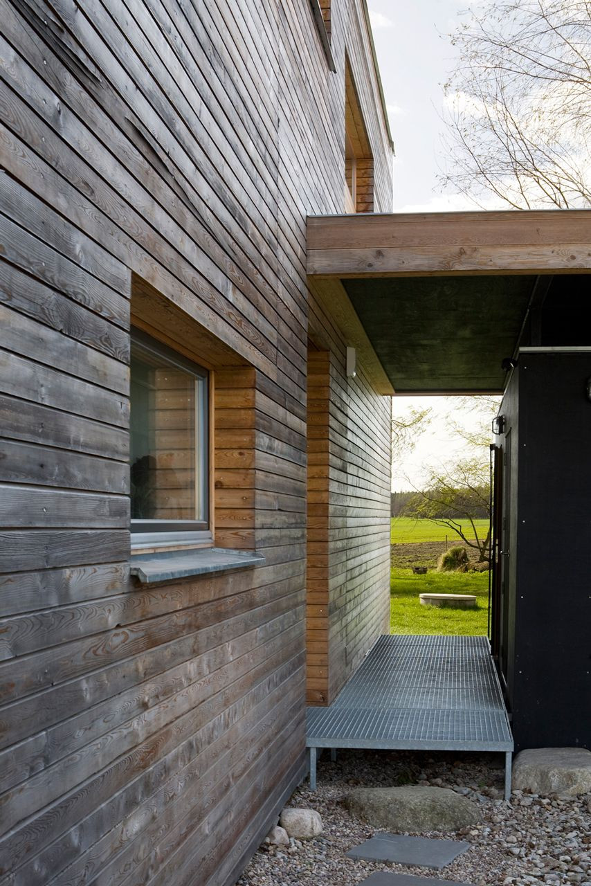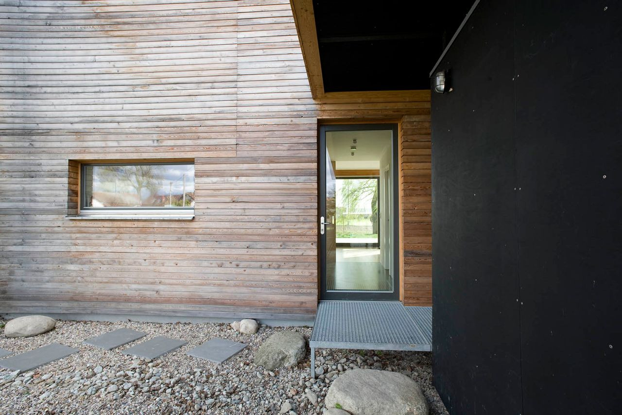 Dům pro rodinu se dvěma dětmi je posazen na pozemek na okraji obce Bohumileč. Pozemek na konci obce z jedné strany sousedí s okolními chalupami, z druhé se otevírá do kraje. Vzrostlá zeleň vytváří domu vlastní svět, do něhož je většinu roku zcela ponořen.