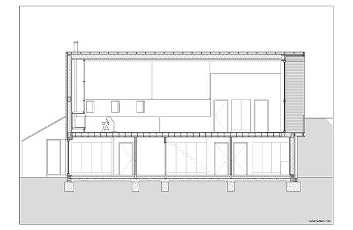 Úzká spolupráce architekta s projektantem Danem Kerrem má pozoruhodný výsledek. Záviděníhodná znalost konstrukční metodiky technologií umožnila velkorysé architektonické detaily. Budova stojí na místě staré stodoly, kde byl na zakázku vyroben dřevěný rám a obložení pro novou formu stavby. Ta je tak s krajinou spjata nejen vizuálně, ale její odkaz nese sama na sobě.