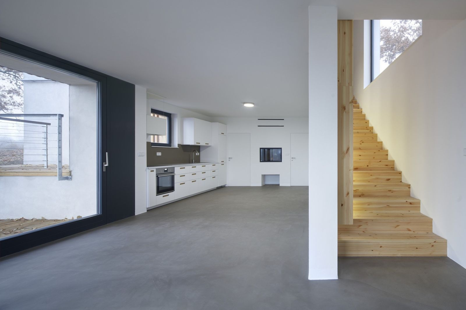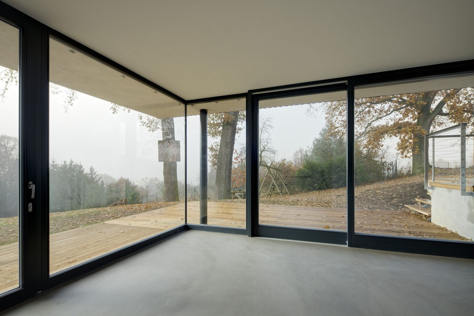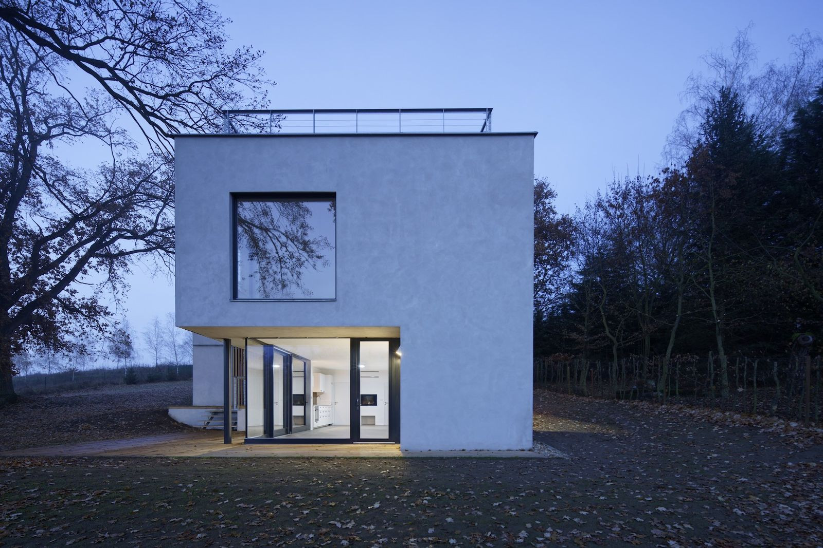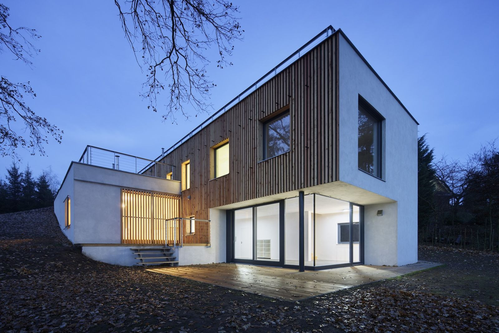 Architekti z pražské architektonické kanceláře Sporadical řešili návrh rodinného domu na svažitém pozemku v malé obci na Benešovsku, který obklopují vzrostlé duby. Zelená střecha domu je přístupná přímo z terénu na severní straně pozemku, kde vede silnice. Dům se skládá ze dvou hmot - větší dvoupodlažní a k ní přidružené přízemní. Velké prosklené části fasády propujují dům s přírodou v okolí.