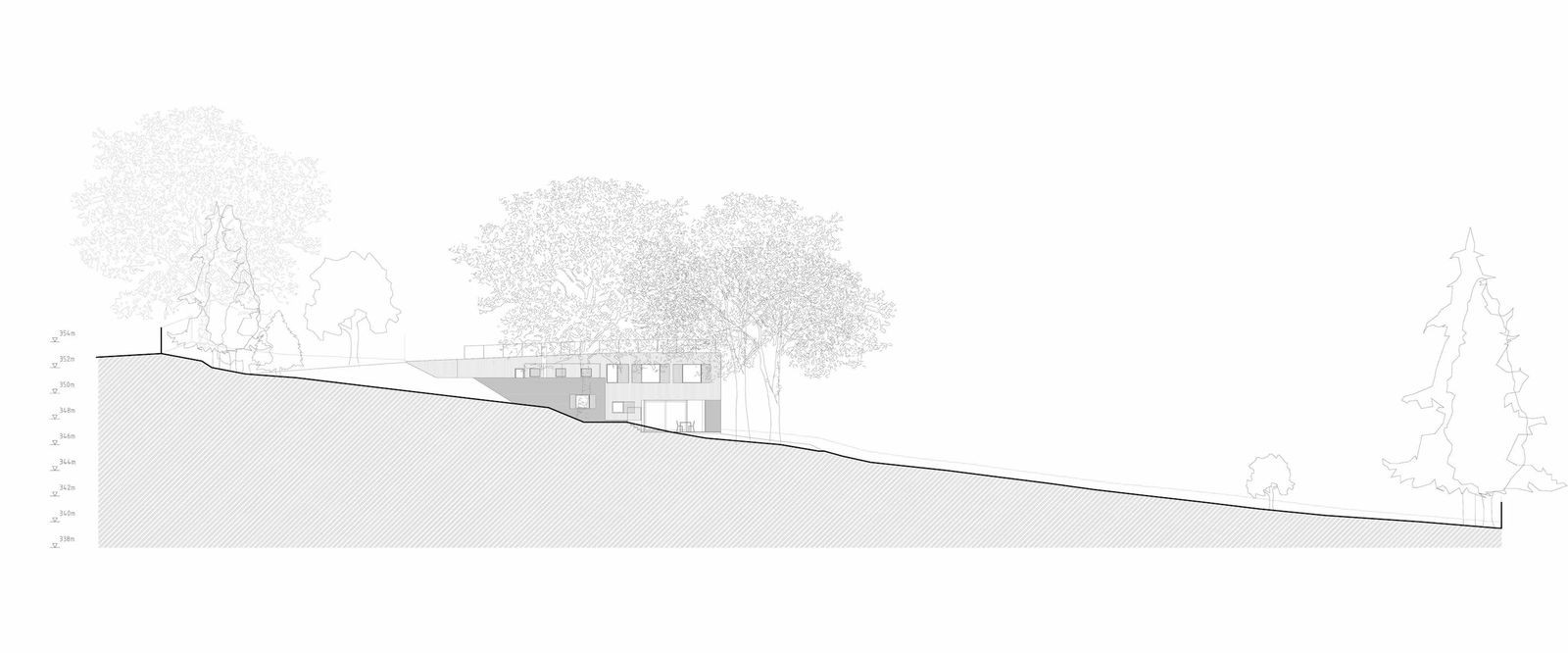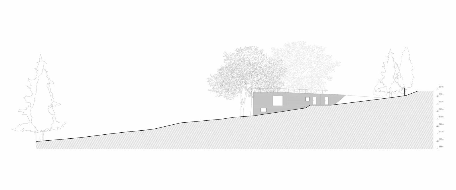Dům od Sporadical navazuje zelenou střechou na svažitý terén