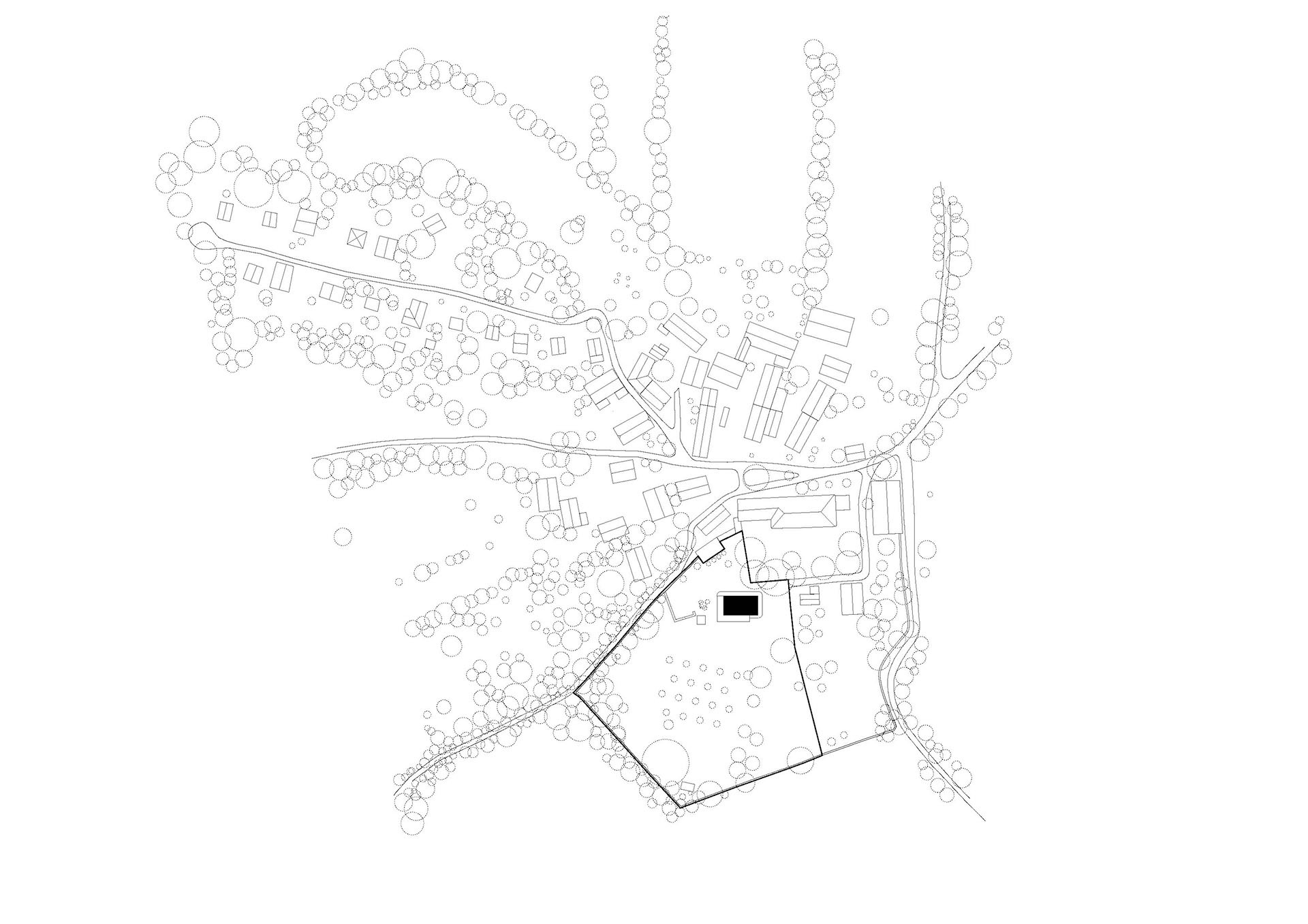 Vzhled domu podmínila lokální topografie, architekt ho zasadil do krajiny a historického kontextu tak, aby nezastiňoval zámek. Formální inspirací mu byla kaple – sakrální stavba, která ve vesnici chybí.