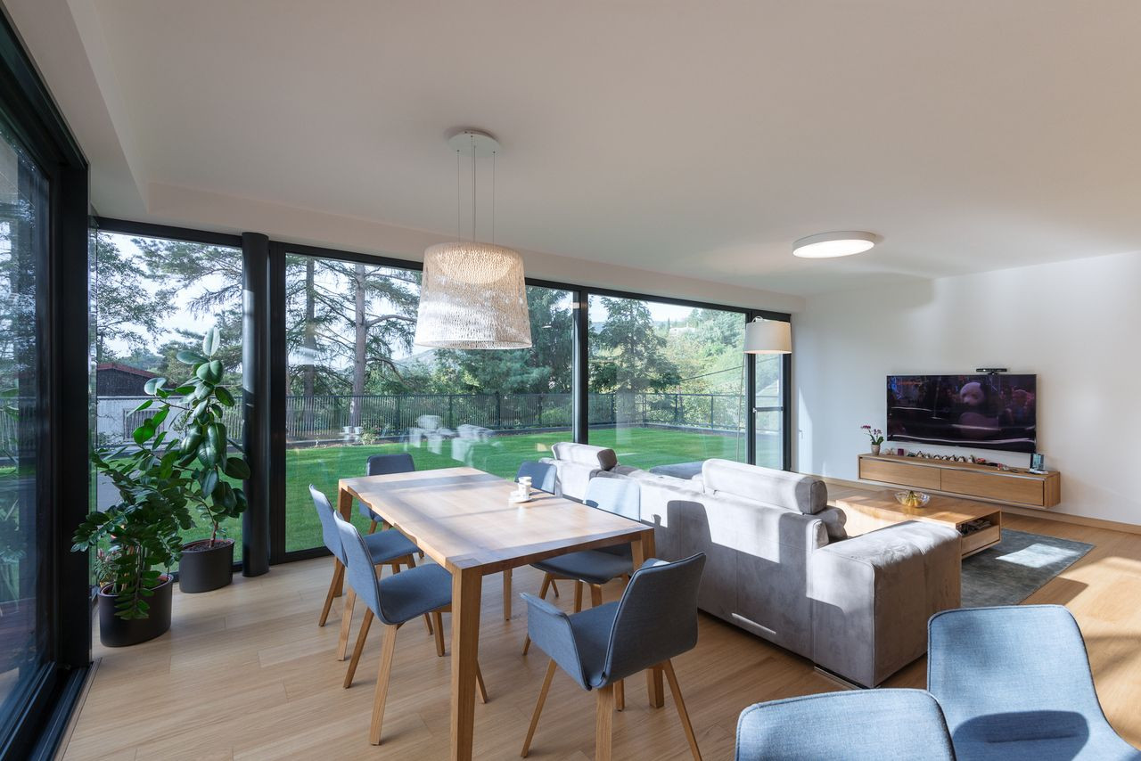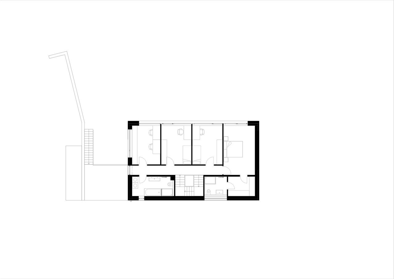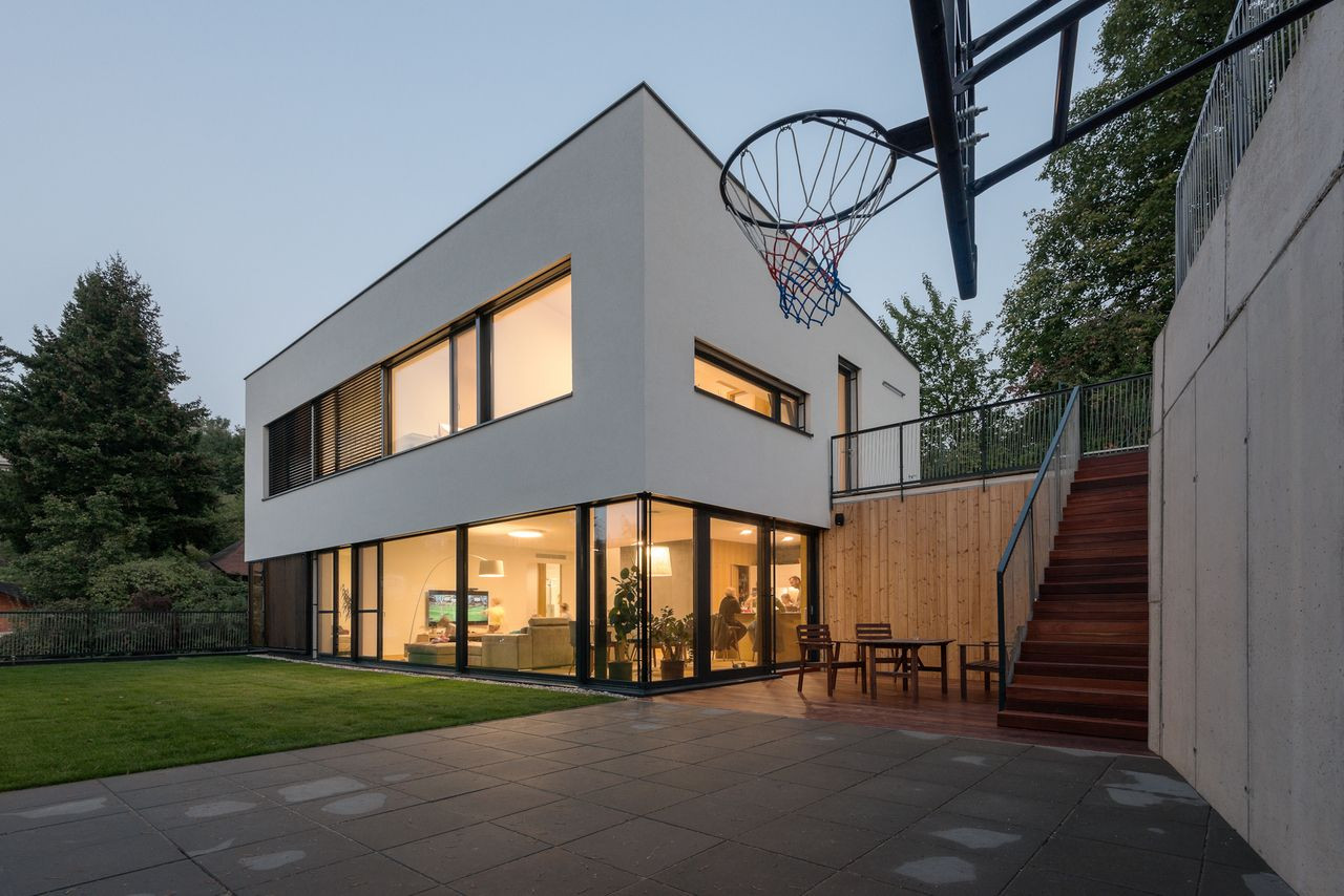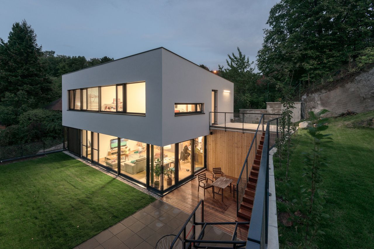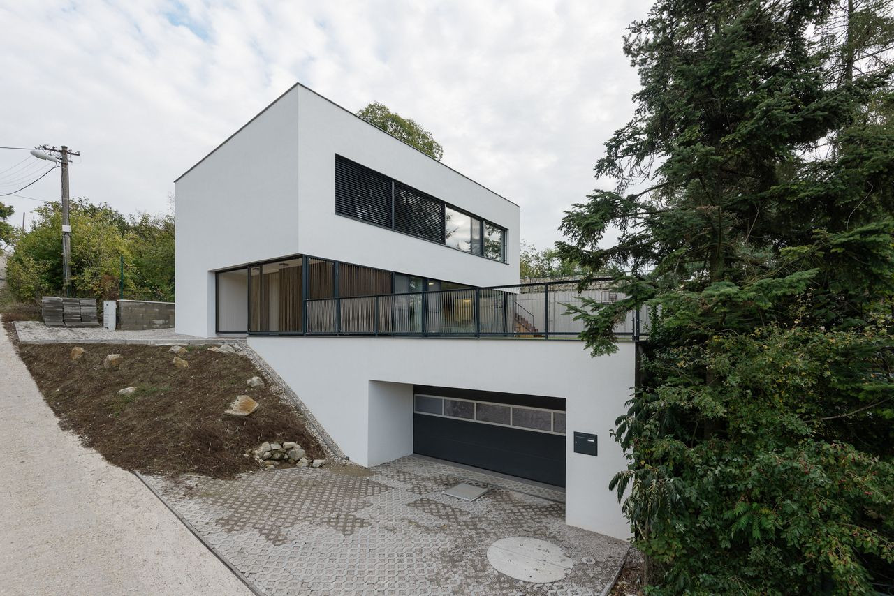 Specifická terénní konfigurace svažitého pozemku se stala základem pro hmotový koncept rodinného domu v poklidné bratislavské městské části Devín. Dům, navržený studiem Compass Architekti, stojí na okraji parcely a vytváří hranici mezi veřejným prostorem ulice a soukromým dvorem, který je na střeše garáže.
