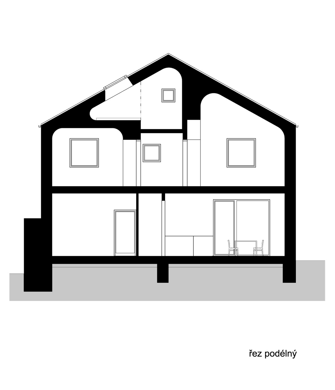 ov-a, Dům pro volný čas Sušice, řez podélný – foto