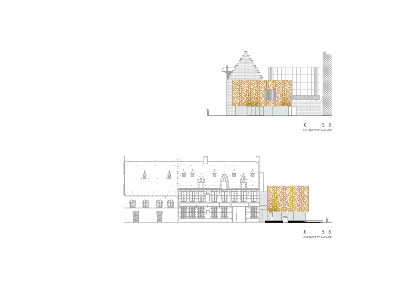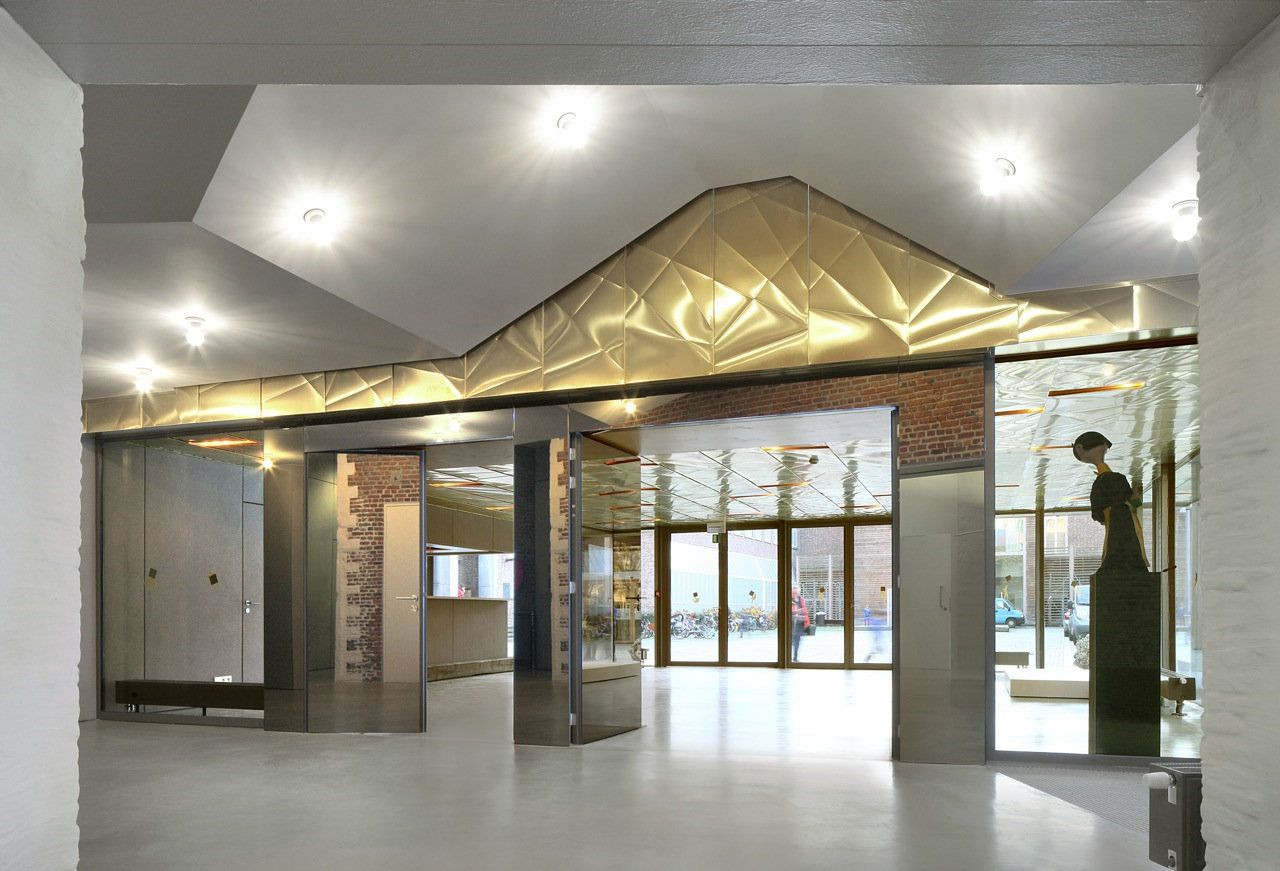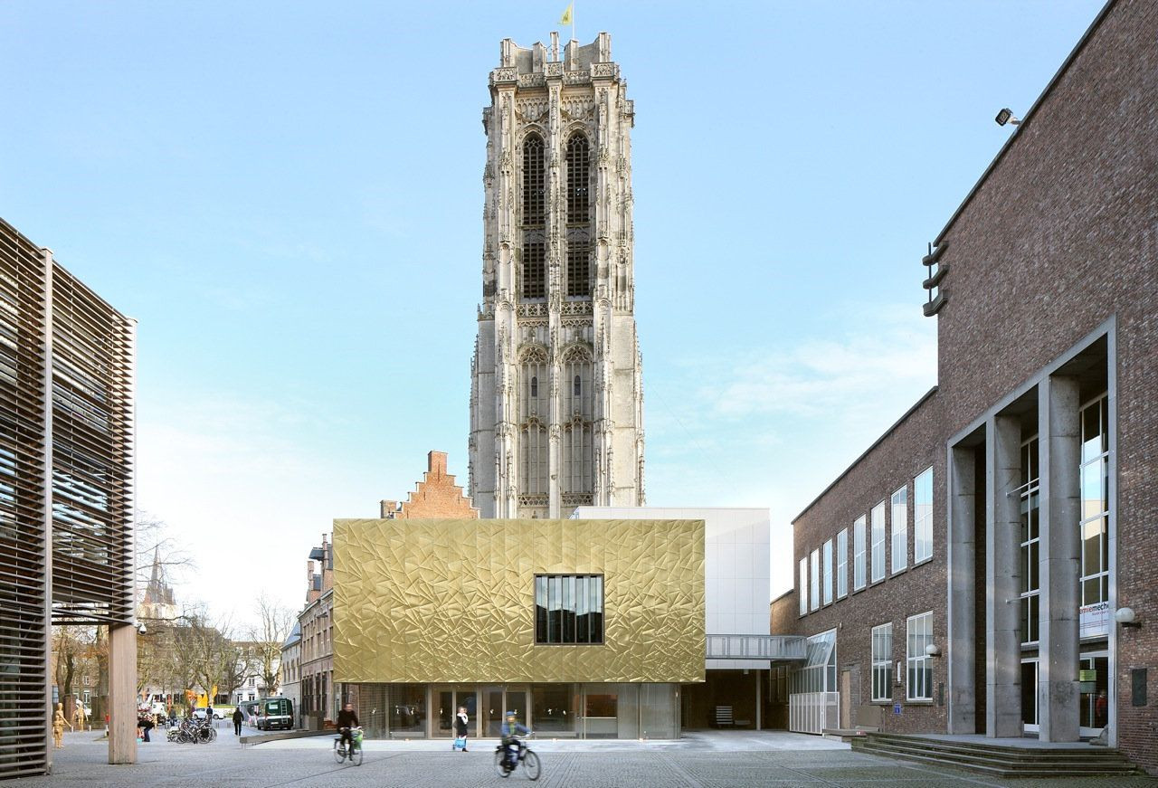 Náš vítězný návrh, vzešlý z architektonické soutěže, zahrnoval rekonstrukci stávajících budov – v úzké spolupráci s architekty Beeck/Oostpool – a projekt nového, malého divadelního komplexu mezi historickými budovami, vedle původní střechy a ve stínu věže věhlasné katedrály sv. Rombouta, která je na seznamu světového dědictví UNESCO. Zlatá krychle obsahuje malý sál s plně prosklenou kavárnou dole, spojující Měsíc se sousedními stavbami, také zasvěcenými umění.