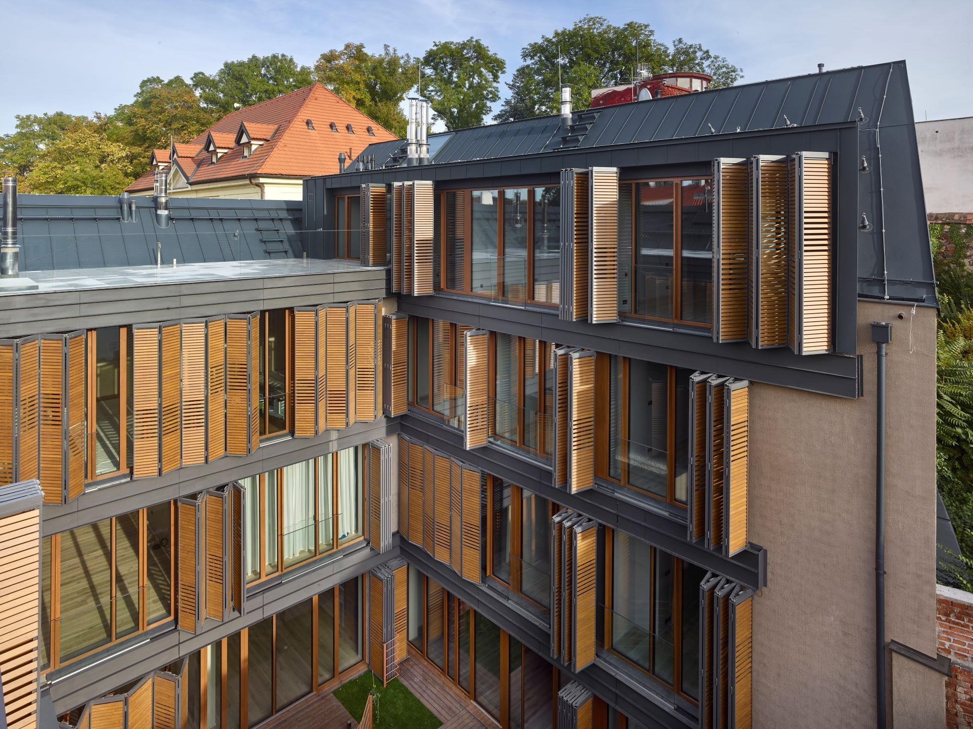Oceněný rezidenční dům, o kterém jsme již psali, na první pohled nenarušuje ráz čtvrti. Díky citlivému návrhu působí jako přirozená součást památkové oblasti. Nedílnou složkou celkového řešení jsou i interiérové a vstupní dveře, které podle architekta Jana Nedvěda výrazně ovlivňují atmosféru domu – v tomto případě jich bylo osazeno 117 od českého výrobce SAPELI.