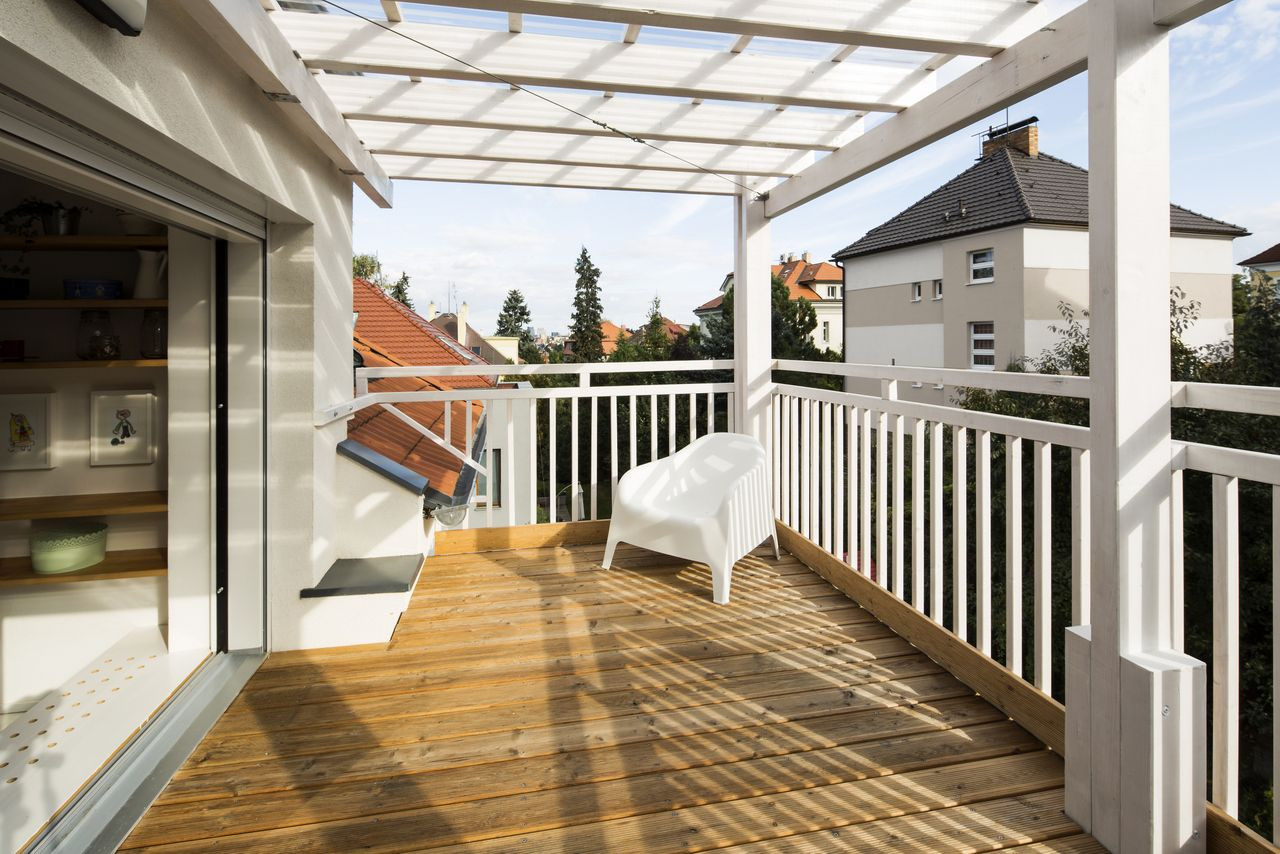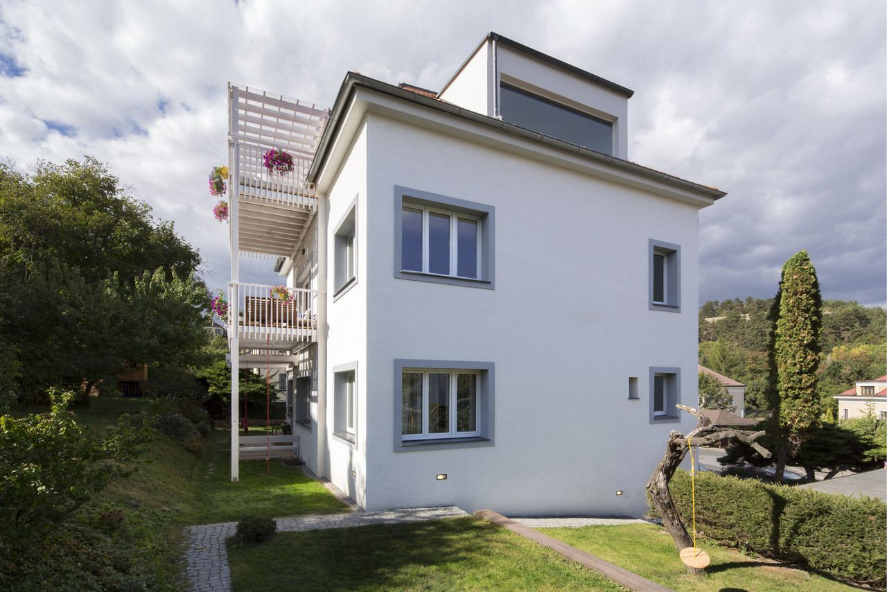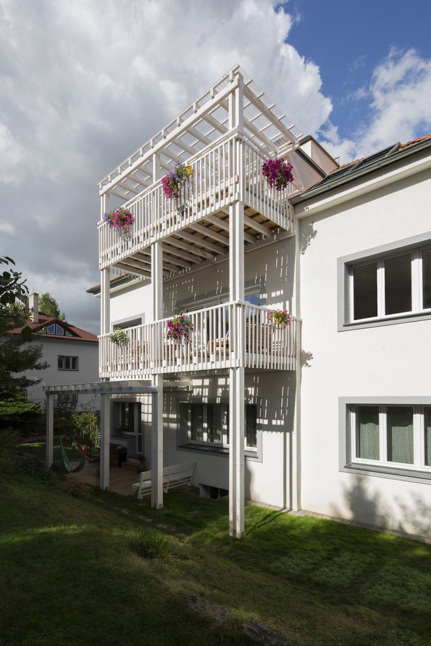 Nad údolím Dalejského potoka v Praze vyrostla na počátku 20. století čtvrť malých bytových domů s vlastními zahradami. Jeden z nich si vzalo do parády studio No architects, které se rozhodlo prvorepublikový charakter domu zachovat a všem nájemníkům umožnit profitovat z krásné zahrady. K jedné z fasád byla proto přistavěná elegantní dřevěná konstrukce teras, které rozšiřují společenský prostor jednotlivých bytů a obyvatelům nabízí intenzivnější kontakt se zelení.