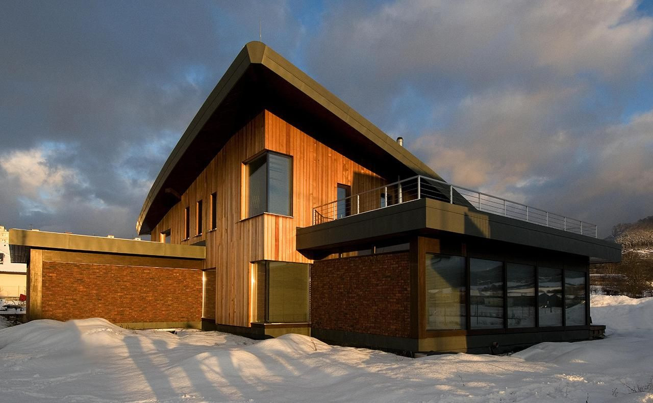 Na fasáde je použitý cédrový obklad. Aby sa zachovali teplotechnické parametre pasívneho domu, museli byť vyvinuté špeciálne rohové trojsklá a bola použitá rekuperácia teplovzdušného vykurovania. Vzhľadom na netradičné architektonické stvárnenie strechy musel byť zmenený územný plán lokality.