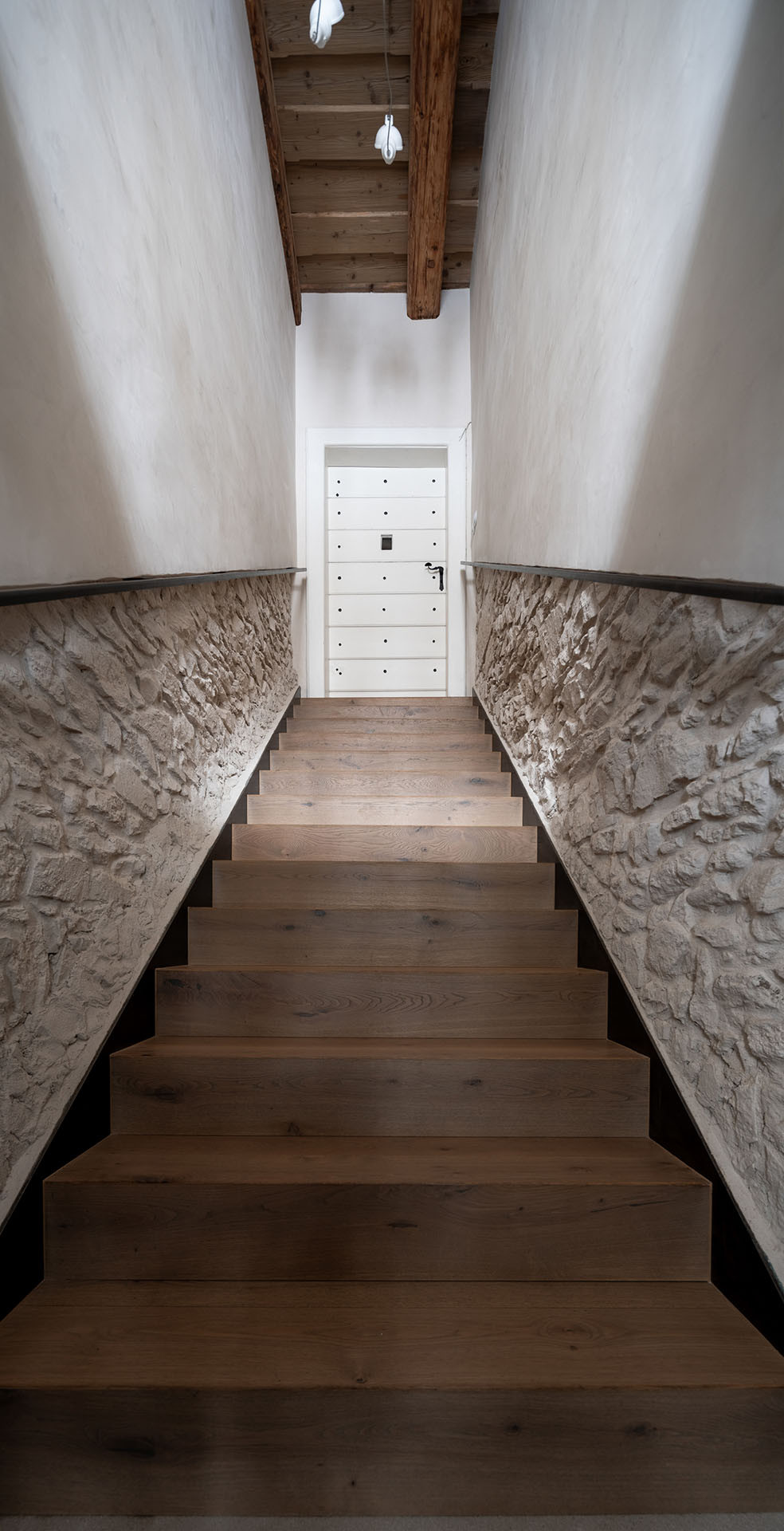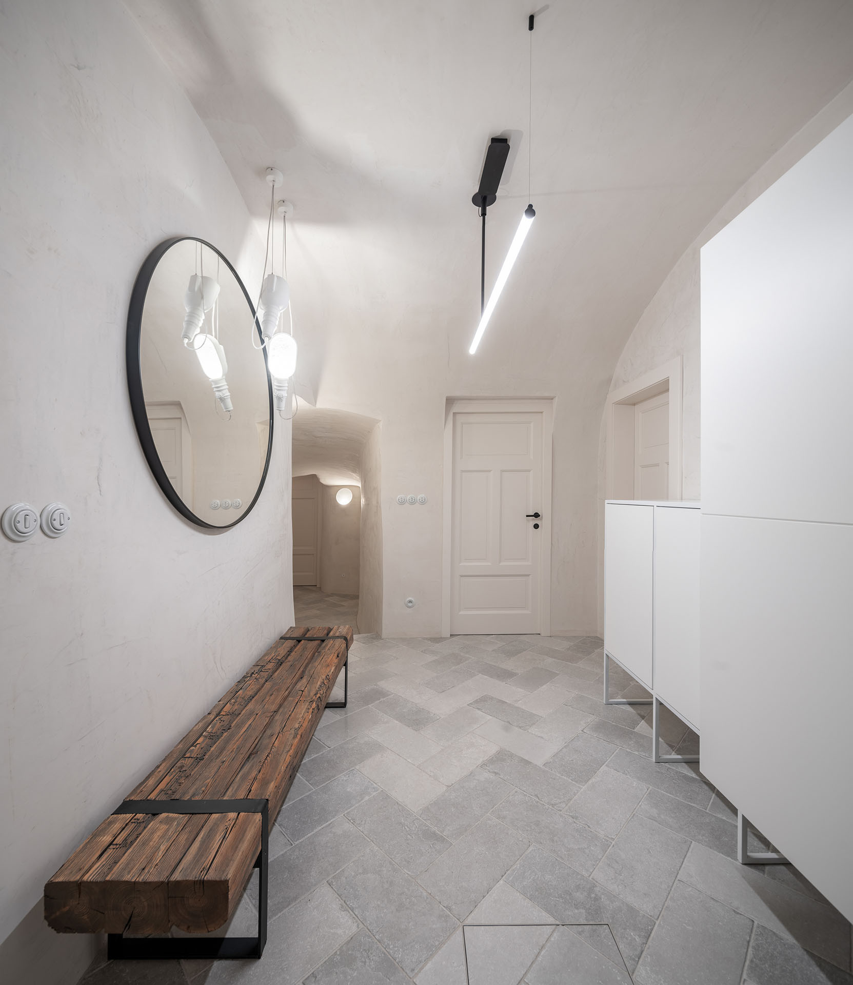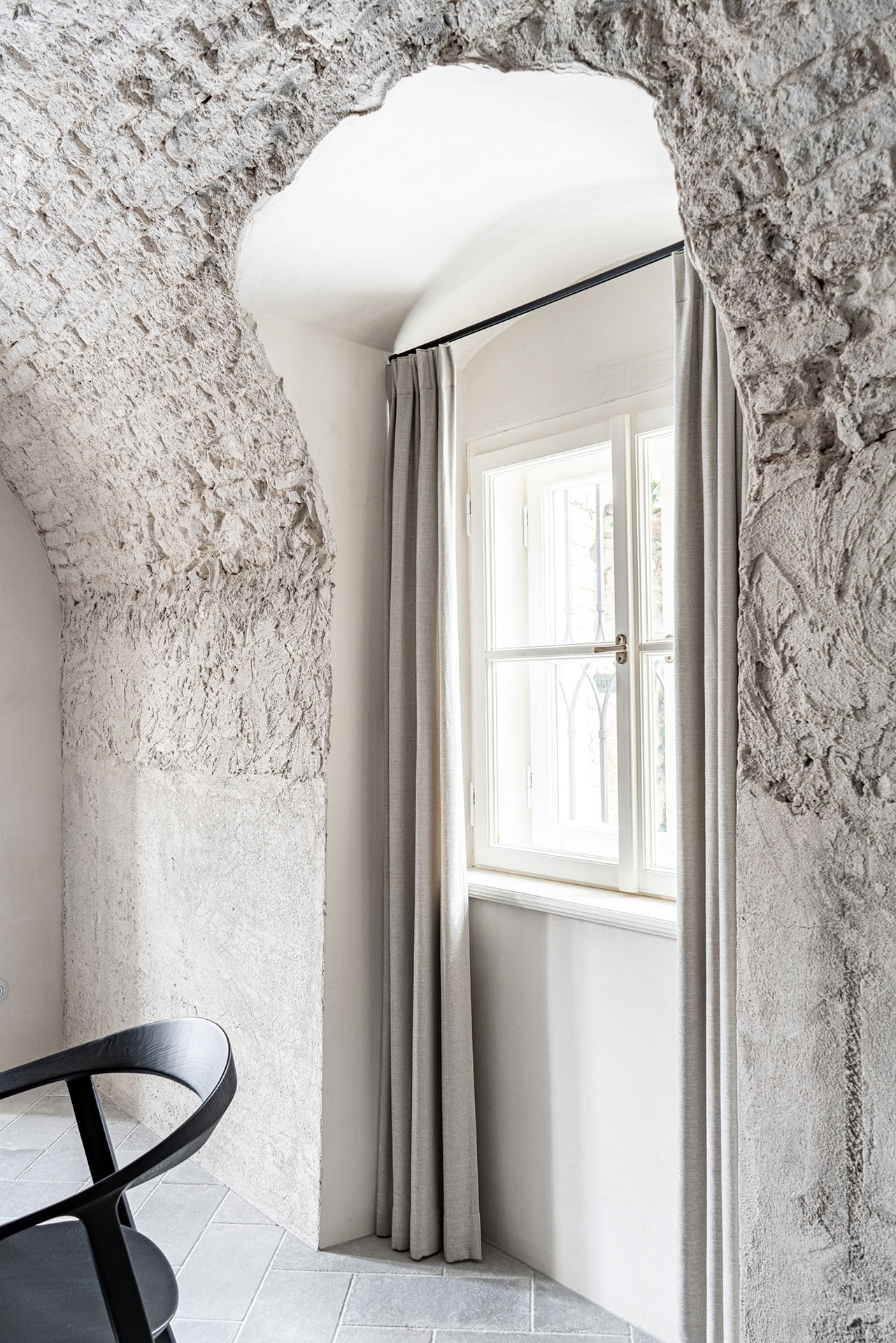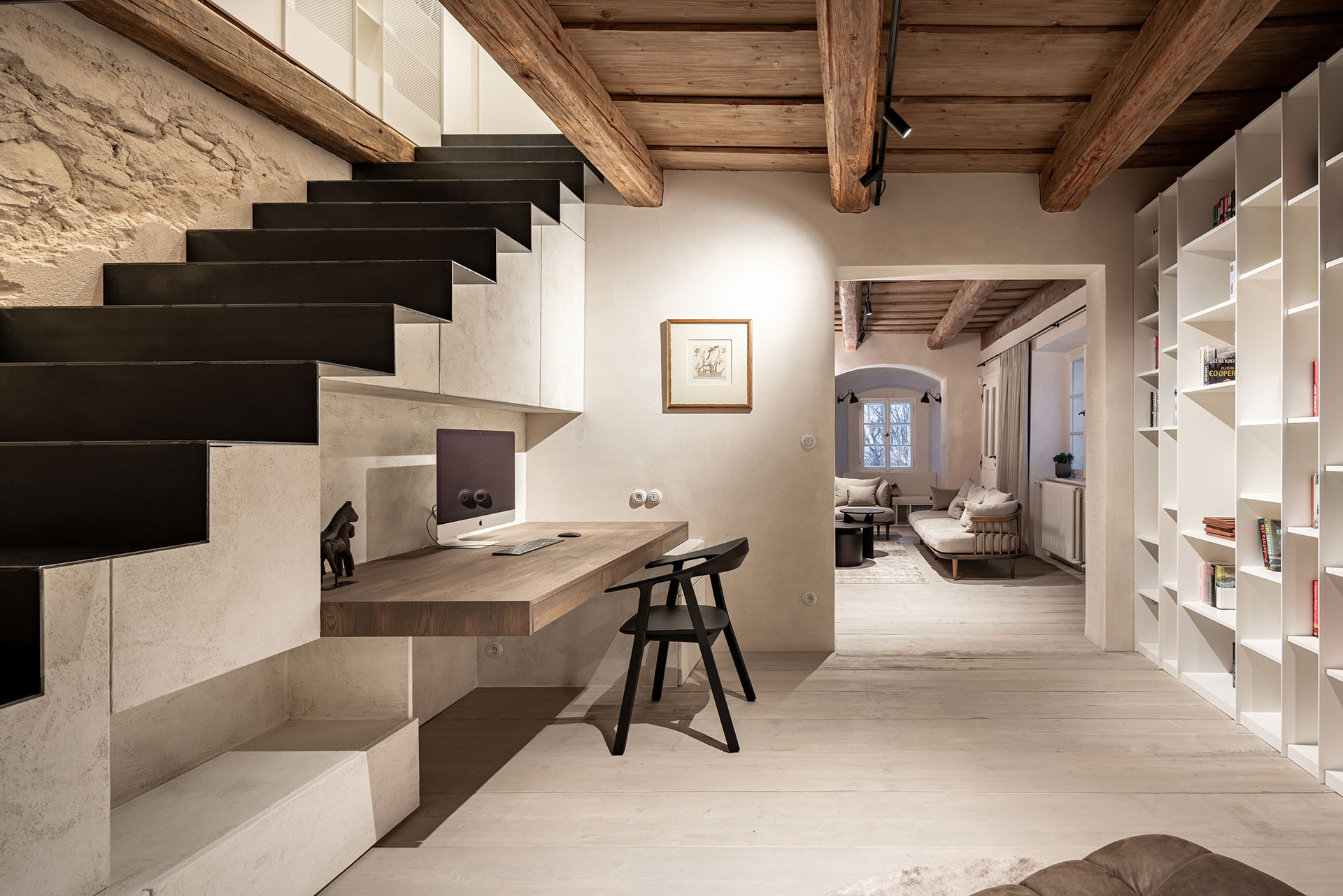 Rodina získala unikátní dům, který je přímo součástí hradeb (město si majitelé nepřejí zveřejnit.) Jejich záměr byl jednoduchý, ale zároveň složitý: zachovat maximum původních prvků, ale zároveň dovnitř dostat současný komfort. A to se za pomoci architektky Radky Valové a architekta Petra Vlacha ze studia OOOOX povedlo. Teď tady je dostatek místa pro rodinu i její hosty, podlahové vytápění a atmosféru umocňuje současný design a osvětlení. „Je to jedna z našich nejoblíbenějších rekonstrukcí,“ říkají architekti.