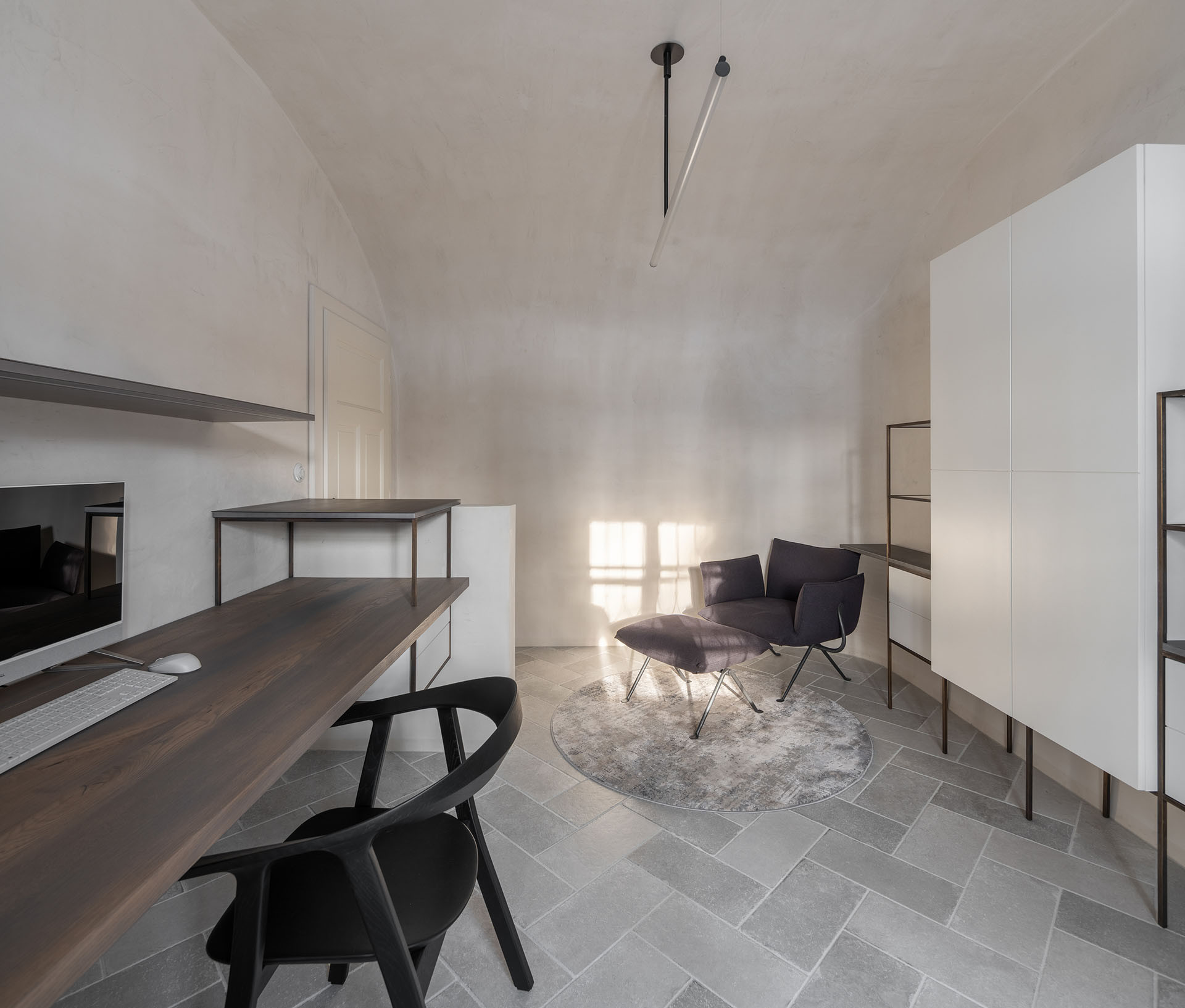 Aby byl pobyt uvnitř komfortní, bylo důležité řešit kromě vzhledu a stylu i řadu technických opatření – zejména si poradit s vlhkostí. Celý interiér je odvětraný rekuperací, vedení je skryté ve zdech a výduchy jsou opatřené dobovými litinovými mřížkami, aby vizuálně nerušily. Podlahy v přízemí jsou odvětrané pomocí takzvaných „iglú“, plastových elementů, které umožní proudění vzduchu pod podlahou. Po obvodu stěn je umístěna drenáž.