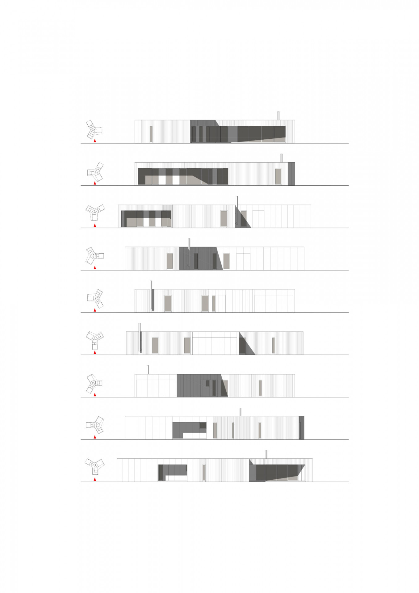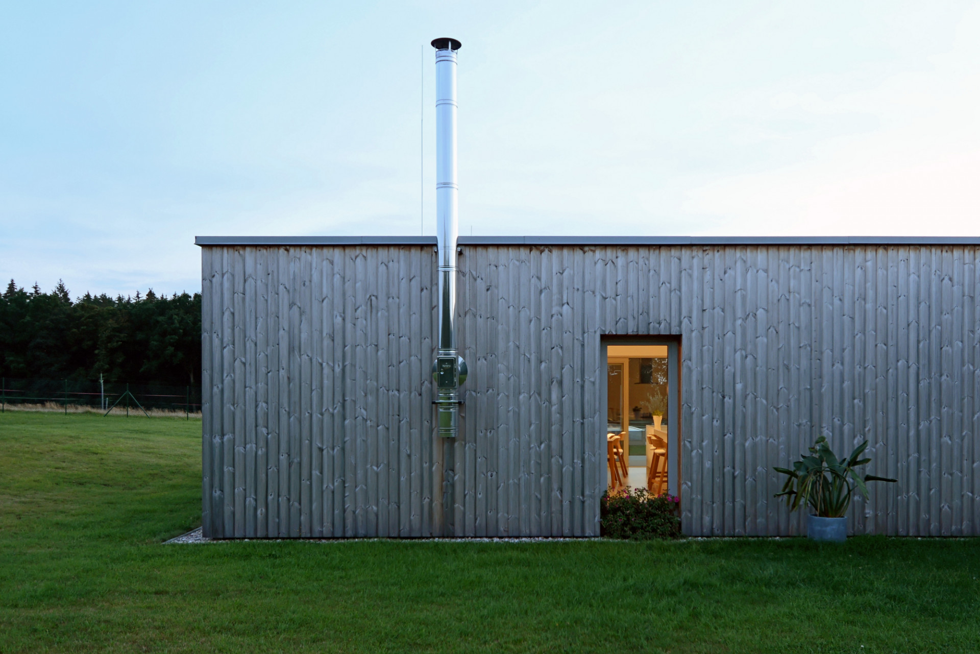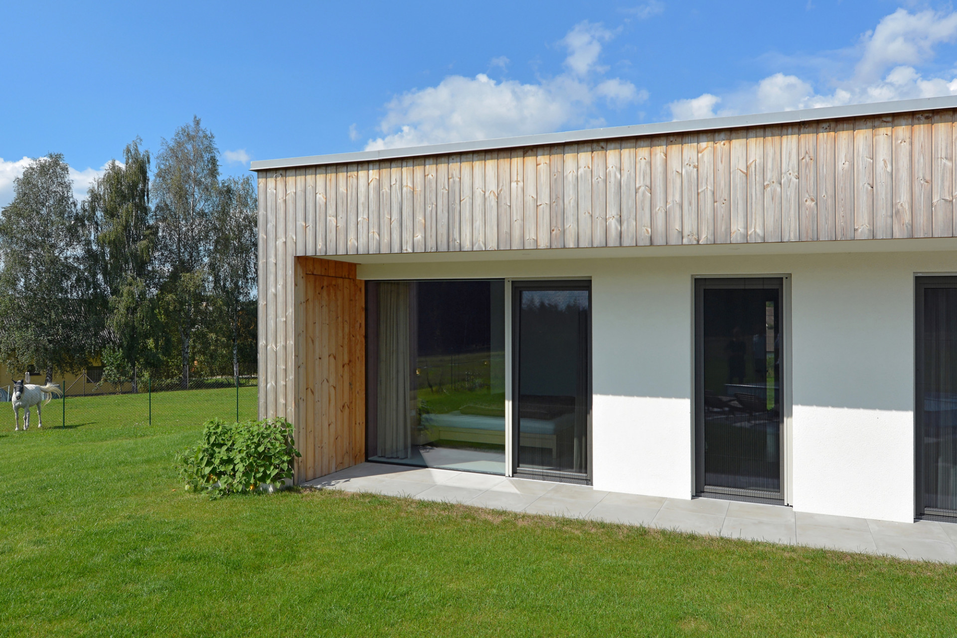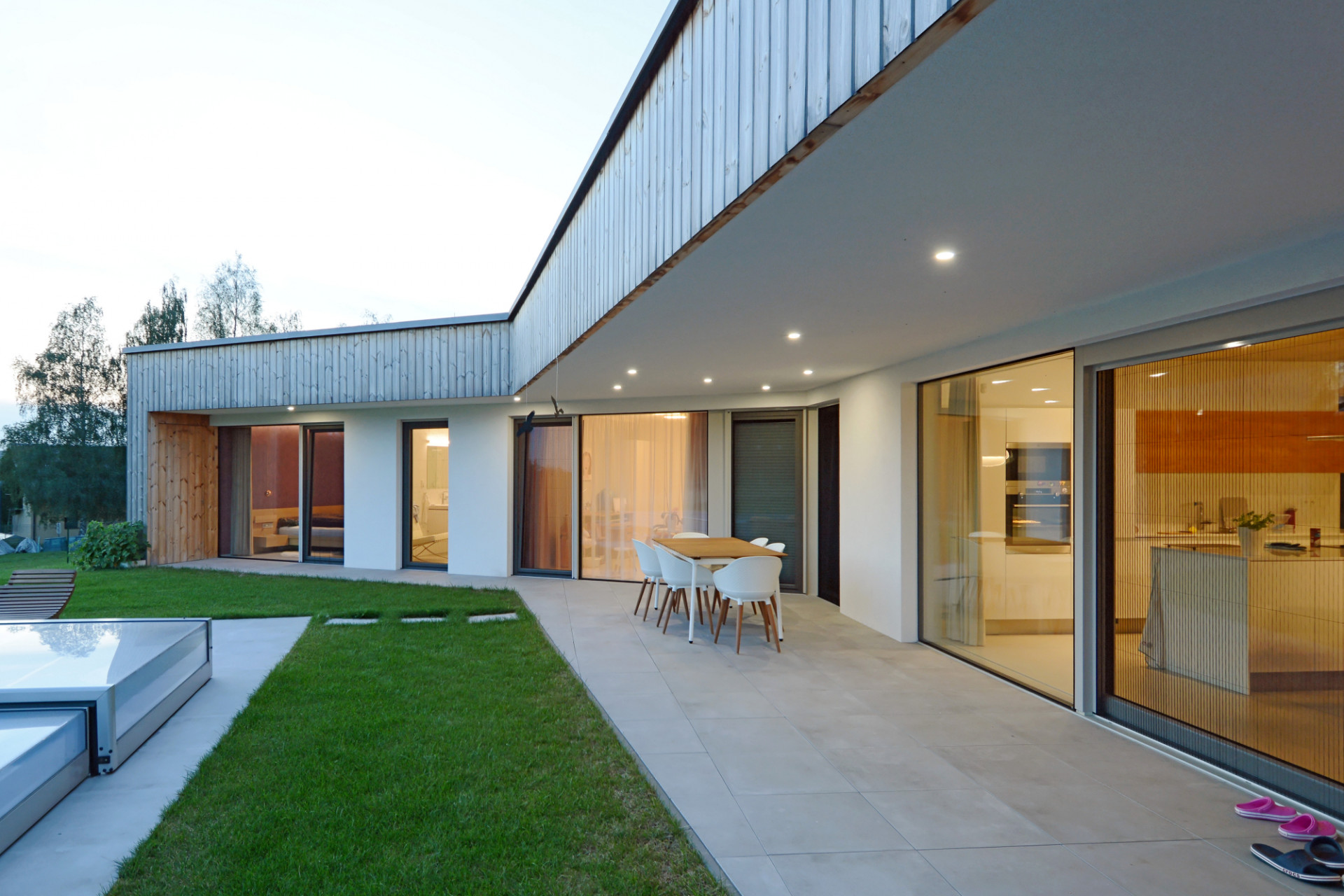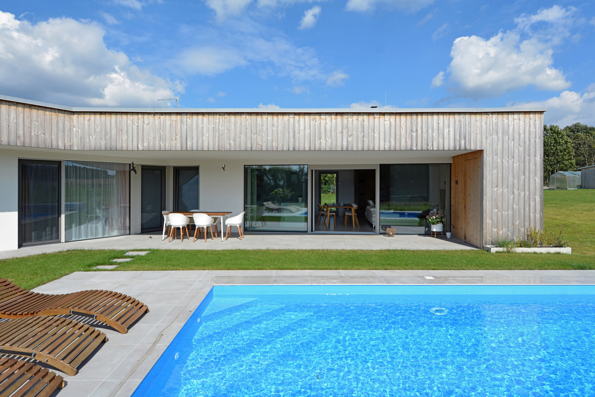 Jednopodlažní rodinný dům na rovinatém pozemku na Náchodsku uspořádal architekt Viktor Vlach do tvaru symetrické trojcípé hvězdy, čímž vznikly jednotlivé funkčně oddělené zóny v interiéru i zahradě. Dům zahalený zčásti do dřevěného pláště nabízí majitelům také prostornou krytou terasu s výhledy do krajiny.
