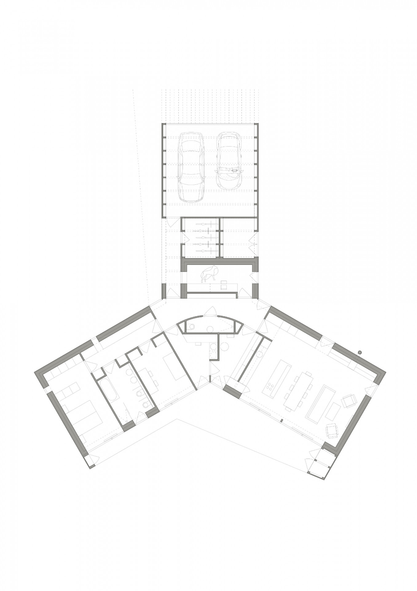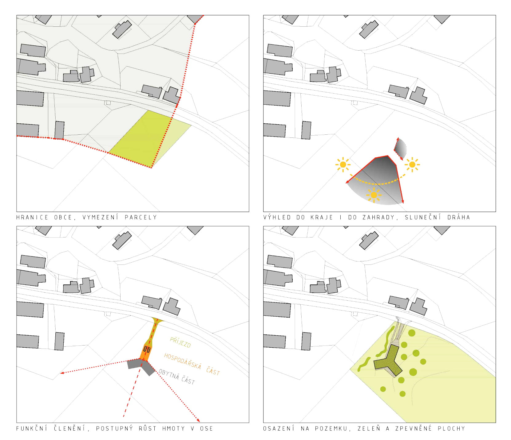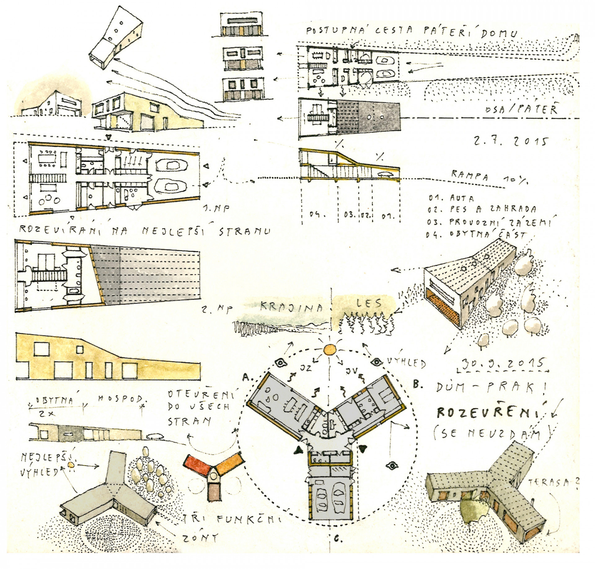 Dům ve tvaru trojcípé hvězdy od architekta Vlacha člení pozemek podle způsobu využívání