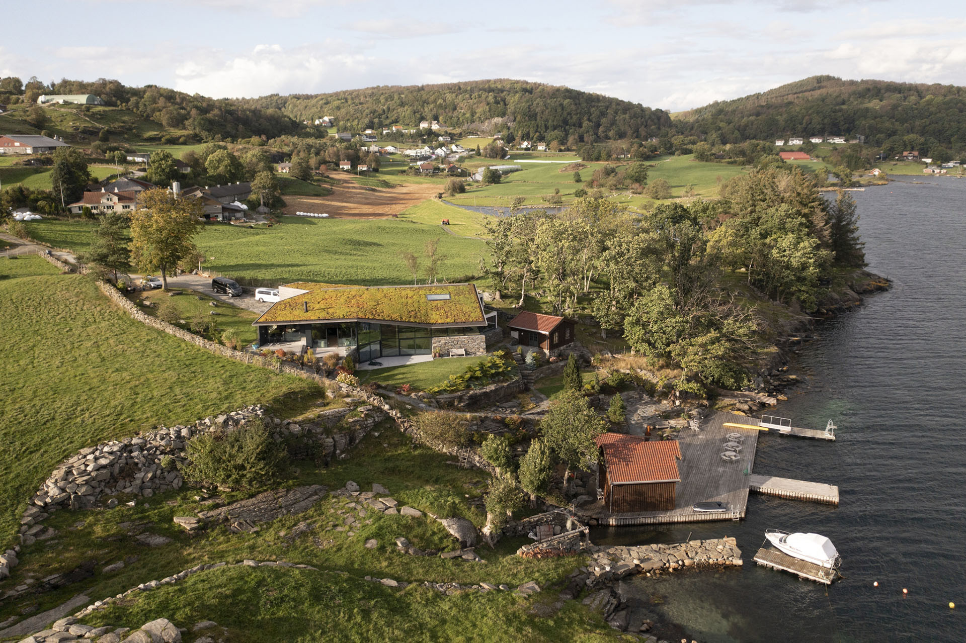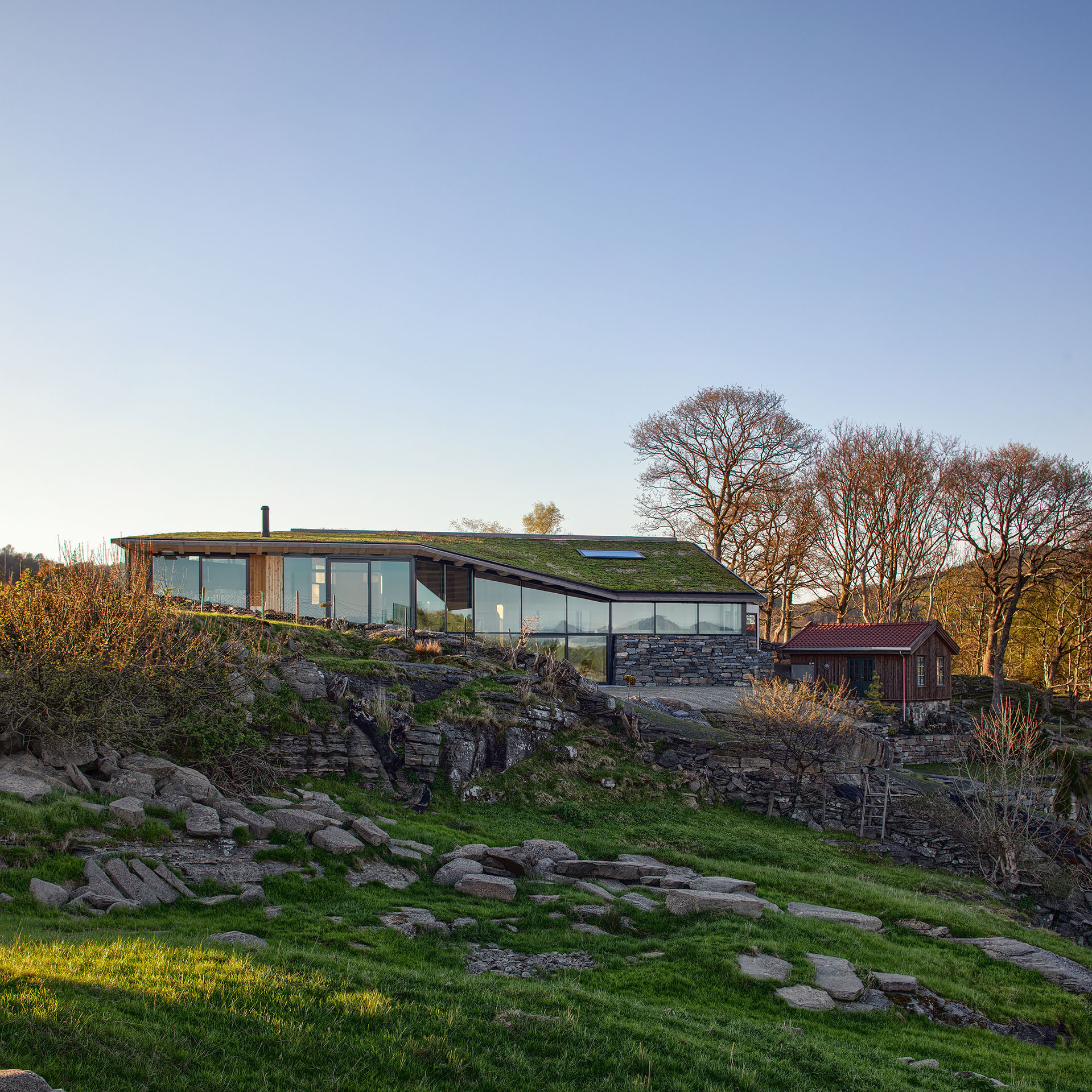 Strmé útesy norského ostrova Finnøy nabízejí nádherné výhledy a jsou úžasným místem pro život. Po letech strávených v zámoří si ho jako svůj domov vyhlédla i Merete. Architektonická kancelář Helen & Hard jí zde navrhla dům, který vypadá, jakoby vyrostl rovnou ze skal.