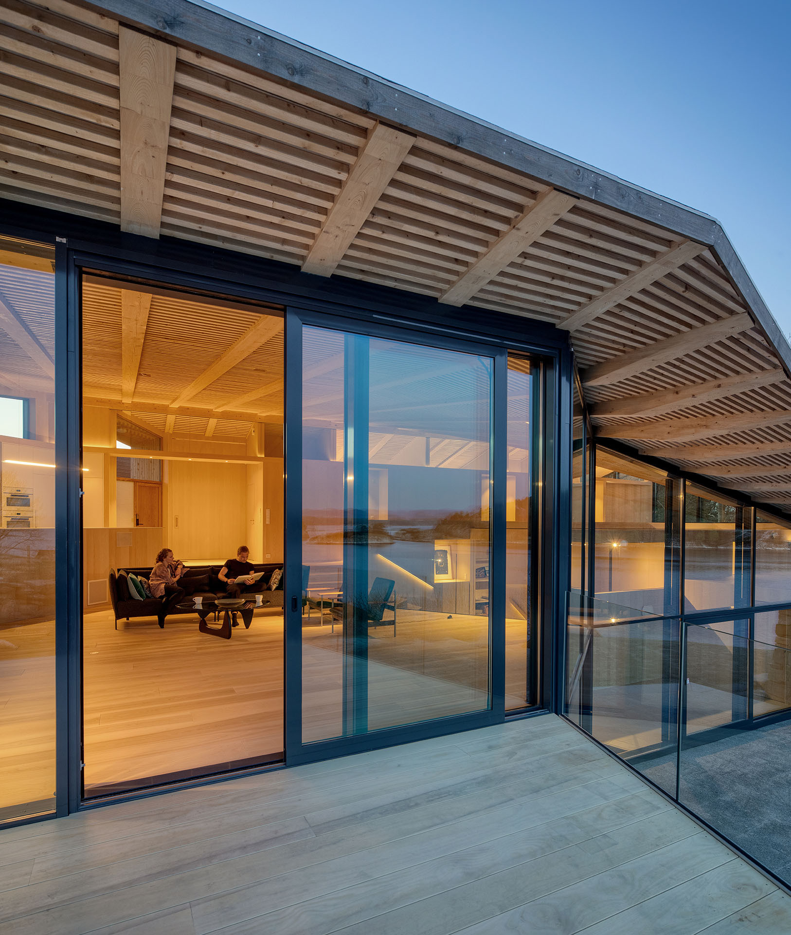 Po 30 letech prožitých v zámoří se chtěla Merete vrátit do rodného Norska a postavit si domov uprostřed původní skalnaté krajiny ostrova Finnøy. A s letním sídlem Reilstad nyní žije svůj sen. Stavba organicky graduje jako výrazné skalnaté okolí, je strukturována do čtyř úrovní, které se svažují k moři. Terasa propojuje každé patro s exteriérem, takže dům budí dojem, jako by vyrostl ze samotných skal, splynutí s krajinou pomohla i zvlněná zelená střecha. Výhledy na oceán zarámovaly hliníkové systémy Schüco, které kombinují vizuální lehkost s vysokou stabilitou hliníku a odolností proti zdejšímu extrémnímu větru a dešti. Vzhledem k prudkému sklonu pozemku byla dřevostavba usazena na betonovou desku.