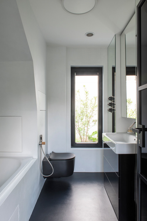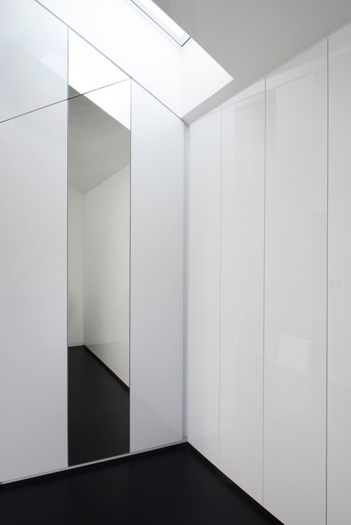 Konstrukčně je dům kompletně vytvořen z dřevěných CLT panelů. „Tím vznikly výsledné nosné konstrukce v síle osmi až dvanácti centimetrů a v podkroví odpadly veškeré klasické viditelné konstrukce krovu. Díky tenkým stěnových panelům jsme měli na minimální ploše více místa,“ vysvětlují architekti výhody dřevostavby. Dům je zateplený minerální vlnou.