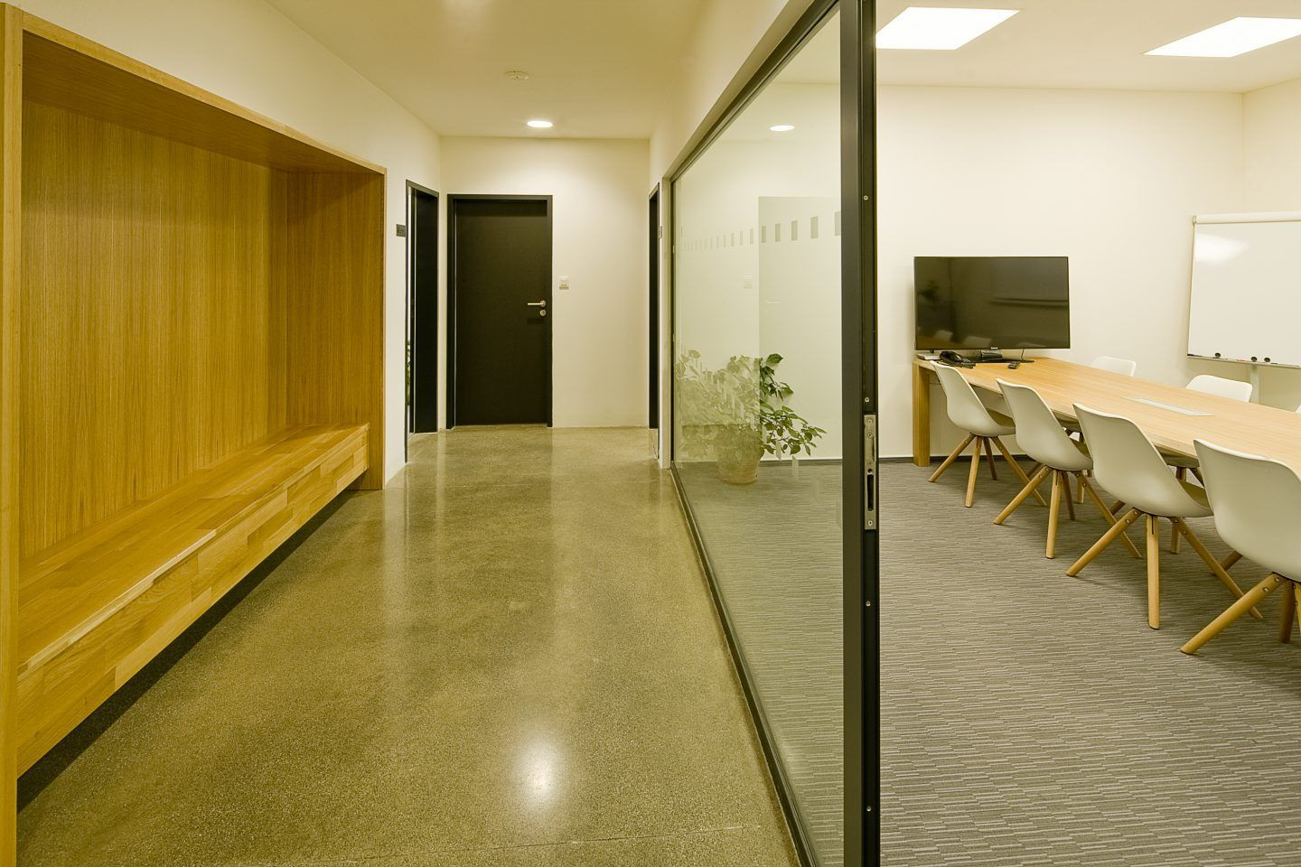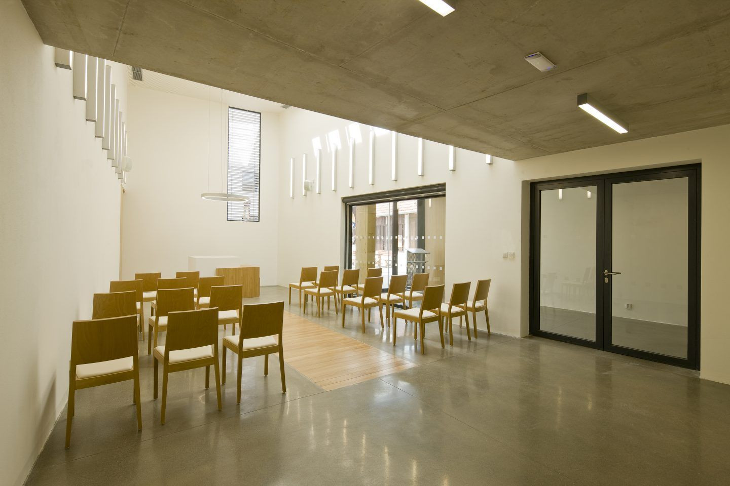 Vzniká tak průchod mezi knihovnou a obecním úřadem, do prostoru nádvoří, které tvoří předprostor obřadní síně a letní zahrádku výčepu Bílovické hospody. Odtud je přístupná a tedy zcela v klidové části nádvoří umístěna obřadní síň a sociální zařízení společné pro hospodu, obřadní sál i knihovnu. Nádvoří je nově vybouraným průchodem spojeno i s prostorem návsi, před obecní hospodou.