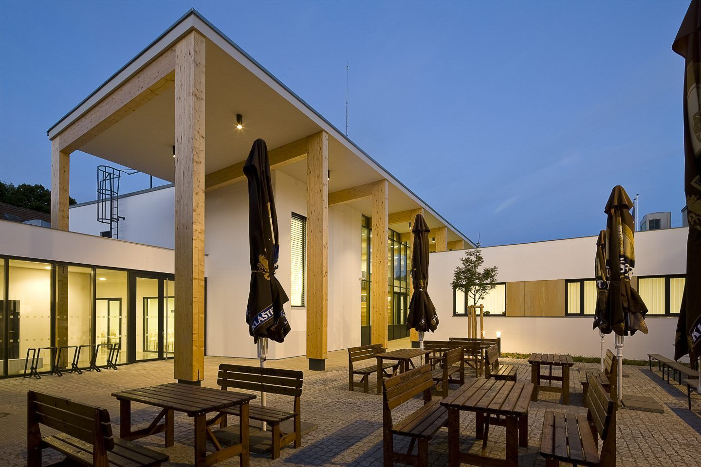 Stavba řeší centrum obce v Bílovicích nad Svitavou. Součástí zadání bylo vytvořit nový obecní úřad, knihovnu, obřadní síň, poštu, letní výčep a zahrádku obecní hospody a sociální zázemí hospody, včetně přilehlých ploch, tedy hlavní náměstí obce (které do té doby chybělo), včetně zajištění parkování, náves a nádvoří. Celá revitalizace je nominována na Českou cenu za architekturu 2017.
