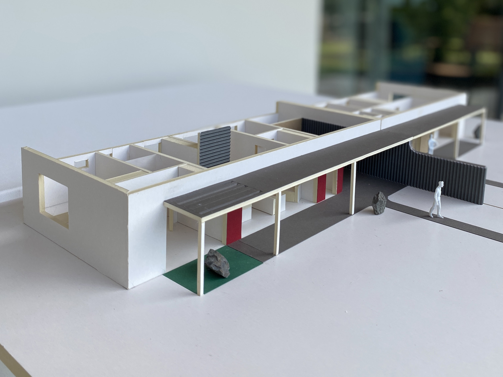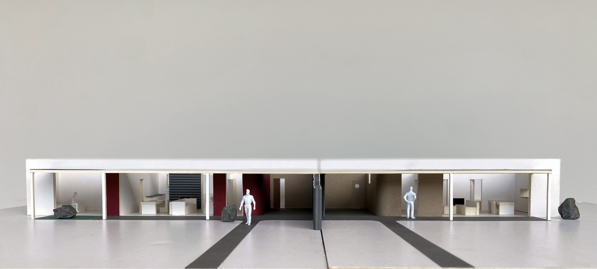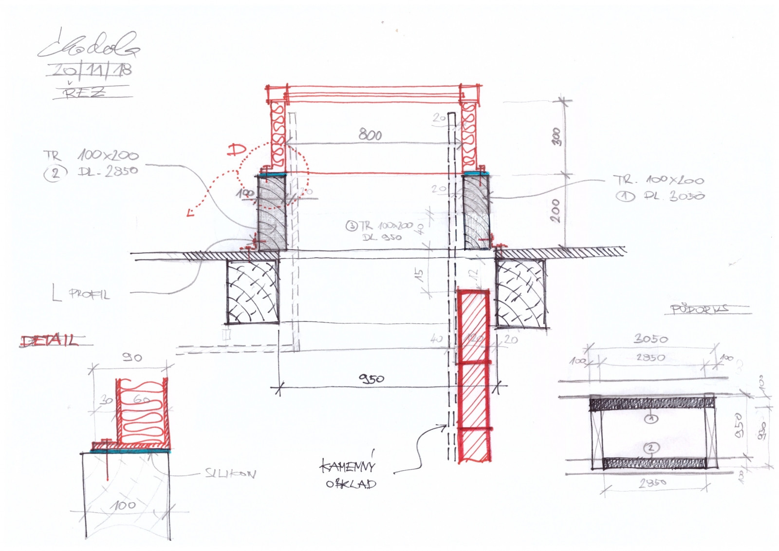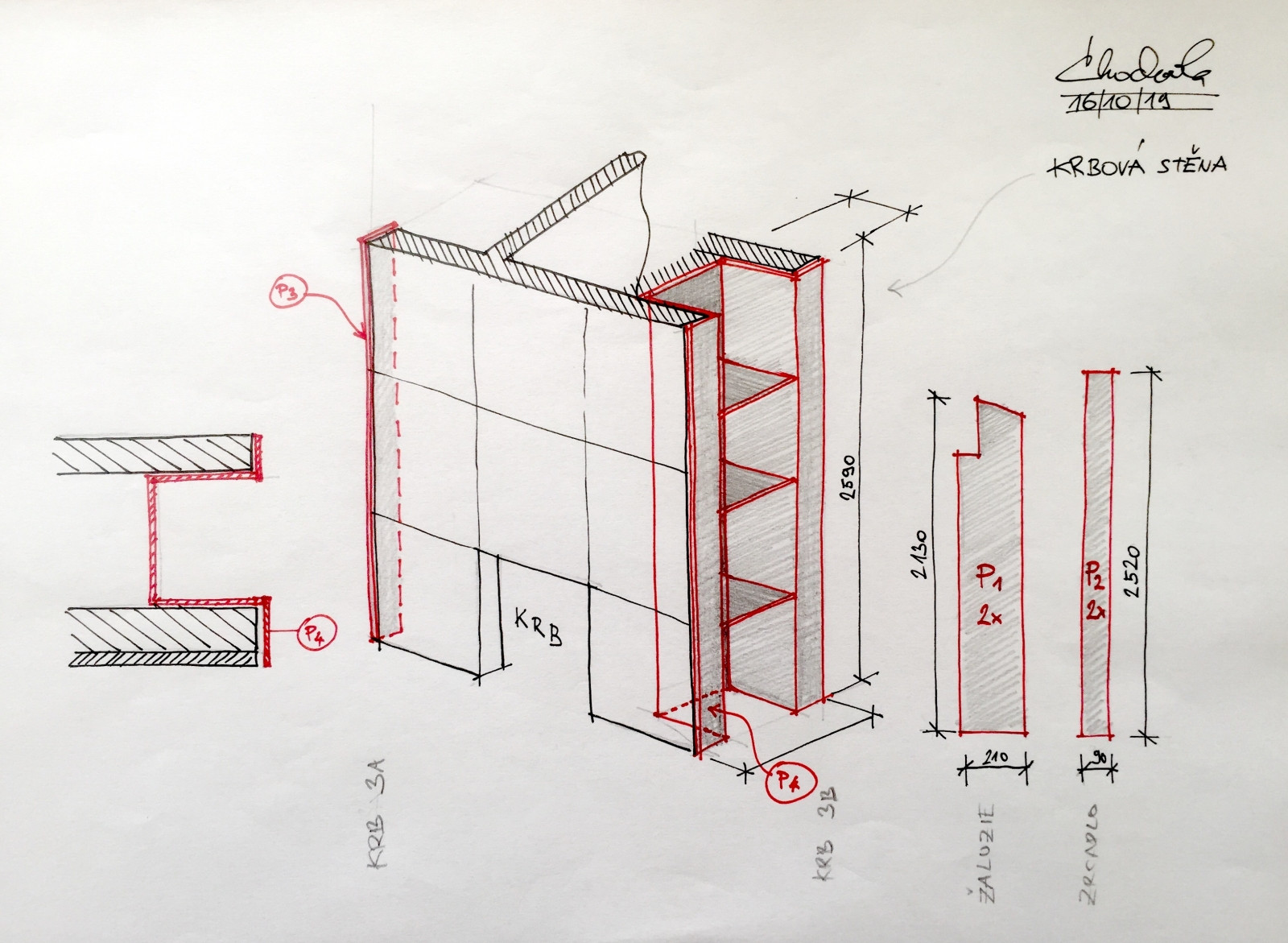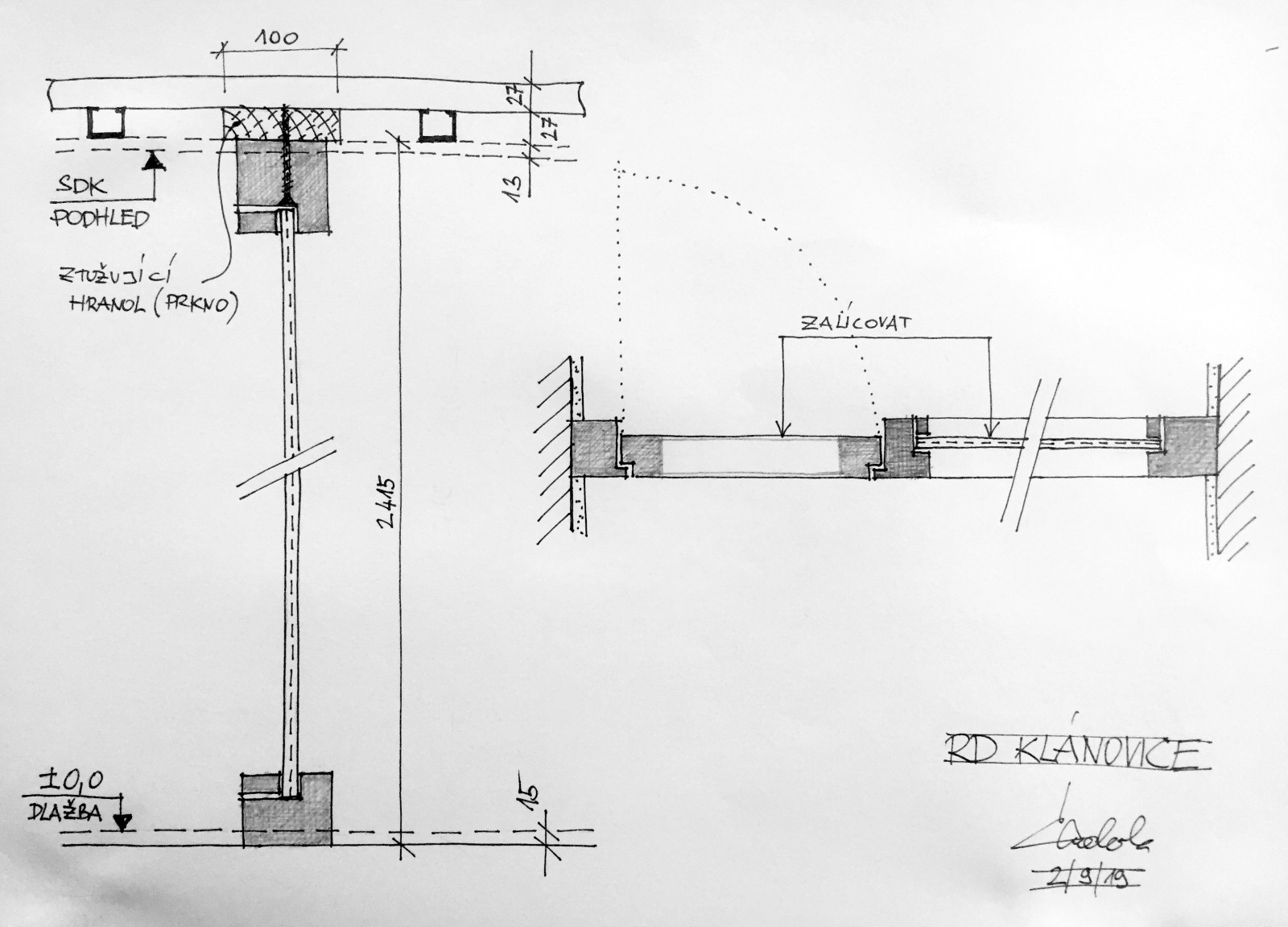 „Původní pozemek se starým a již nevyhovujícím rodinným domem o rozloze 1 060 m² byl rozdělen na dva stejně velké pozemky o rozloze 530 m². Byly na něj navrženy dva nezávislé domy se společnou dělící stěnou na hraně pozemků. Každý dům má jinou dispozici, ale do ulice se tváří jako jeden,“ vysvětluje Jakub Chochola. Dodává také, že západní část domu je určená ke stálému bydlení, ta východní slouží jako „chata“ pro část rodiny žijící v zahraničí.