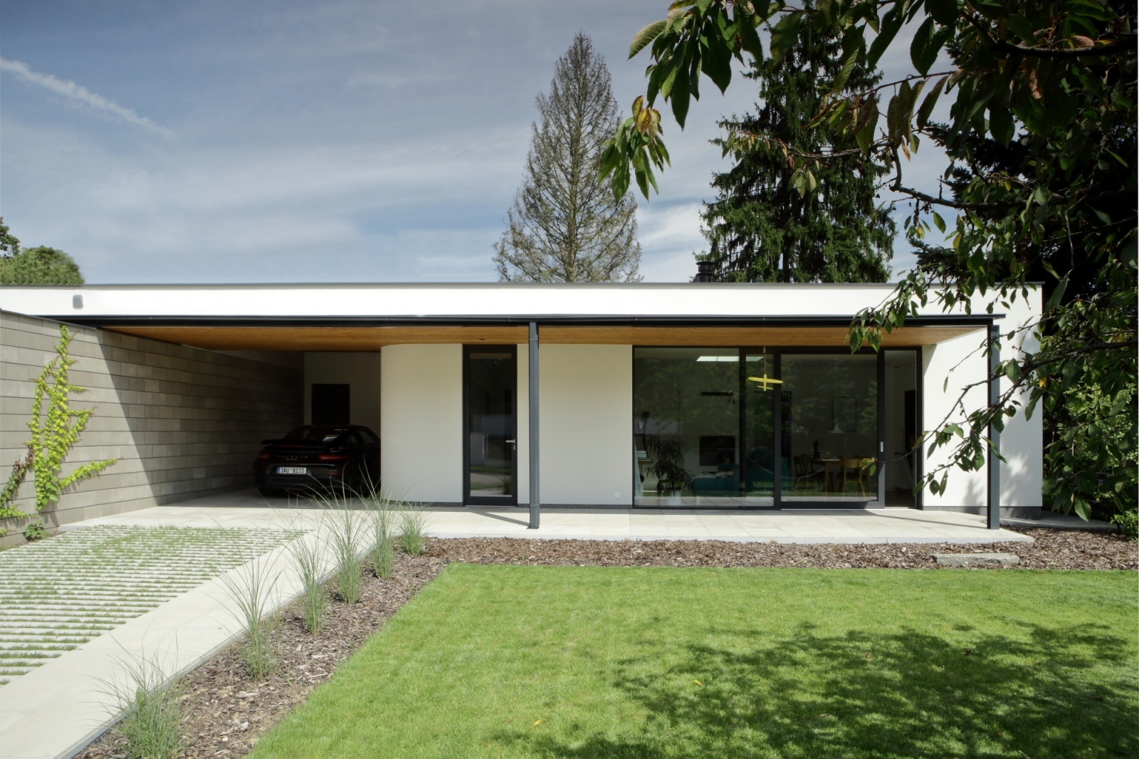 Dva domovy, jedna stavba. Přízemní dvojdům v Praze se nese ve znamení střídmosti a praktičnosti
