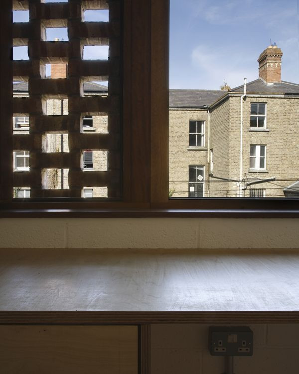 Podobný cíl sledoval i dům Mews. Architekti si pohráli se strukturou viktoriánských zdí, kterou fasáda novostavby imituje. Vzniklý vzorek navazuje se starým domem konstrukční kontext. Vystupující cihly vrhají stín v závislosti na intenzitě a poloze slunečního svitu. Fasáda se tak mění nejen v průběhu dne, ale i v závislosti na oblačnosti. Na zadní straně je fasáda pouze mřížkou, kde výsledné díry umožňují patřičné provětrávání.
