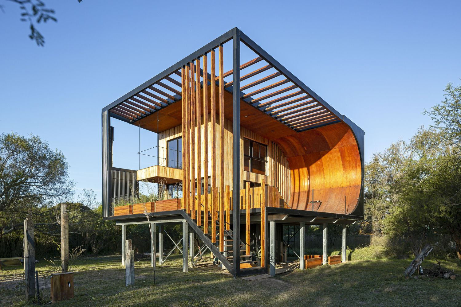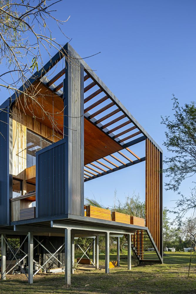 V povodí argentinské řeky Rosario vznikl neobvykle pojatý dům ohleduplný k životnímu prostředí, který i v případě povodní nabízí bezpečné útočiště pro odpočinek a zábavu.