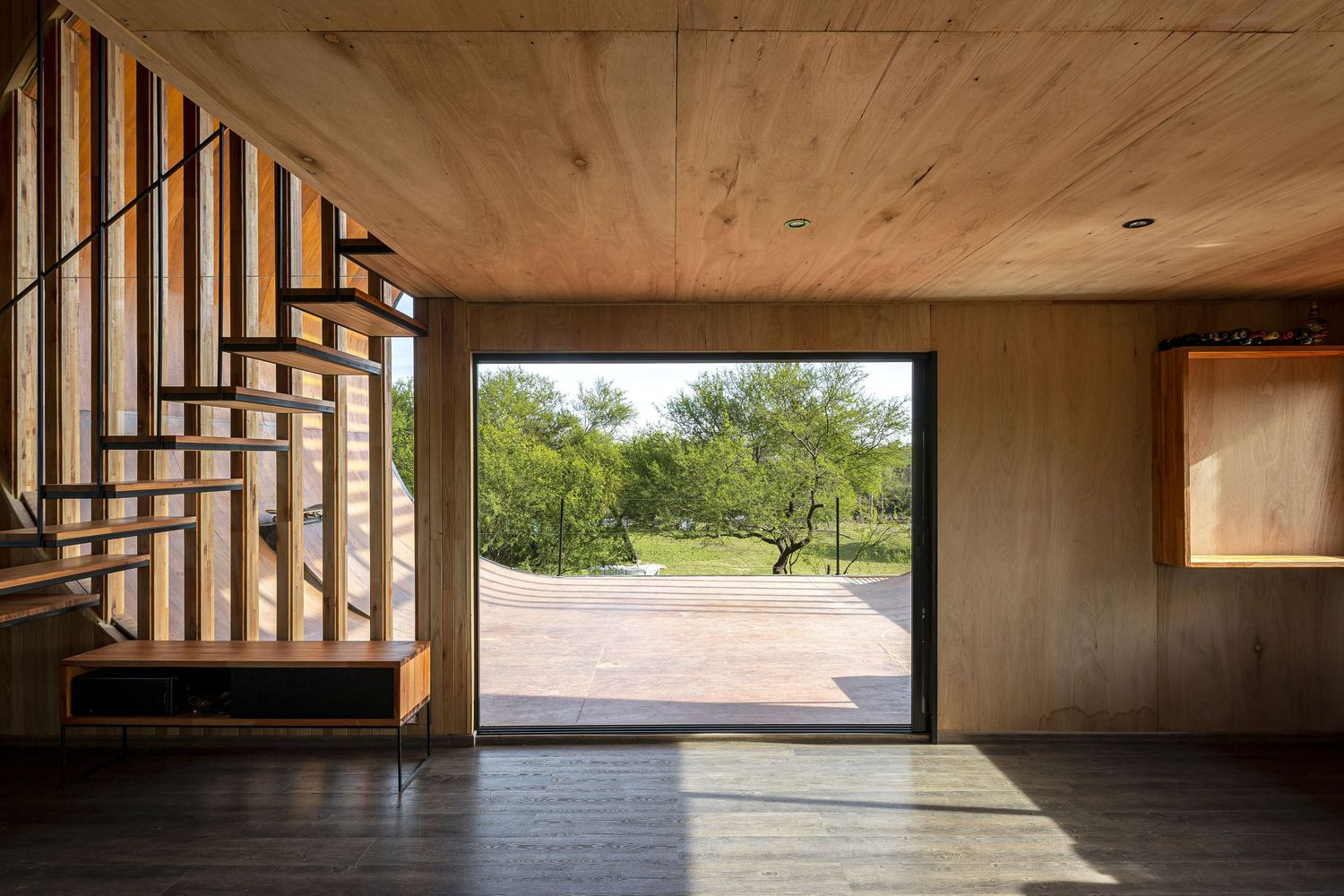 Dominantní rampa je přibližně stejně velká jako spodní část dvoupodlažního domku. Díky argentinskému podnebí s horkými léty a mírnými zimami nabízí kromě skateování příležitost k posezení a rozšiřuje prostor interiéru skoro dvojnásobně. Aby byla rampa odolná, je obložena dýhou a dřevem s voděodolnou ochranou.