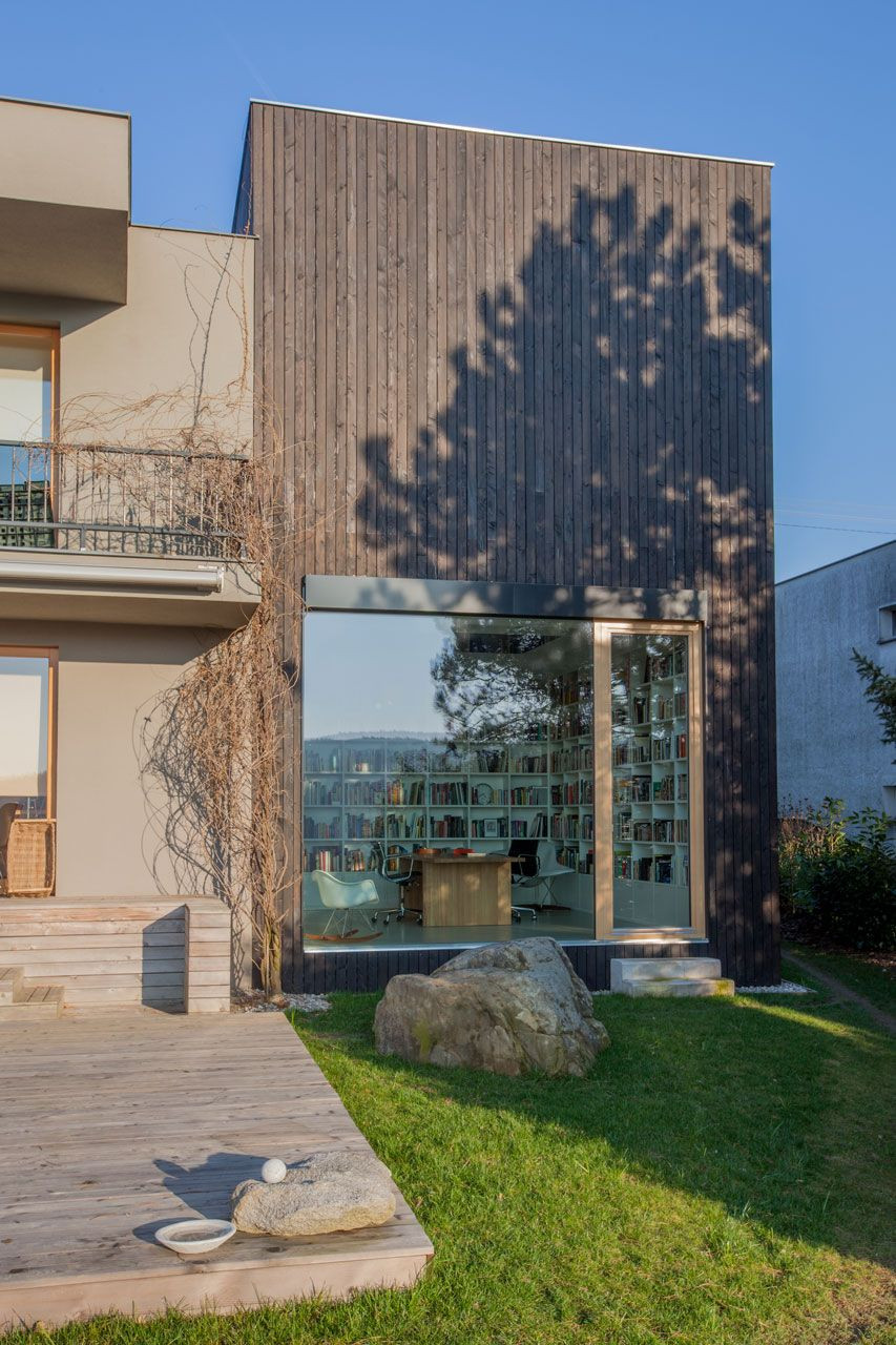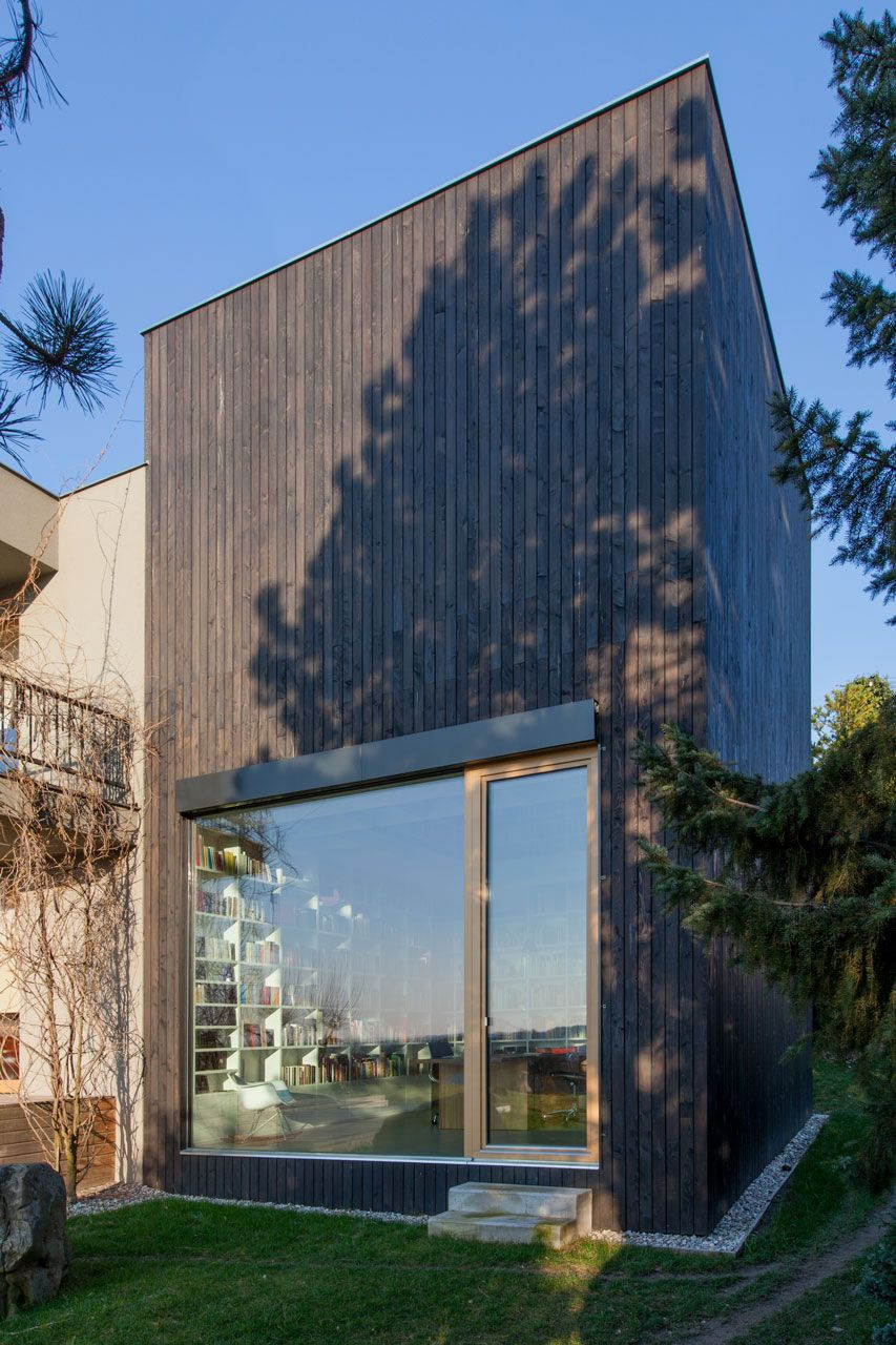 Ani v rámci rodinných domů není občas tolik místa, kolik by bylo potřeba. To obzvlášť platí v případě rozsáhlé soukromé knihovny ve Zlíně, která sama zabere klidně dvě patra. Architekt Pavel Chládek to vyřešil samostatným objektem, který nabízí jak možnost uložení knih, tak klid na čtení. Takový čtenářský sen.