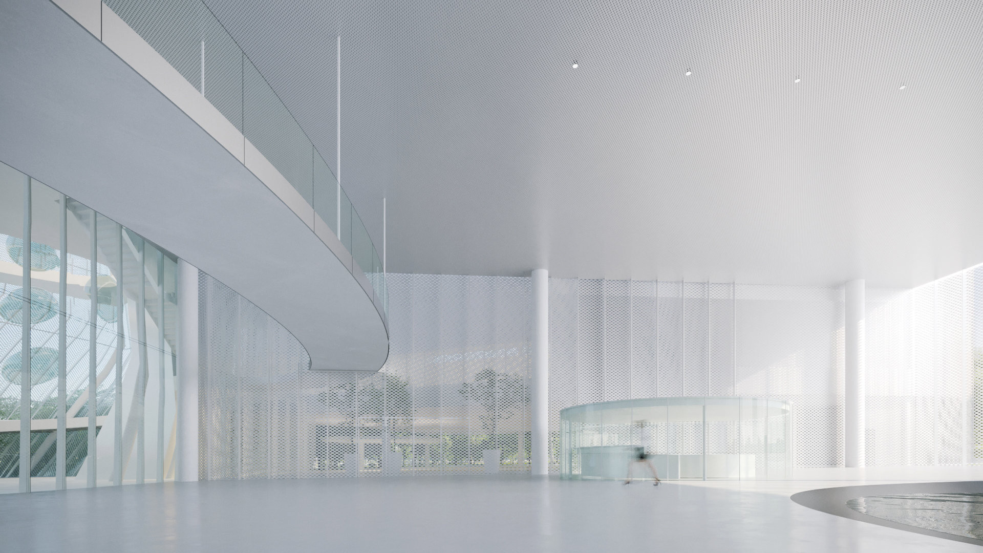 Rozdělení hmoty zároveň zlepšuje prosvětlení vnitřních prostor a přirozeně navazuje na pohyb lidí mezi parkem, ve kterém se budova nachází, a samotným muzeem. Poloprůhledný fasádní systému, který kombinuje hliníkovou síťovinu, skleněné obvodové pláště a pozinkované ocelové panely dodávají budově lehkost. Ateliér SANAA navrhl otevřený veřejný prostor, v němž se prolínají kulturní aktivity, čtení, pobyt i společenský život.